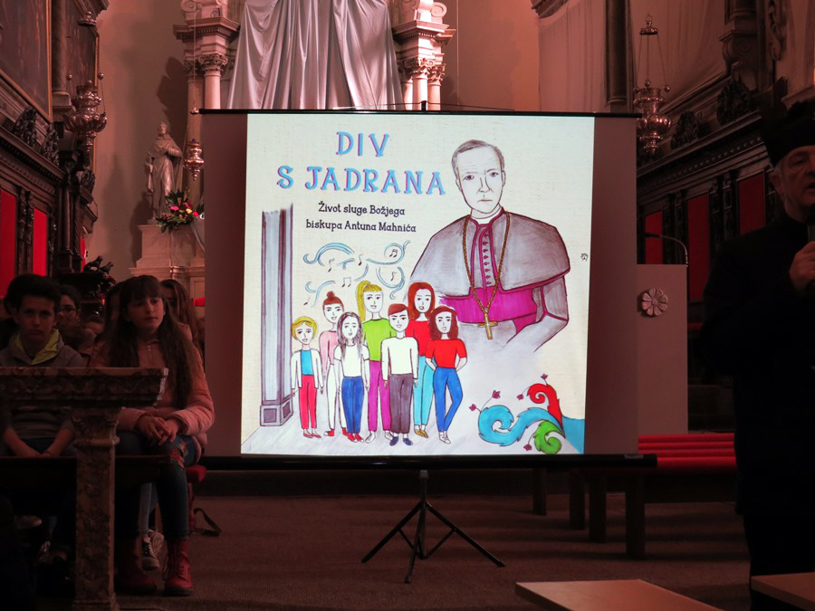 U 11.30 sati, svi su se hodočasnici okupili u katedrali. Prije svečane Euharistije, tog vrhunca okupljanja, održana je promocija slikovnice „Div s Jadrana“, uspješnog projekta i ploda zauzimanja vrijednih osnovnoškolskih vjeroučitelja i vjeroučiteljica, odnosno vjeroučenika koji su svojim ilustracijama prikazali Mahnićev život od njegova djetinjstva