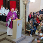 Euharistijsko slavlje predvodio je biskup Ivica. U homiliji je iskazao veliku radost što katedralu vidi ispunjenu ovolikim brojem mladih, ali i oduševljenost njihovim radovima na temu Mahnićeva života. Primijetio je kako je na mnogim crtežima istaknuto Mahnićevo veliko srce u kojem je prikazana njegova ljubav prema Božjem pozivu, Euharistiji i mladima. Upravo je to, ističe biskup, važno da bi netko bio dobar kršćanin i dobar svećenik. Mladima je predstavio đakona i bogoslove Krčke biskupije te ih pozvao da budu hrabri i odvažni u prihvaćanju poziva koji im Gospodin bude uputio.