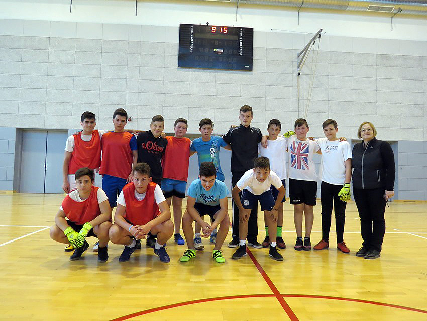 Ove godine Dan škole proslavili smo 26. travnja, u četvrtak. Program je započeo u 8:30 u sportskoj dvorani nastupom gimnastičara pod vodstvom profesorice Ljiljane Karabaić. Serije okretnih vježbi izmamile su pljesak na tribinama prepunim učenika, učitelja i uzvanika. Nogometno umijeće pokazali su učenici 7.a i 7.b razreda, finalisti ovogodišnje Školske nogometne lige. Učenici su na tribinama zdušno navijali za svoje favorite. Do samoga kraja utakmica je bila neizvjesna, a završila je pobjedom ekipe 7.b razreda.