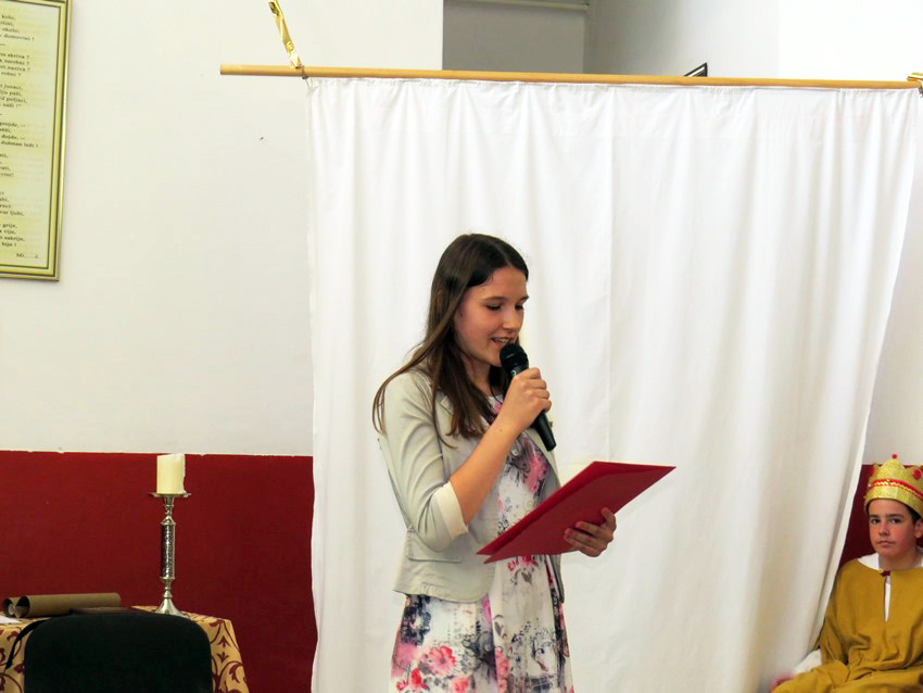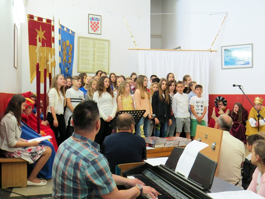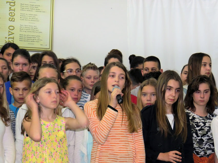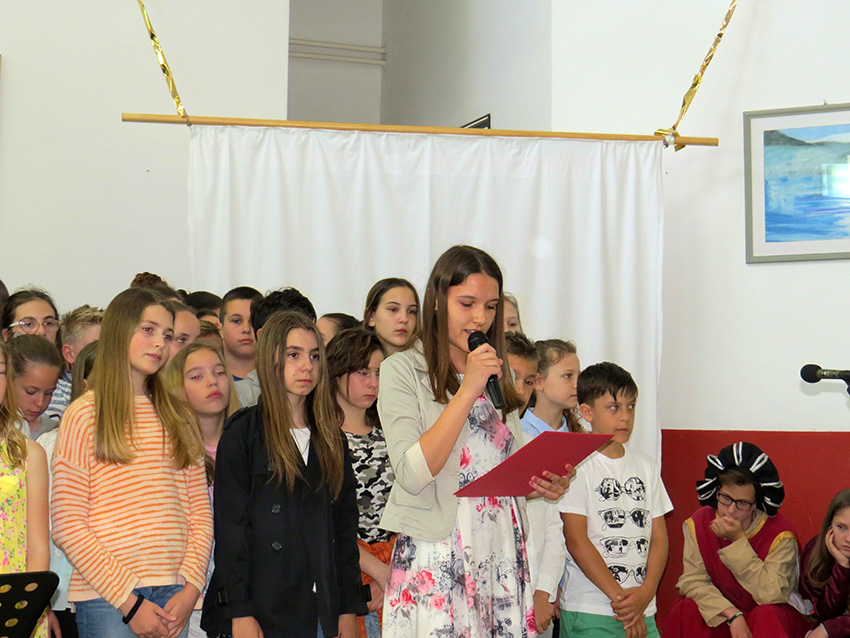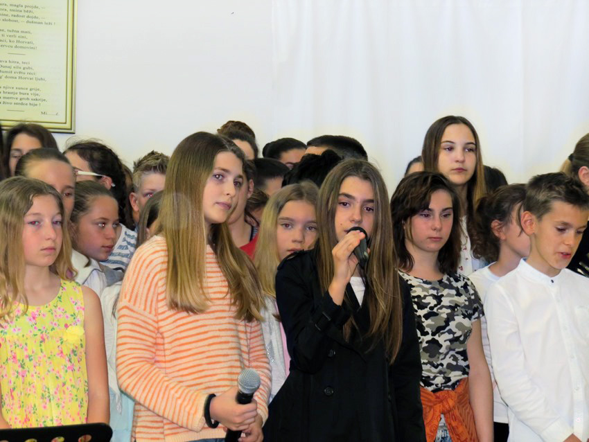 kreativno osmislila tekst za izvedbu na pozornici. Glumačkoga posla rado su se prihvatili učenici dramske skupine; Sarah Stanković, Antonio Blažanović, Petar Kružić, Noa Miš Mešić, Jakov Požega, Luka Butković, Tomas Lukarić, Marin Cvrtila i Anđelo Dadić. Tijekom priredbe učenice 6.b izvele su recitacije: Pavla Matković Ova jedina zemlja, Katarina Lesica Poslije oluje, Mia Lukić Ljubav, a petašice Tarja Potnar i Petra Turčić govorile su stihove Život je rijeka. Učenike su uvježbavale profesorice hrvatskog jezika Marija Iličić, Simona Šamanić i Petrica Mrakovčić. Zbor je popratio pjesmom soliste Jakova Babića i Marka Gajzlera.
