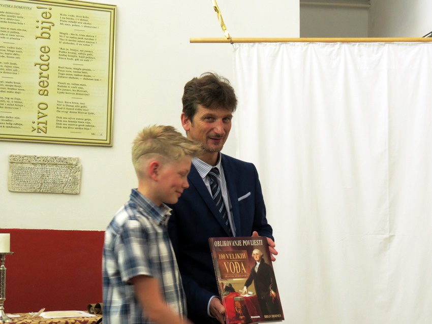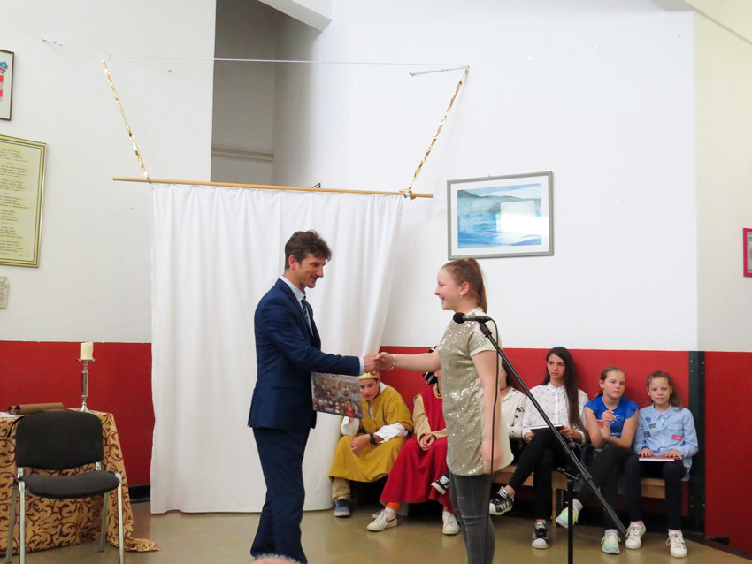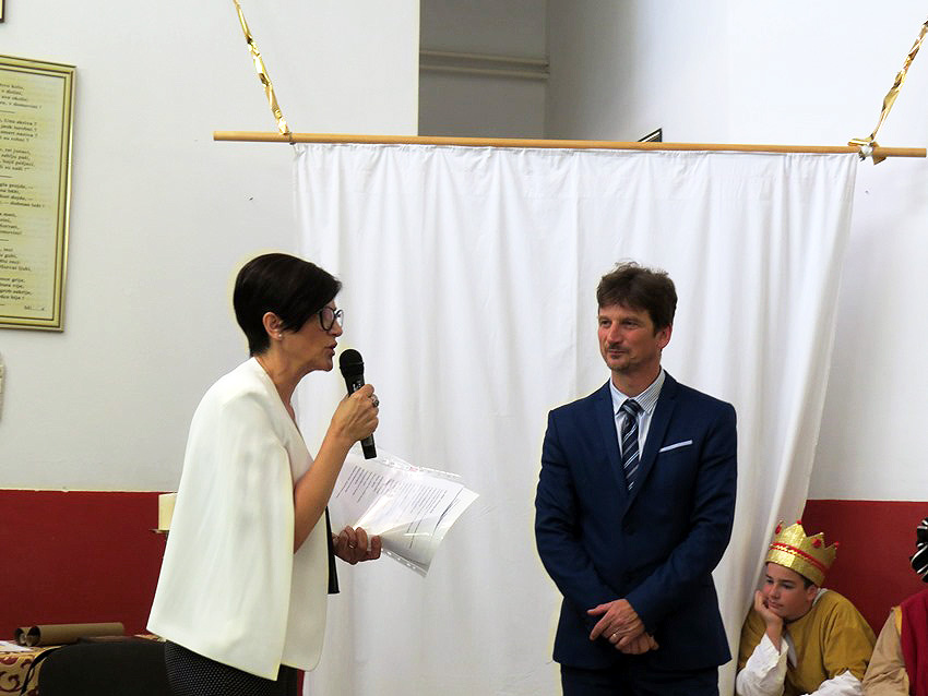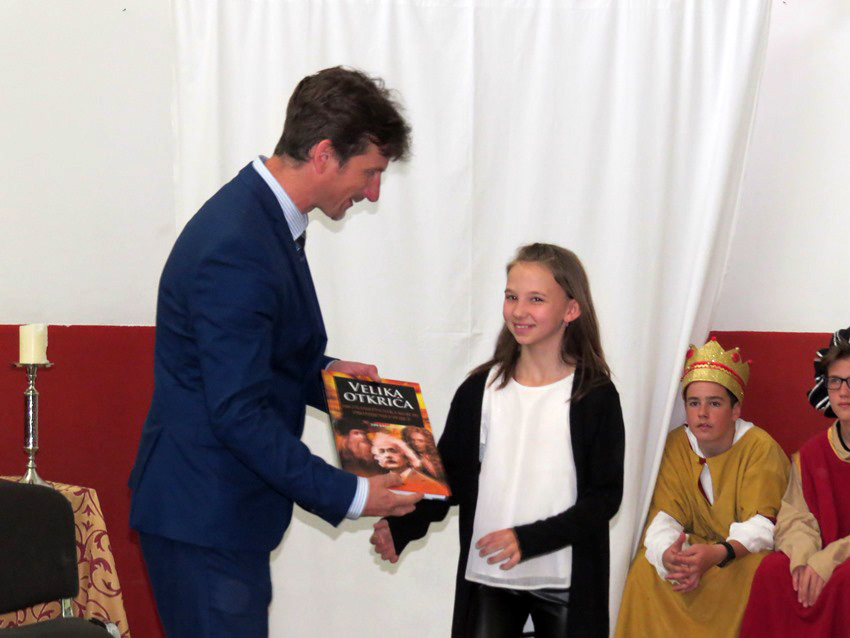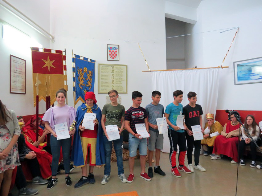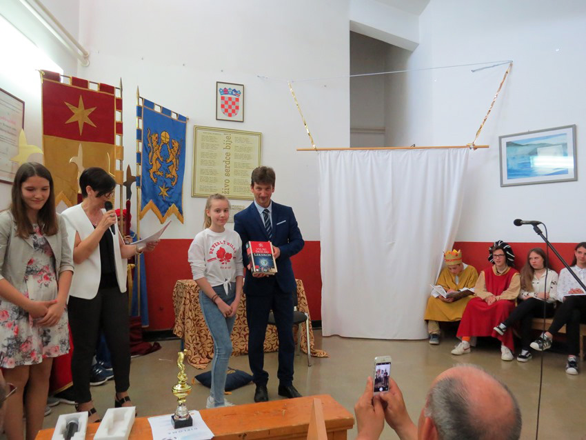 Nakon predstave ravnateljica Nedeljka Turčić osvrnula se na postignuća Škole, učenika i njihovih mentora te je s načelnikom Općine Robertom Antonom Kraljićem uručila vrijedne nagrade učenicima koji su ove godine uspješno predstavljali našu školu na županijskim natjecanjima. Pobjedničkoj ekipi Školske lige, nogometašima 7.b, uručene su diplome i prijelazni pehar. Titulu najboljeg strijelca osvojio je Niko Gajzler. Na kraju, pozivajući se na pjesmu Dobriše Cesarića Slap, ravnateljica je uputila poticaj da smo svi pozvani tvoriti kap u ovom svijetu svojim znanjem i umijećem.