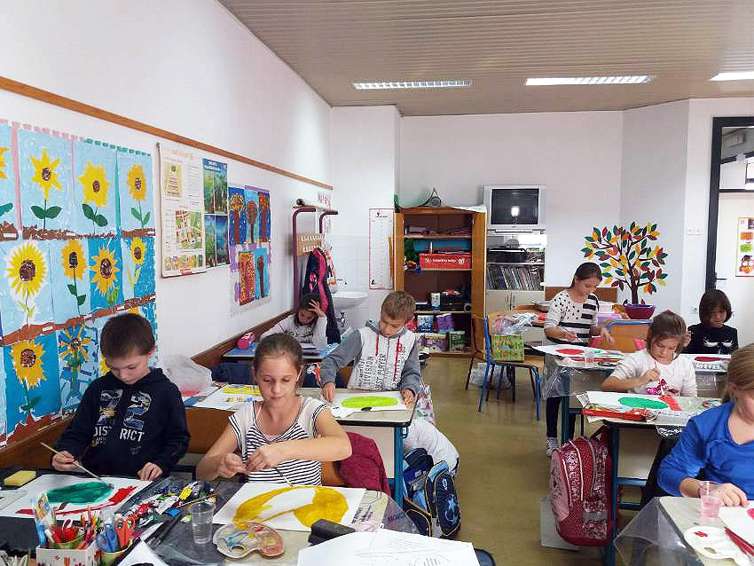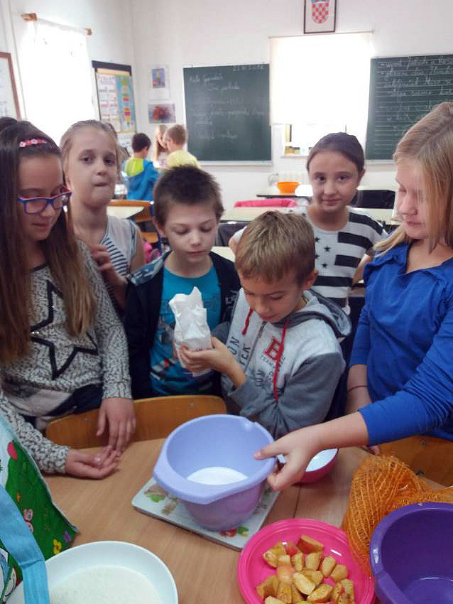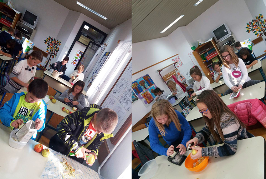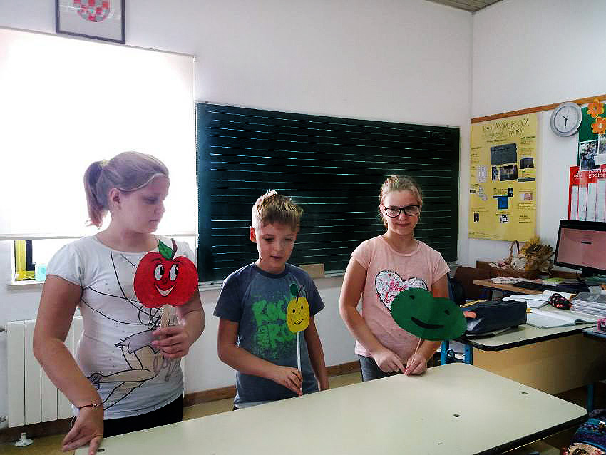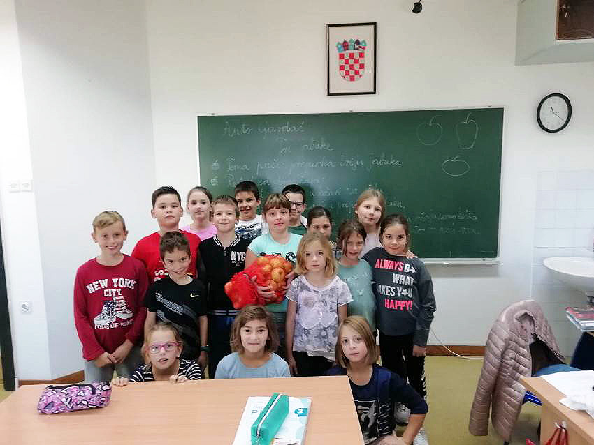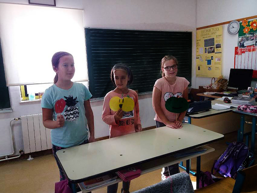 Na satu Hrvatskog jezika čitali su Monolog jedne jabuke kroz koji su se najprije upoznali s jabukom i njenim kvalitetama, degustirali su jabuke koje su ubrali, a zatim su interpretirali priču Tri jabuke. Učenici 3.a razreda prema priči su napravili igrokaz tako da su podijelili uloge i izradili jabuke od papira koje su im poslužile kao lutke. Također su za domaći uradak dobili zadatak prikupiti različite recepte s jabukama. Na satu Matematike rješavali su zadatke riječima koji su tematski bili vezani uz jabuke i na taj način su ponovili dosad naučeno gradivo. Zatim su u grupama rješavali mozgalice, također vezane uz jabuke.