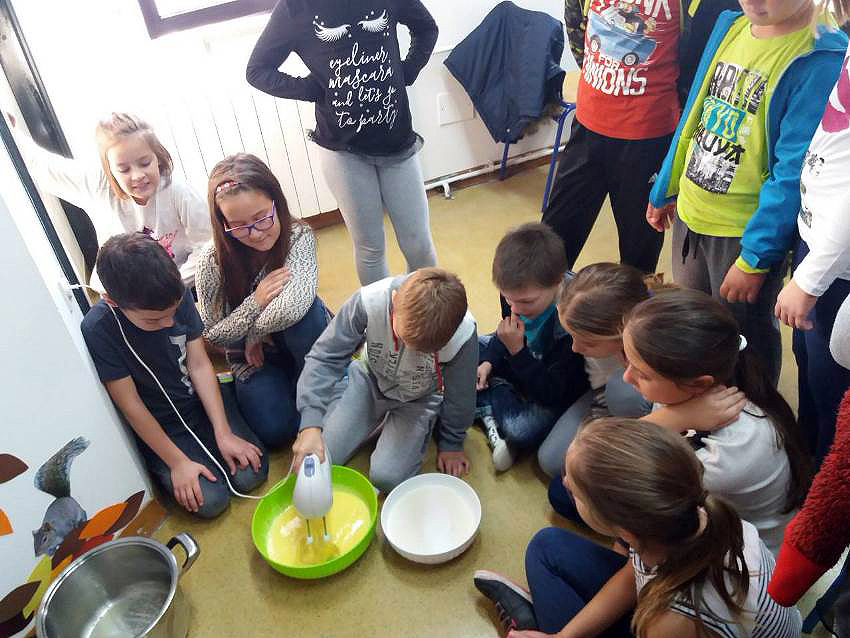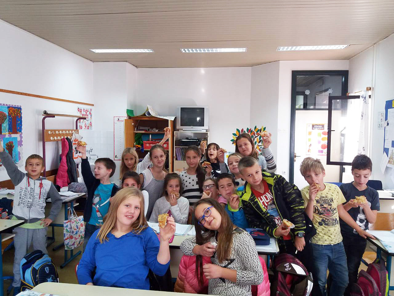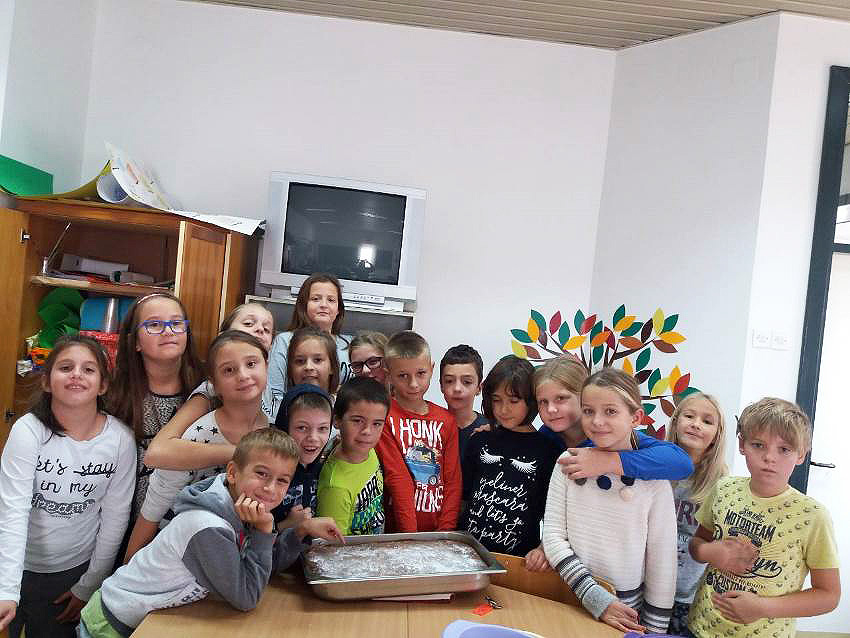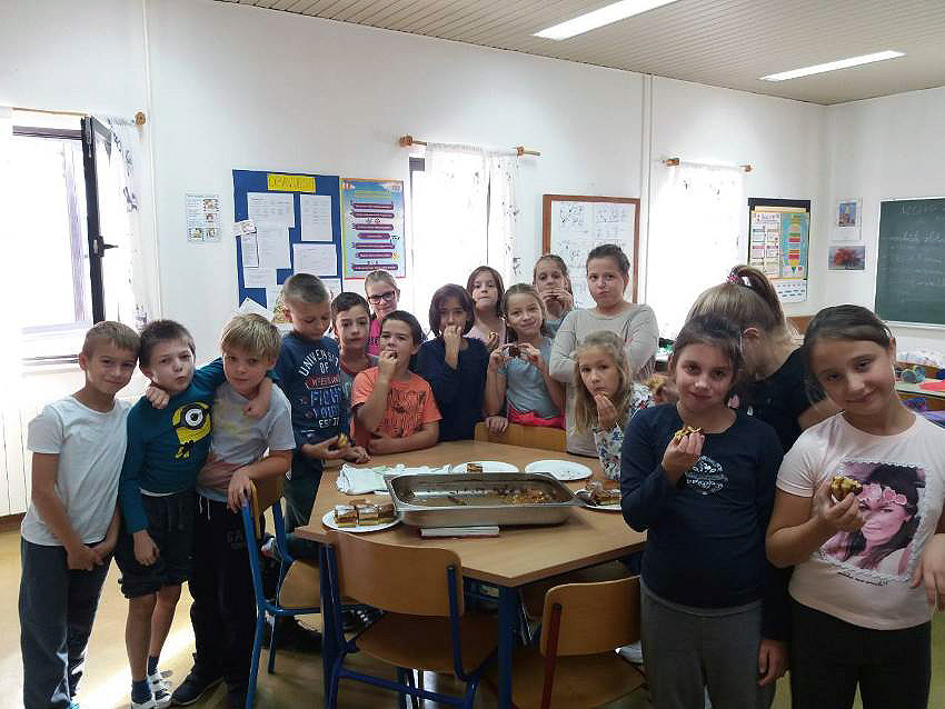 Na Satu razrednika opet su bili jako vrijedni. 3.a je napravio pitu od jabuka. Učenici su sami gulili jabuke, ribali ih, vagali ostale potrebne sastojke i miksali. Pitu su odnijeli u školsku kuhinju gdje ju je naš kuhar Tomica ispekao u pećnici. Dok se je pita pekla, oni su temperama slikali jabuku koristeći komplementarne boje, a kako bi im čekanje pite bilo lakše, isprobali su muffine s jabukama koje im je donijela učiteljica Mihaela. Kada se je pita ispekla bili su ponosni i najprije su uživali u finom mirisu pečenog tijesta i cimeta, a zatim i u okusu kolača koji su sami napravili. Neki od njih su komentirali kako im je ovo najbolji kolač koji su ikada probali. Ostalo im je kolača i za sljedeći dan, a malo su odnijeli i kuharu te spremačicama kako bi im zahvalili za pomoć.