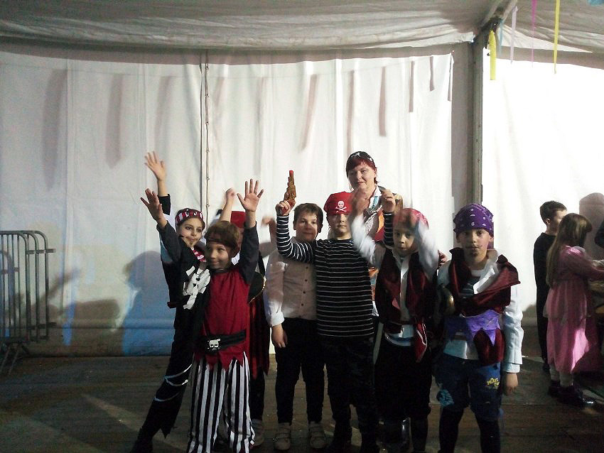 Tako su svoje mjesto u šatoru našli superjunaci, princeze, vještice, nogometaši, navijačice, gusari, razne životinje, pospanci u pidžamama, liječnici, hipiji, likovi iz filma Briljantin, bebe, zaštitari… Animatorice iz Igraonice Zvrk, maskirane u gusarice, različitim su igrama zabavljale sve male maškare željne zabave, a dečki iz Dua Dani pobrinuli su se za glazbu.