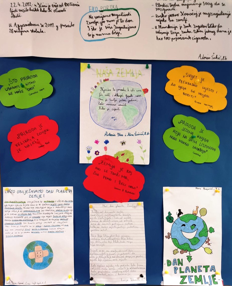 Naši učenici obilježili su Dan planeta Zemlje boravkom u prirodi, izradom plakata i likovnim radovima.