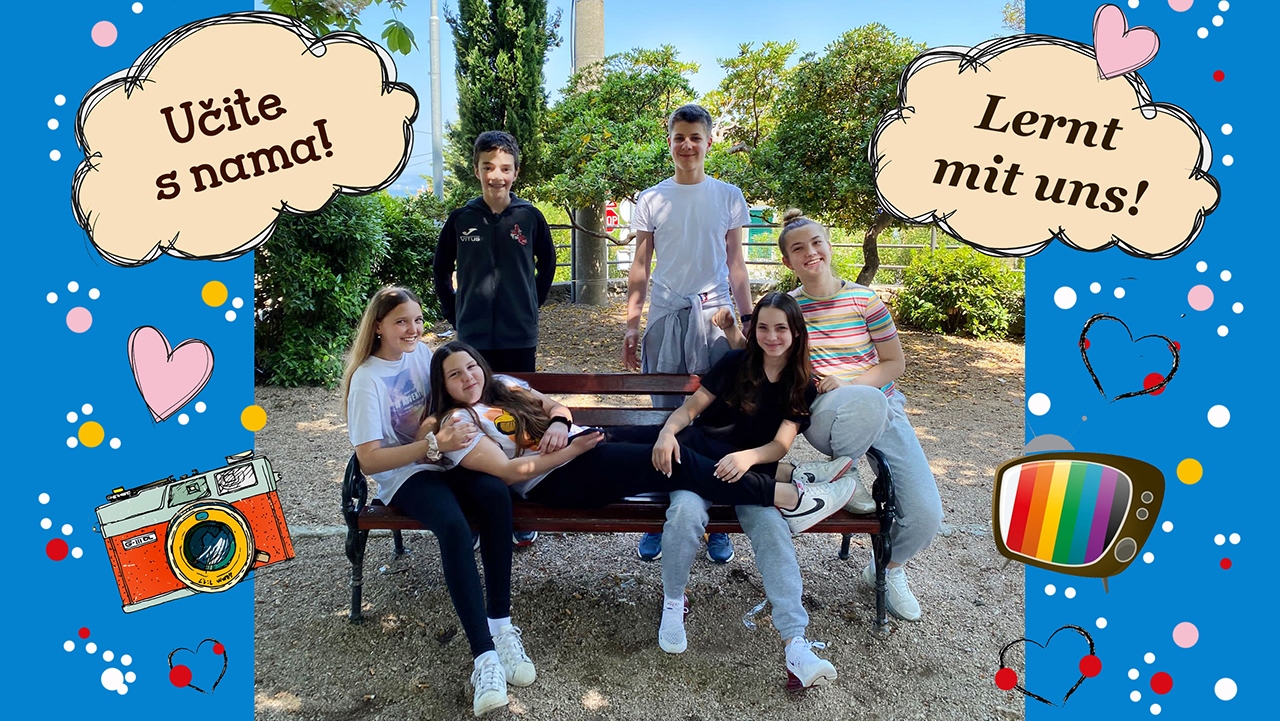 Dobrodošli u naš Jezični kutak Volimo Njemački. Mi smo učenici 7.b razreda. Sa svojom učiteljicom njemačkog jezika Dunjom Perhat pokrenuli smo projekt Lernt mit uns – Učite s nama. Zajedno snimamo i uređujemo kratke video lekcije s nekim nama (a vjerojatno i vama) bliskim temama. Video lekcije imaju podnaslove na njemačkom i na hrvatskom jeziku, stoga bez brige jer razumjeti ćete sve bez obzira na vaš stupanj znanja njemačkog jezika.