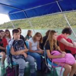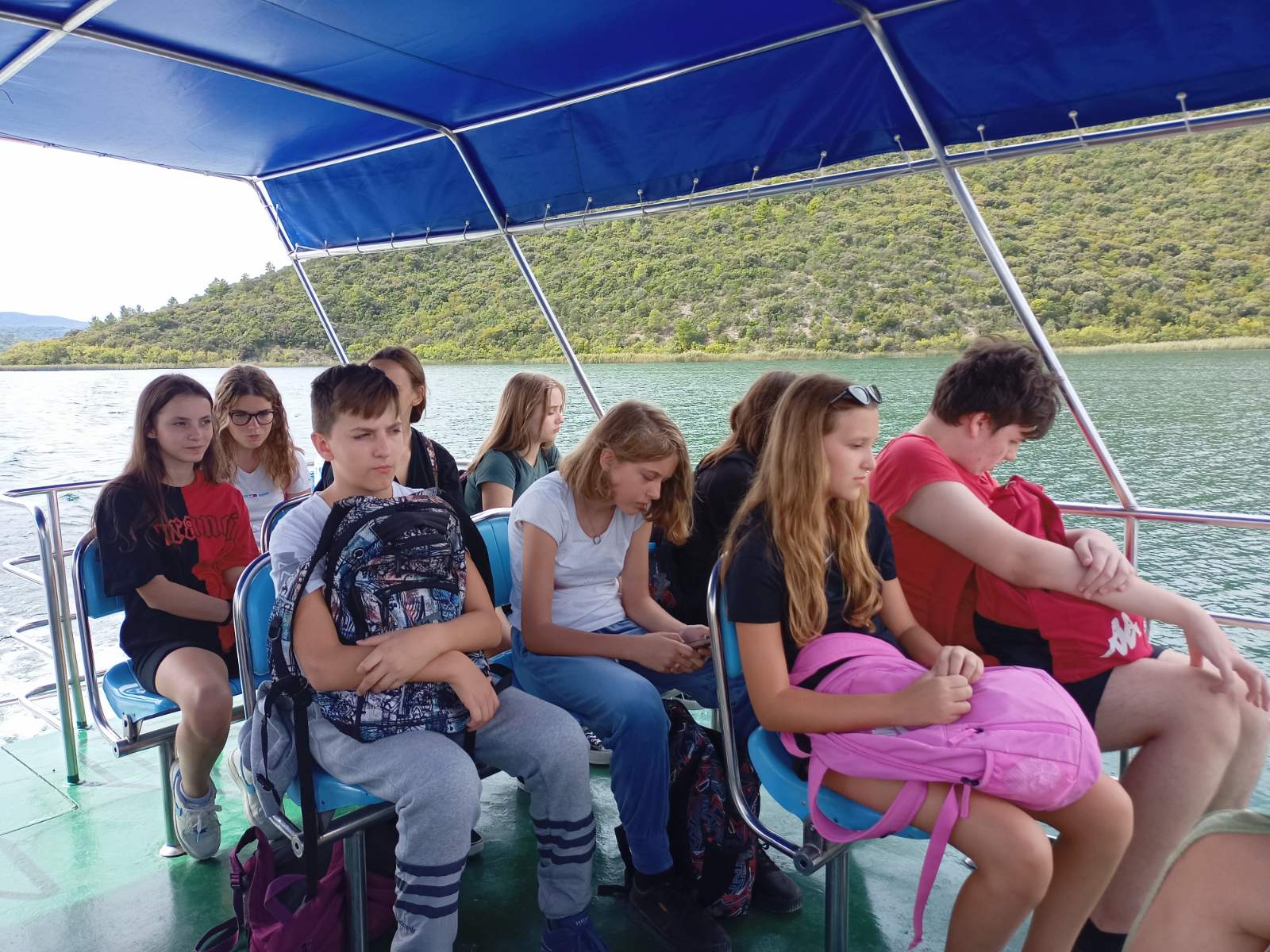 Kada smo došli, prvo smo hodali zelenom, prozračnom šumicom stepenicama nizbrdo do uvale gdje su se nalazili brodići koji su nas trebali prevesti na mali otočić Visovac. Volim putovati brodom pa sam se veselila kratkom putovanju. Visovačko jezero bilo je plavo poput neba. Vožnja je bila ugodna, slušala sam male, bijele ptice kako cvrkuću i gledala ih kako se igraju na bistroj vodi. Sjedila sam u donjem dijelu broda pa su me nehotice prskale hladne kapljice vode, što je bilo ugodno s obzirom da je dan bio vruć i sparan, baš pravi ljetni. Za vrijeme vožnje uslikala sam nekoliko lijepih slika, pričala s prijateljicom i razmišljala što ćemo još vidjeti toga dana.