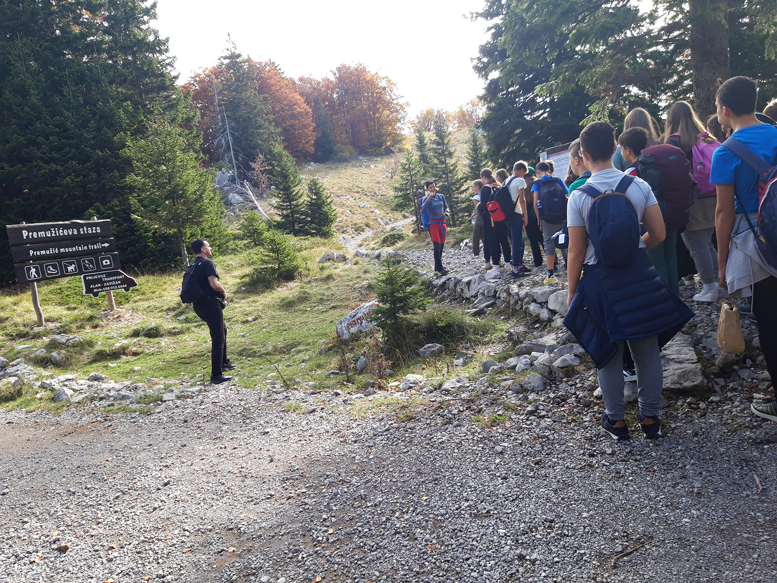 Stigavši na odredište u 10 sati uputili smo se pješice na Premužićevu stazu kako bi propješačili tu zahtjevnu stazu, njezinu prvu dionicu dugu 16 kilometara. Na stazi nas se najviše dojmio strogi rezervat u kojem smo vidjeli Hajdučke i Rožanske kukove, te razne druge reljefne oblike. Zahvaljujući našem stručnom vodstvu, Aniti Bistričić i teti Jadranki, nismo samo upoznali ljepote nacionalnog parka već se i odlično zabavili. Nadasve umorni, ali i bogatiji za ovo predivno iskustvo vratili smo se u Malinsku u 9 sati navečer.