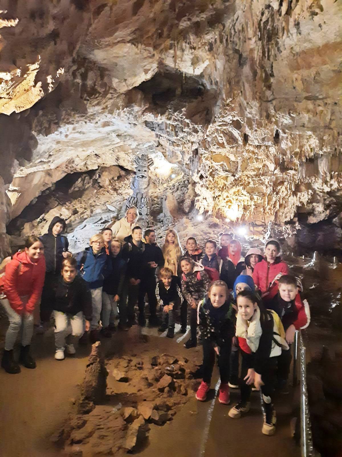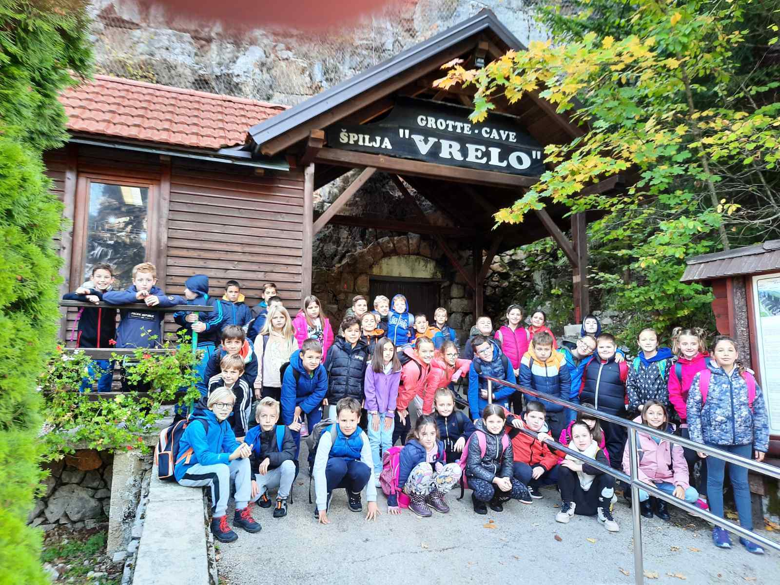 Predvođeni svojim učiteljicama Mihaelom Košić, Ivanom Mišković i Sanjom Špalj, ukupno 42 učenika krenulo je autobusom na dugo iščekivani izlet. Nakon sata vožnje stigli smo na prvu lokaciju, u špilju Vrelo. Špilja je dugačka 300 metara, ali je 200 uređeno za posjetitelje. Usred špilje teče potočić, u kojem je temperatura vode od 4-5 stupnjeva, a temperatura zraka 7-8 stupnjeva tijekom cijele godine. Na kraju šetnje kroz špilju, vidjeli smo kunu, koja je zalutala u nju.