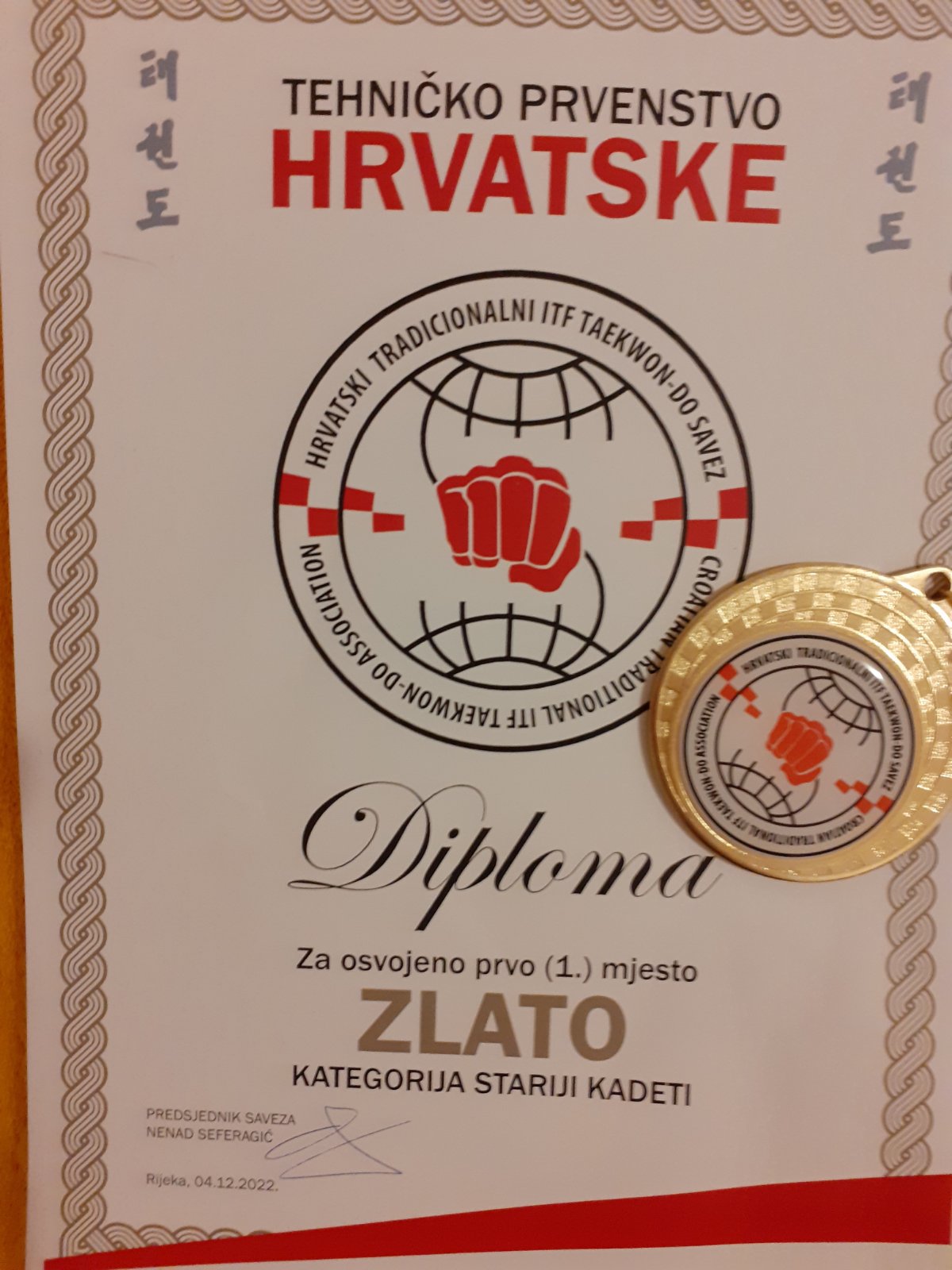 Paola Ivana Medved, učenica 8.b razreda, ostvarila je još jedan u nizu svojih izvrsnih sportskih uspjeha osvojivši zlato na Tehničkom prvenstvu Hrvatske u Tradicionalnom ITF Taekwon Do-u koje se održalo u nedjelju 4. prosinca Rijeci. Bravo Paola Ivana! ❤️