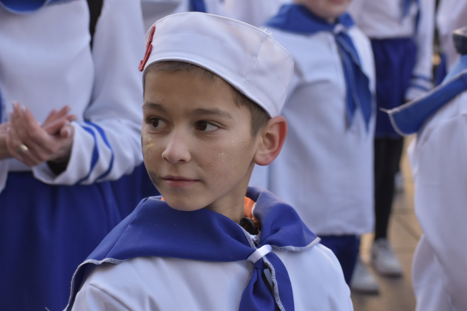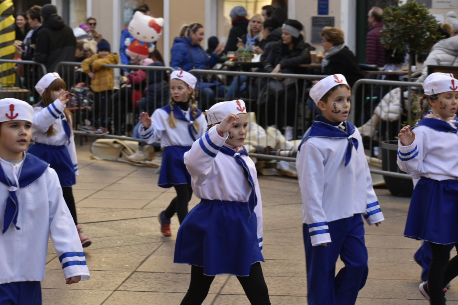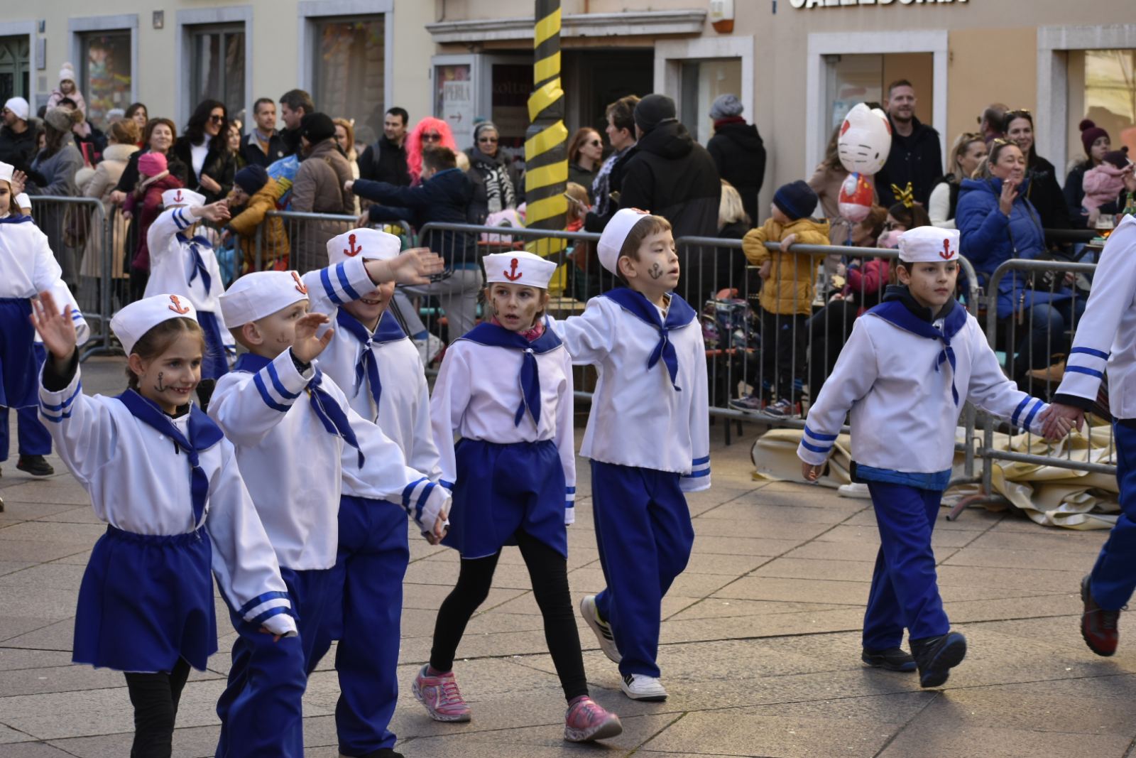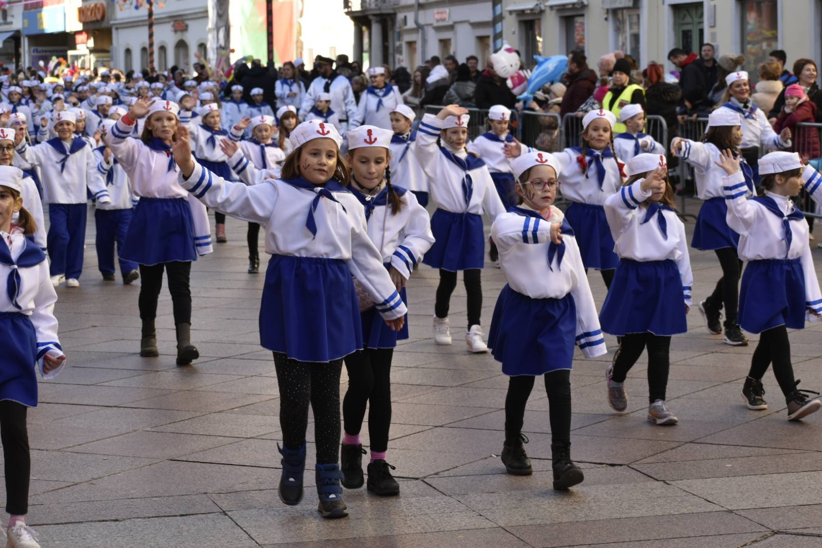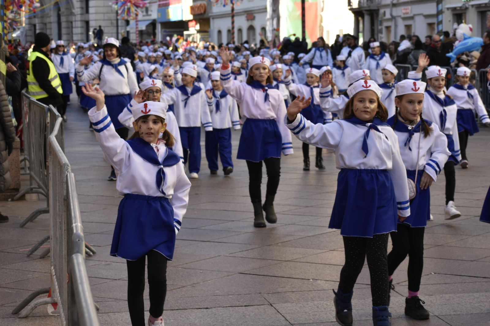 Konačno je stigla i ta subota za koju smo se dugo i marljivo pripremali. Dan je bio sunčan, a bura koja je puhala nije nas mogla omesti. Autobusna stanica u Malinskoj bila je puna uzbuđenih malih maškara i njihovih najbližih koji su ih došli ispratiti. Nakon šminkanja uslijedili su, sad već tradicionalni, ples i fotografiranje, a zatim su tri autobusa s našim mornarima i s dvanaest učiteljica, krenuli prema Rijeci. Šarena i razigrana Riječka riva bila je ispunjena djecom maskiranom u svakakve maštovite maske. Sa zanimanjem smo pratili sve što se oko nas događa i strpljivo čekali svoj red za veliki nastup. Jedva smo dočekali da i mi krenemo u povorku. Otplesali smo svoju koreografiju kroz cijelo Korzo i odlično odradili sve četiri pozornice te tako „doplovili“ i do posljednje, pete pozornice u zgradi Ex port Delta gdje smo za svoj trud nagrađeni krafnama i sokovima. Umorni, ali ispunjeni srećom i dopraćeni burom, vratili smo se na naš Zlatni otok, u našu Malinsku valu gdje su nas čekali ponosni roditelji.