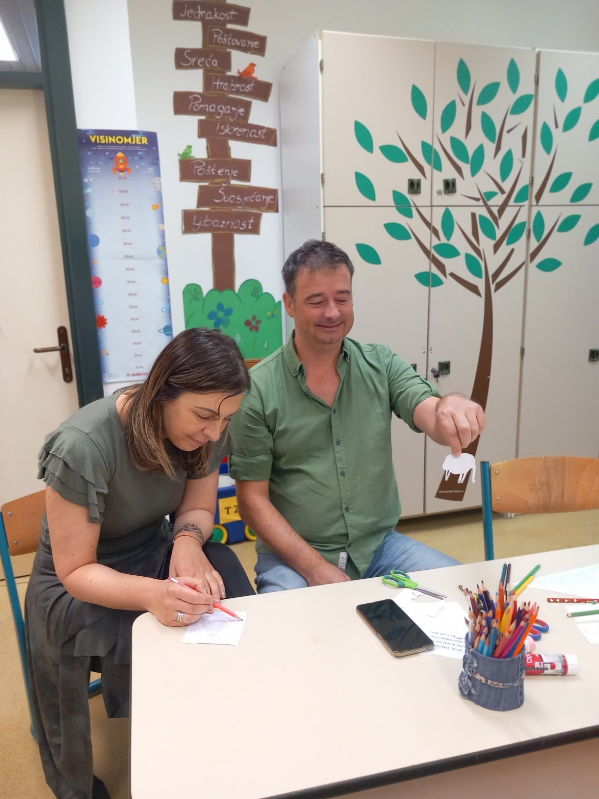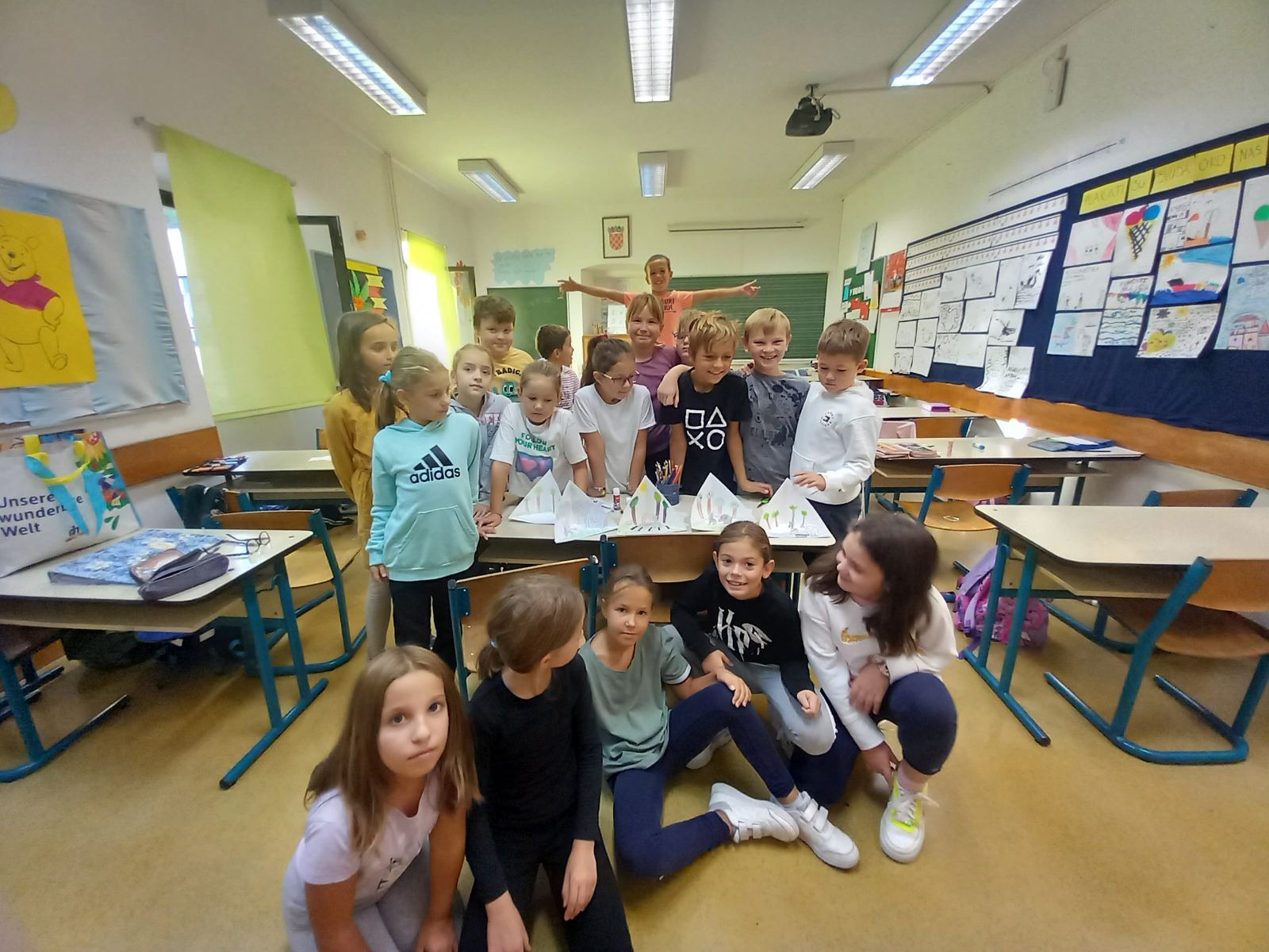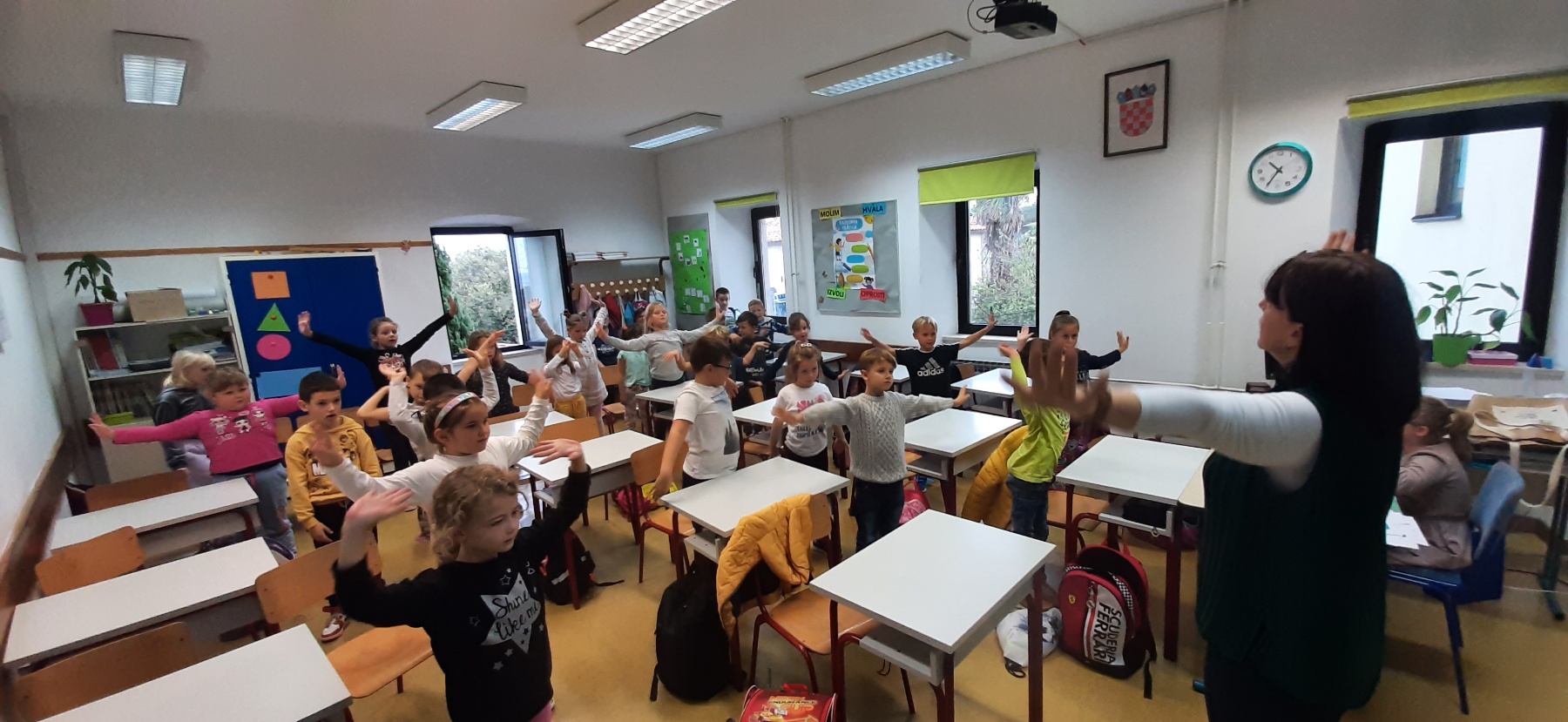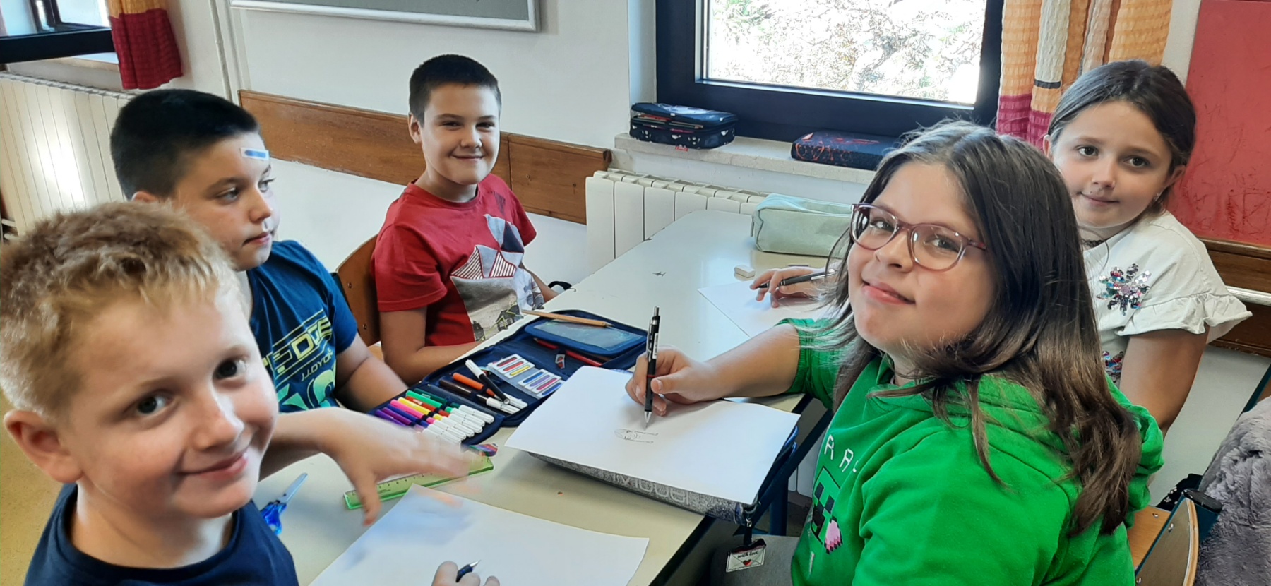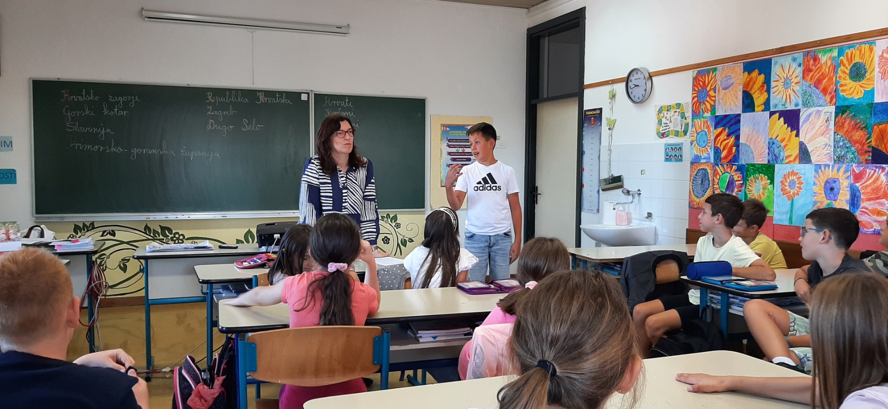 U petak 29. rujna posjetila nas je učiteljica Ivančica Toić, jedna od autorica Knjigomjera, interaktivne bilježnice za obradu lektirnih djela. U sklopu projekta Radionice za poticanje čitanja održala je u 2.a sat na kojem su djeca čitala, glumila, bojala, izrađivala trioramu – tehniku slaganja papira. Bilo nam je zabavno, smiješno i poučno. Satu su prisustvovali i promotori iz Školske knjige Maša Amalija Juretić i Dražen Rubeša. Tako da su u učionici bile, kako su djeca rekla, tri učiteljice i jedan učitelj. Svi smo marljivo crtali, bojali i na kraju napravili izložbu naših radova.