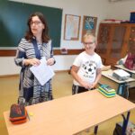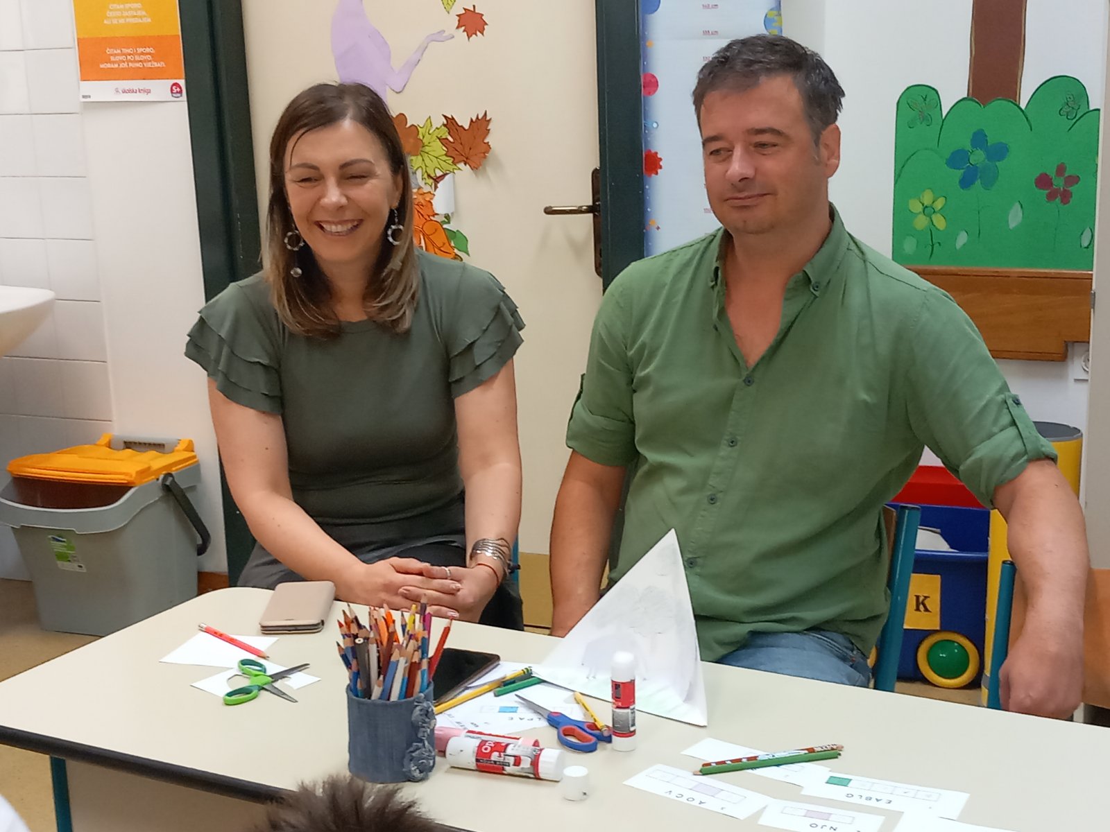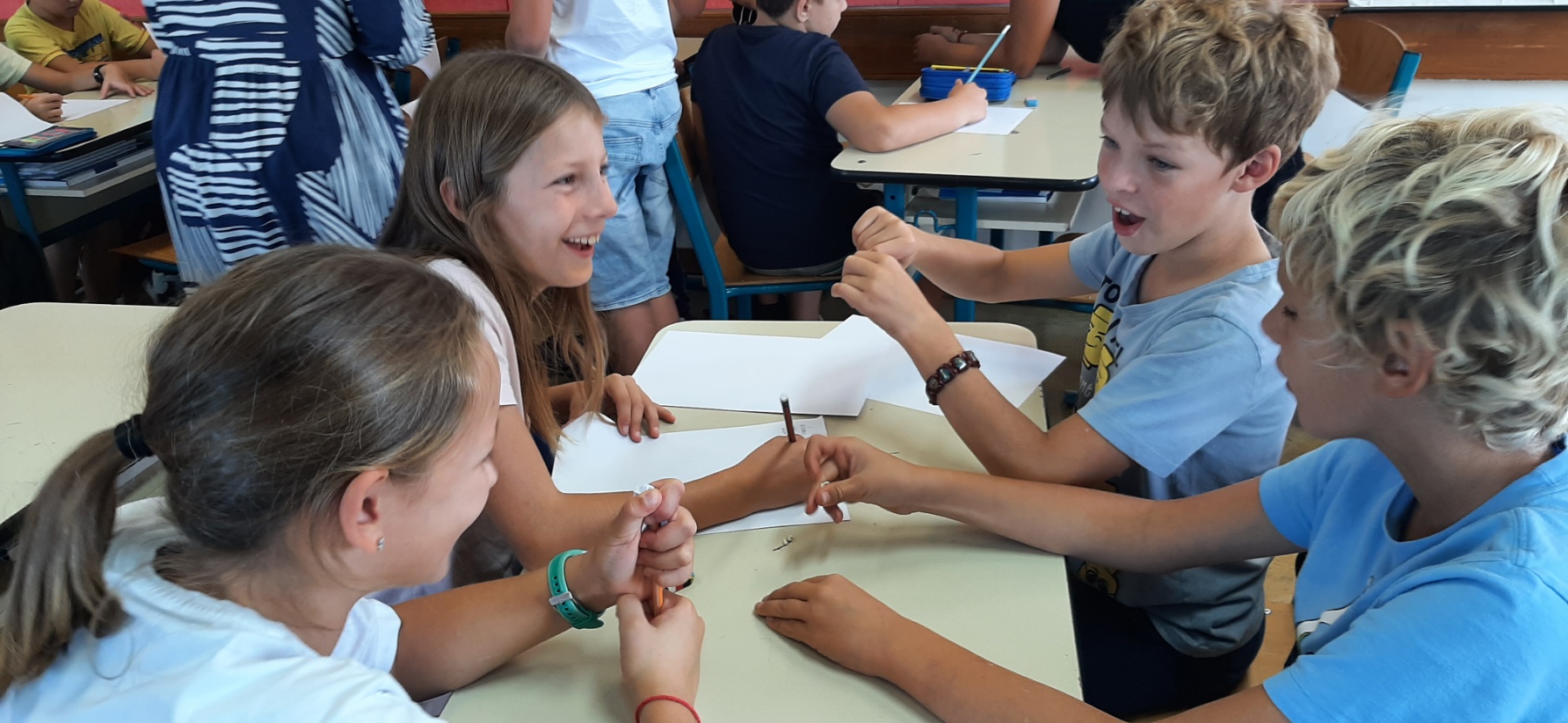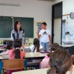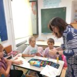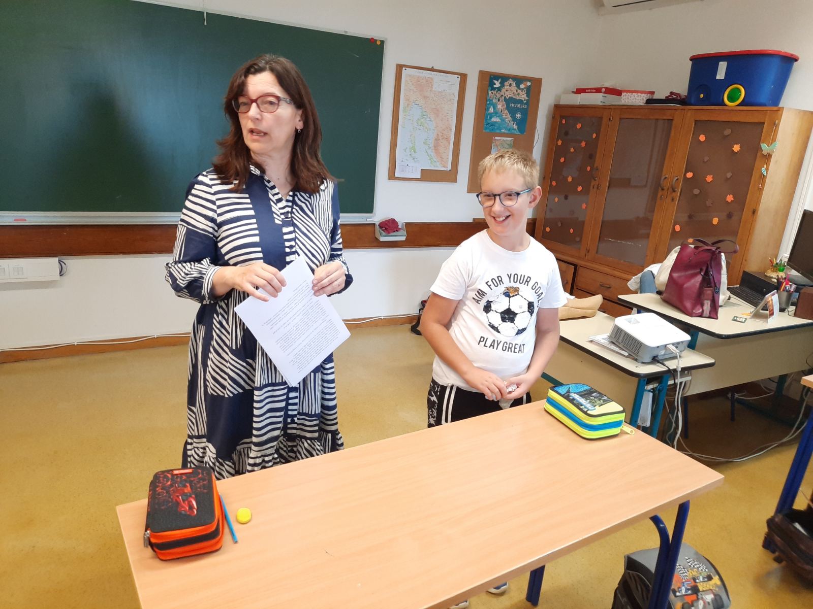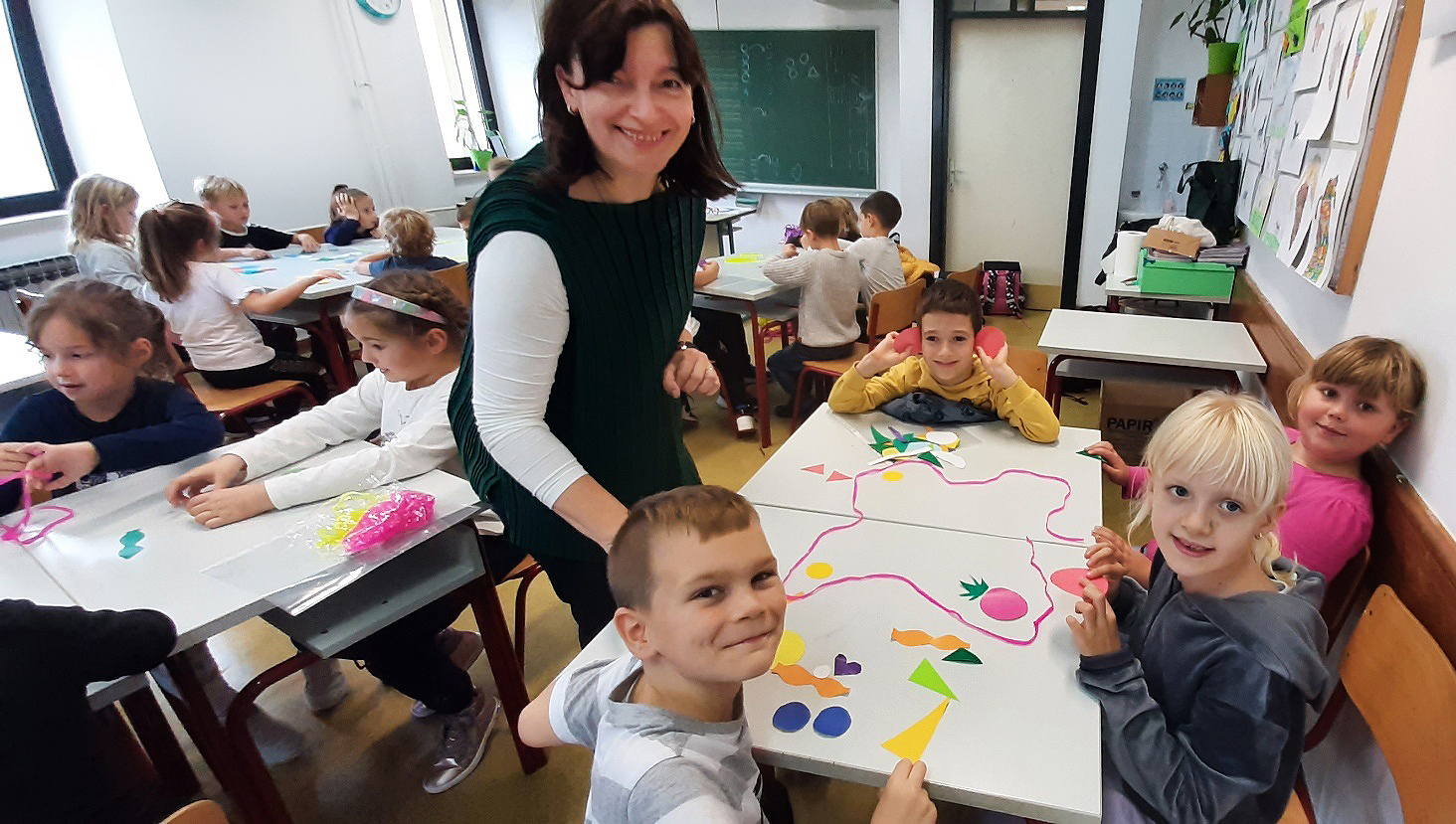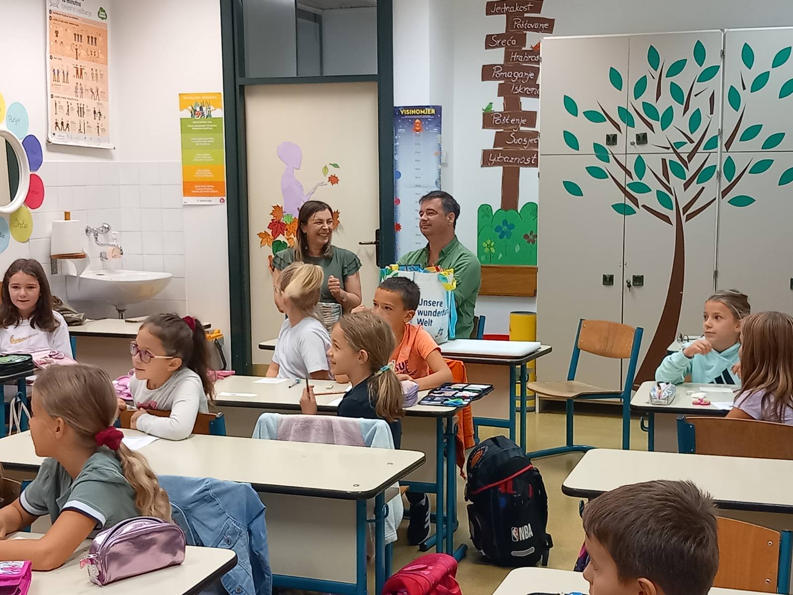 U petak 29. rujna posjetila nas je učiteljica Ivančica Toić, jedna od autorica Knjigomjera, interaktivne bilježnice za obradu lektirnih djela. U sklopu projekta Radionice za poticanje čitanja održala je u 2.a sat na kojem su djeca čitala, glumila, bojala, izrađivala trioramu – tehniku slaganja papira. Bilo nam je zabavno, smiješno i poučno. Satu su prisustvovali i promotori iz Školske knjige Maša Amalija Juretić i Dražen Rubeša. Tako da su u učionici bile, kako su djeca rekla, tri učiteljice i jedan učitelj. Svi smo marljivo crtali, bojali i na kraju napravili izložbu naših radova.