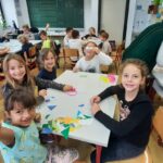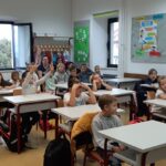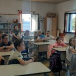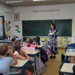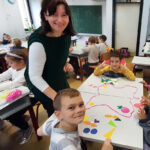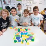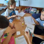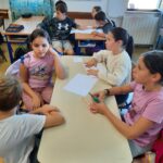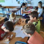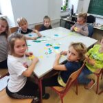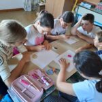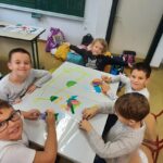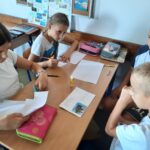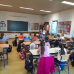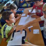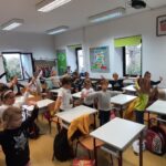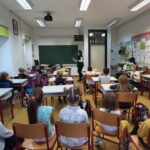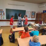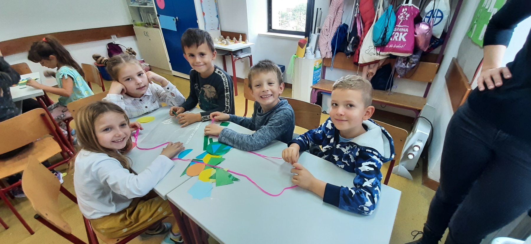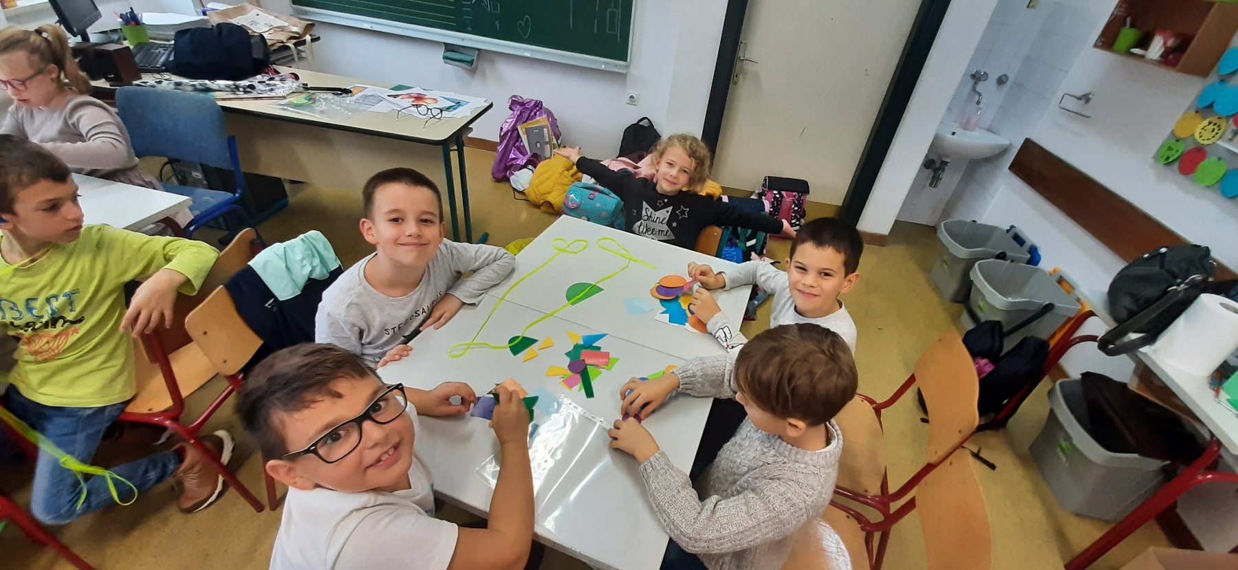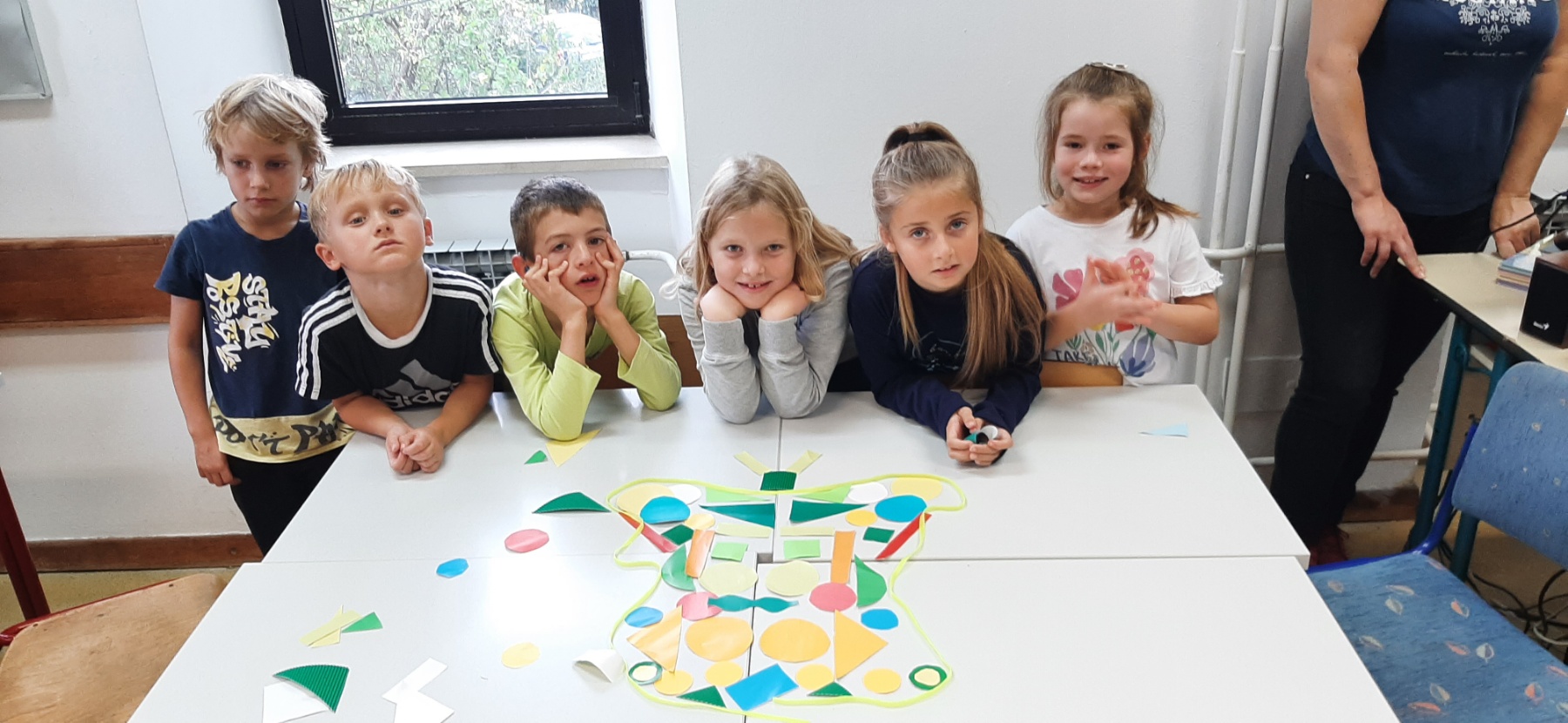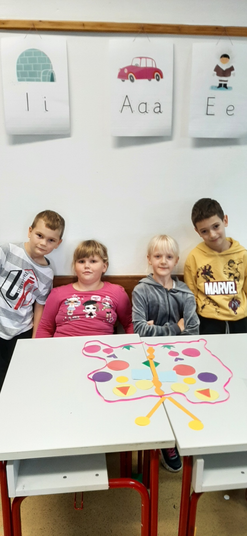 Učenici prvih razreda svoje druženje s gospođom Ivančicom započeli su čitanjem priče o leptiru, prema nizu slika. Dożivljaj lektire iskazali su verbalnom i neverbalnom komunikacijom. U završnom dijelu sata svaka je grupa imala zadatatak složiti leptira od geometrijskih i slobodnih oblika.
