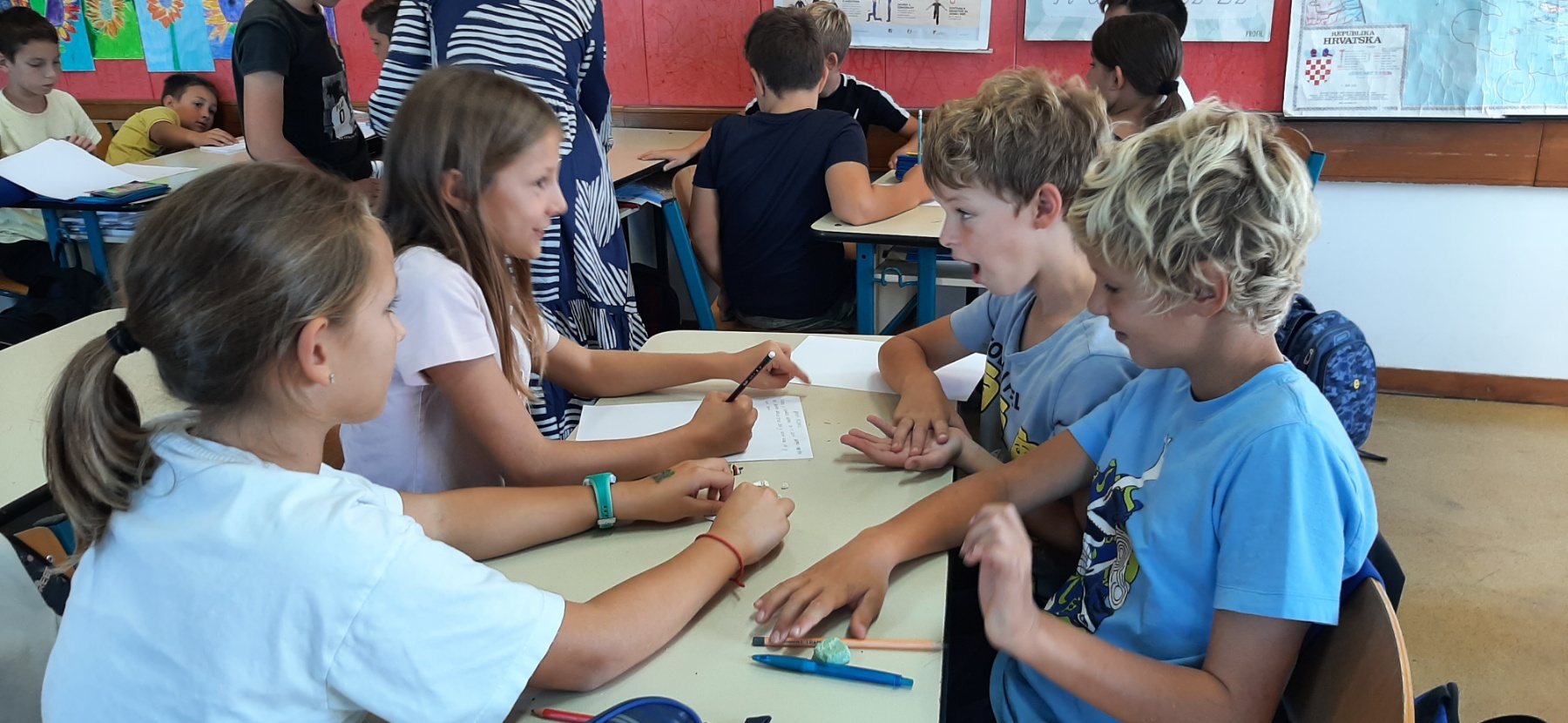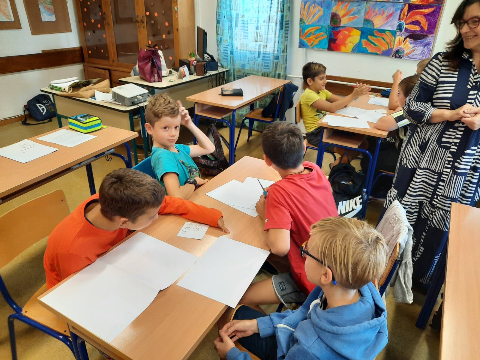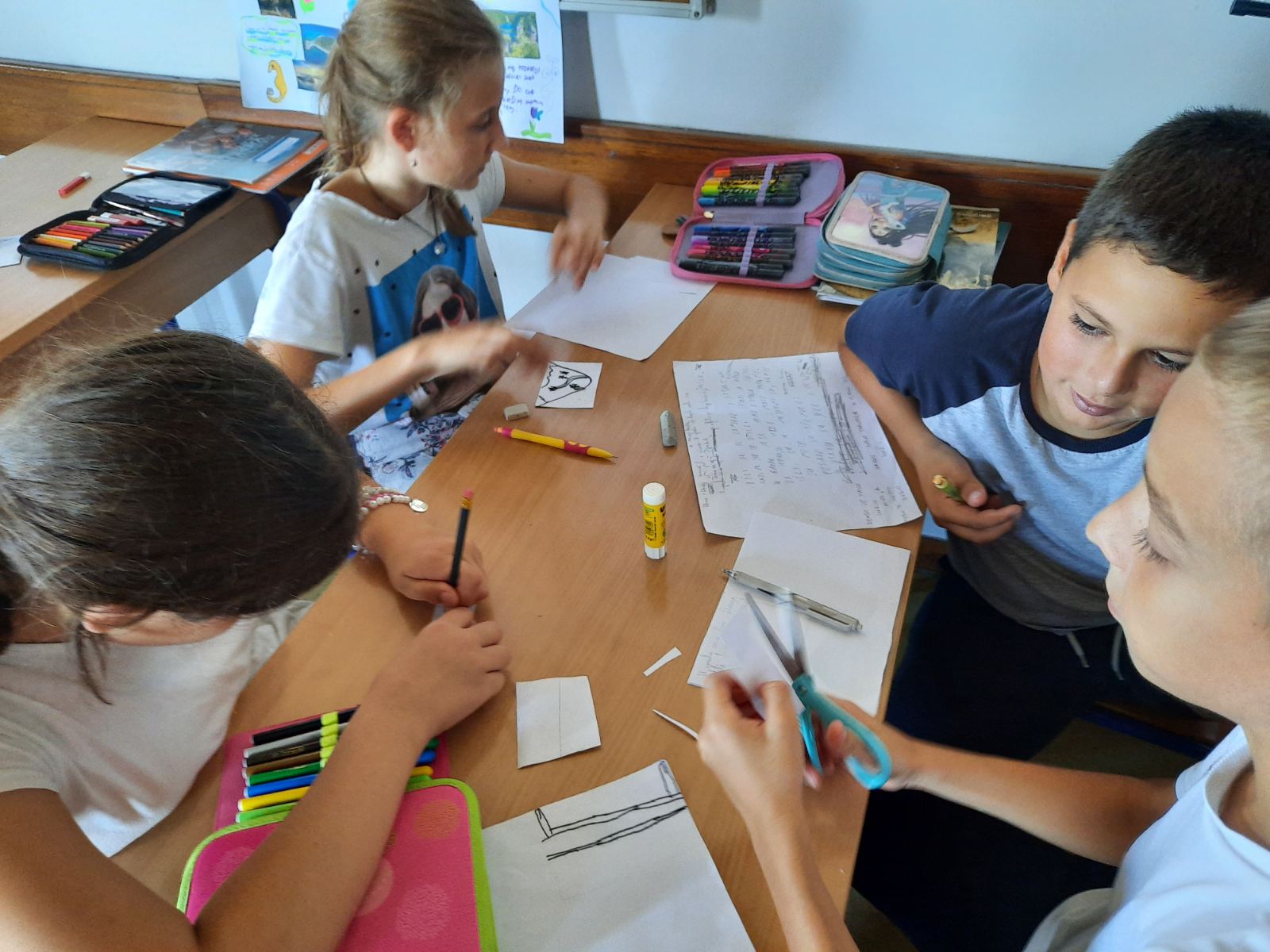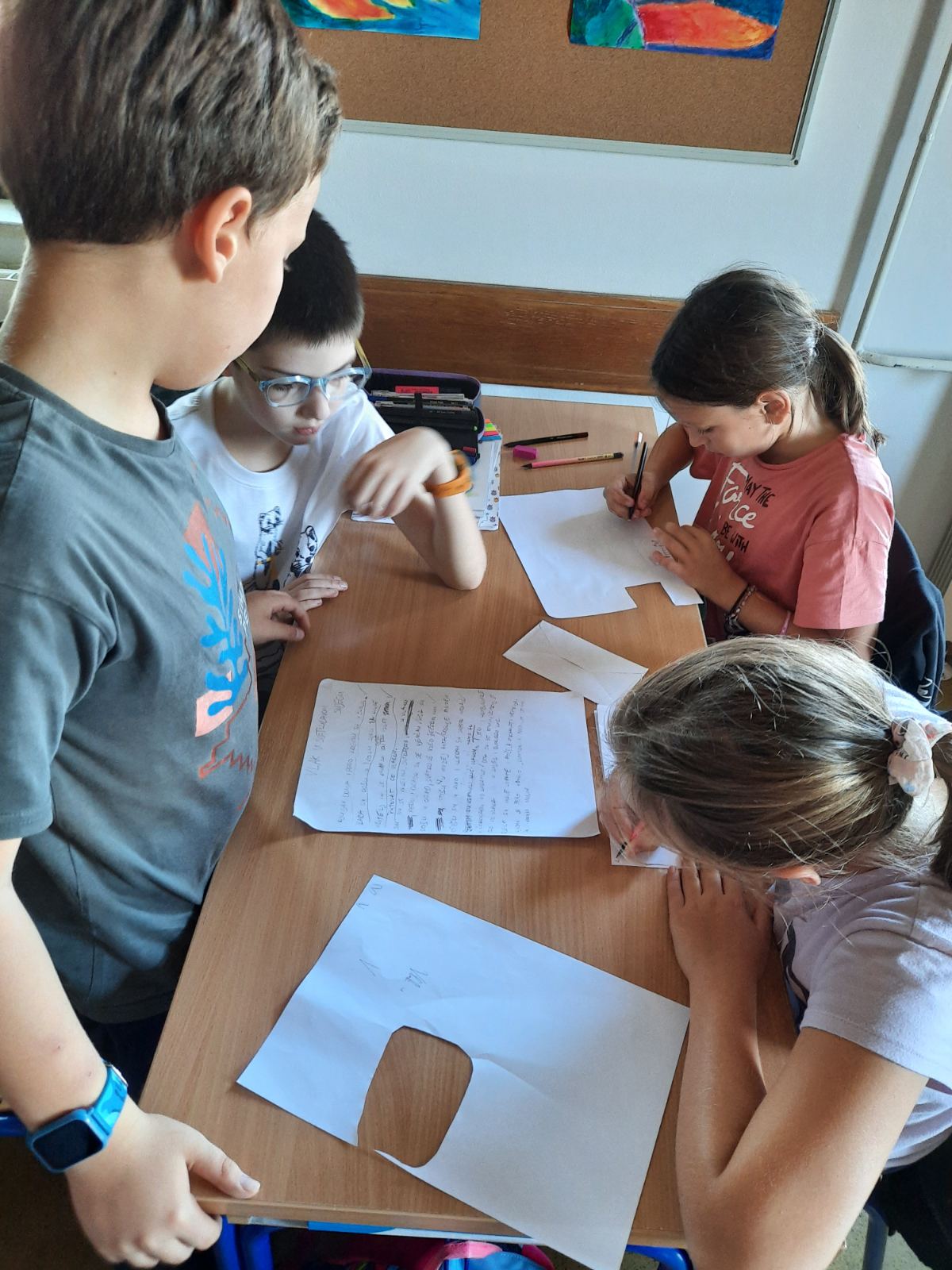 U 4.a i 4.b razredu, gospođa Ivančica je kroz igru pantomime uvela učenike u svijet lektire na jedan nov, drugačiji način. Interpretacijom sažetka lektire iz kuta jednog dječaka potakla je učenike na razmišljanje o cjelovitom čitanju lektire. Vidno motivirani učenici, na kraju su napisali i ilustrirali svoju slikovnicu.