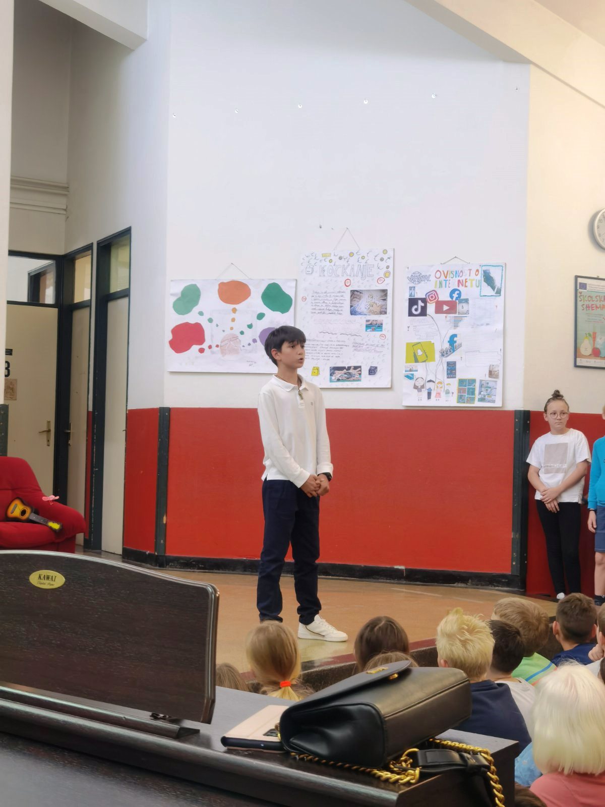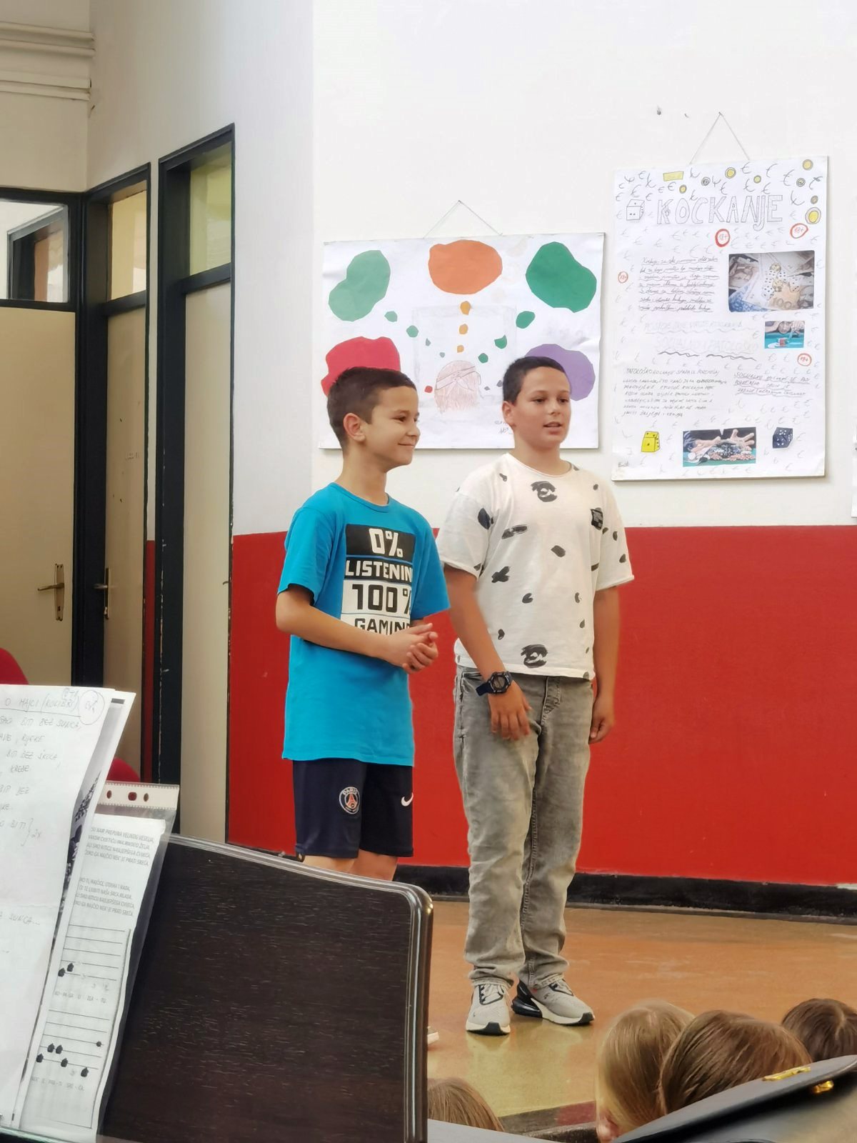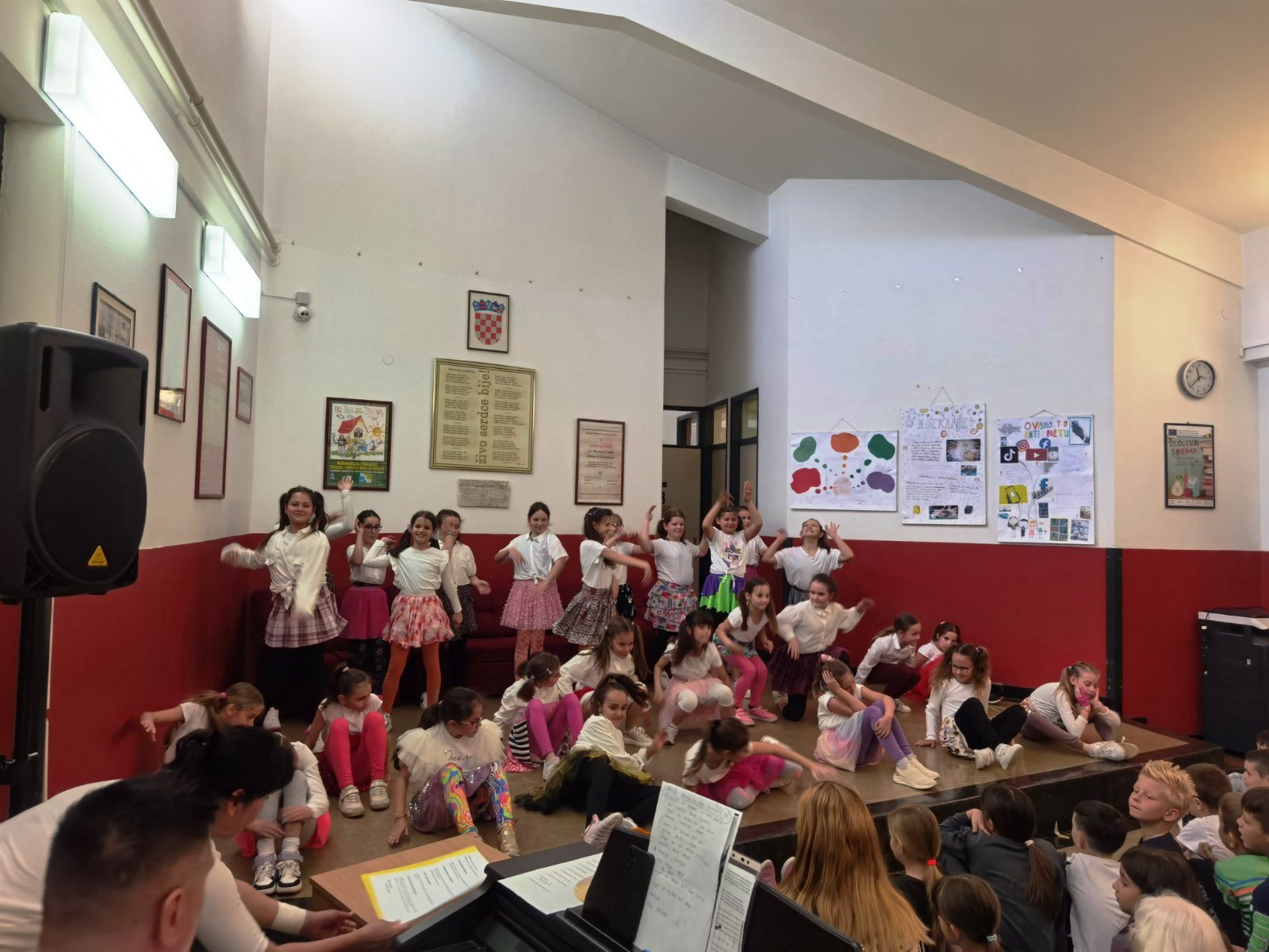 Recitacijom Čemu služi mama nasmijali su nas četvrtaši. Zbor nas je razveselio s dvije pjesme Proljeće i Balada o majci. S iznimno bogatim programom došli smo i do kraja ove priredbe, a za sam kraj učenici dramske družine izveli su nam igrokaz Iznenađenje za kraj i ujedno čestitali svim mamama njihov dan. ❤️