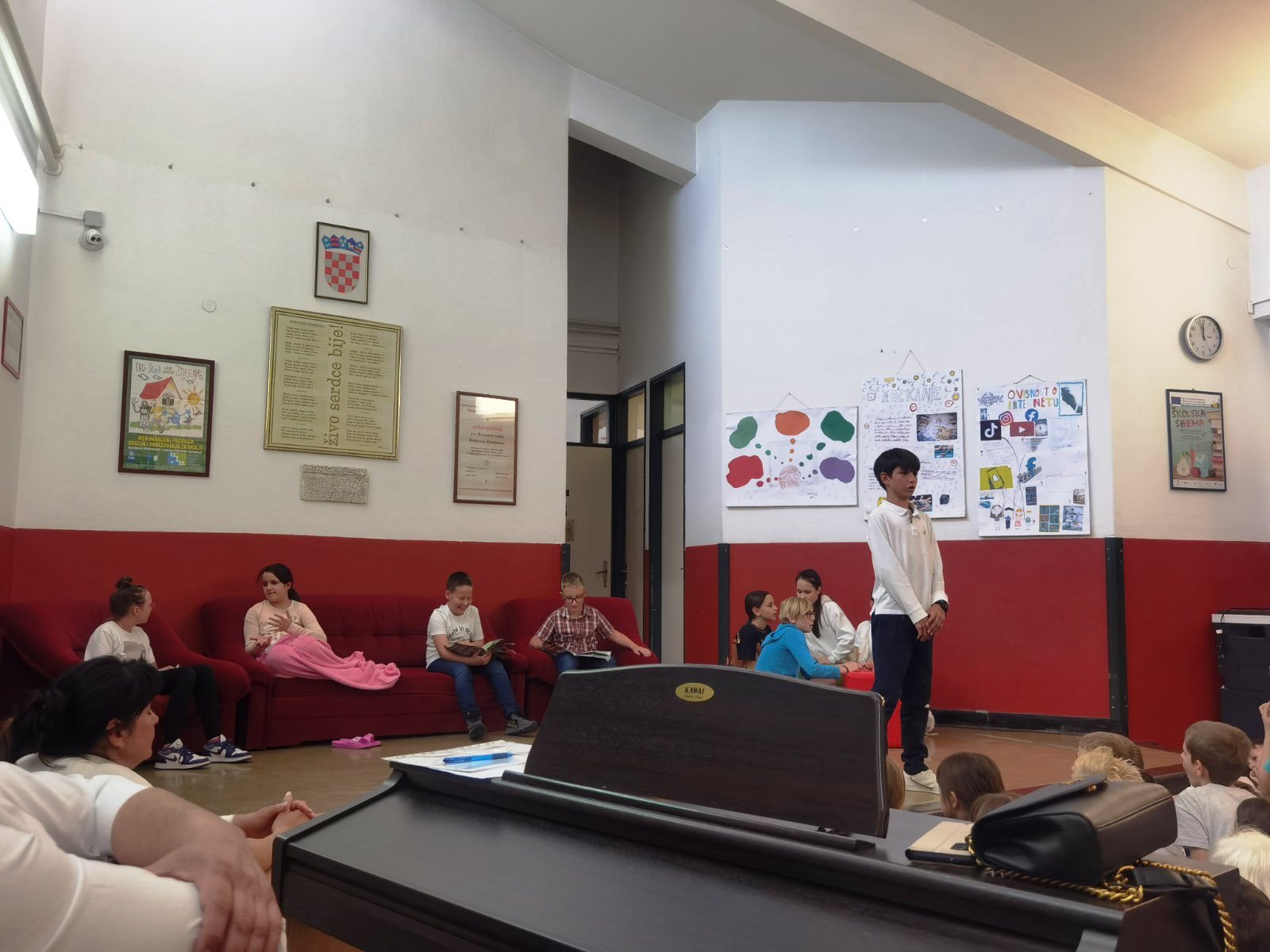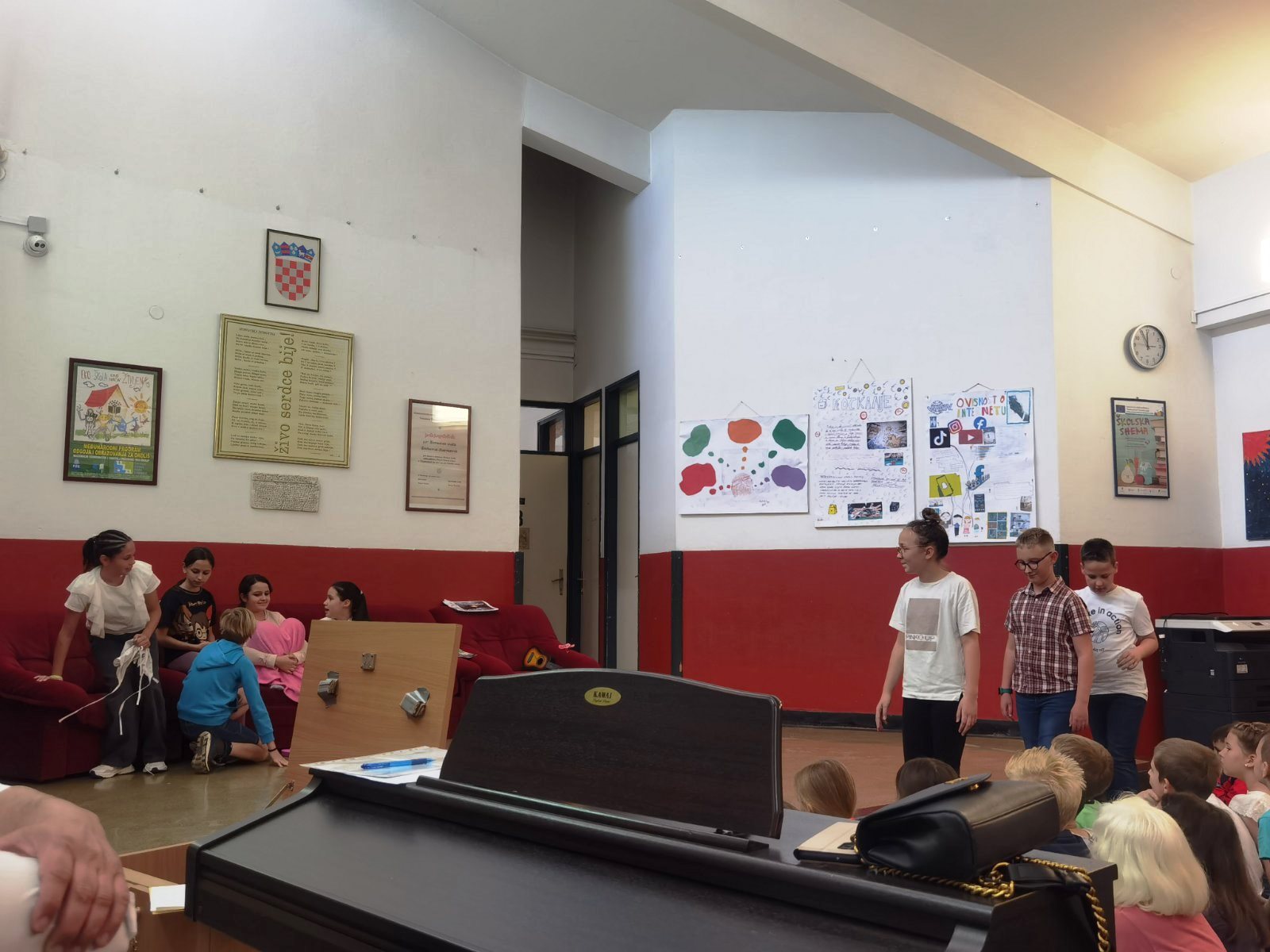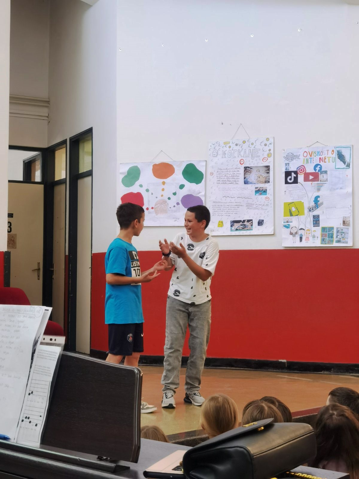 Recitacijom Čemu služi mama nasmijali su nas četvrtaši. Zbor nas je razveselio s dvije pjesme Proljeće i Balada o majci. S iznimno bogatim programom došli smo i do kraja ove priredbe, a za sam kraj učenici dramske družine izveli su nam igrokaz Iznenađenje za kraj i ujedno čestitali svim mamama njihov dan. ❤️