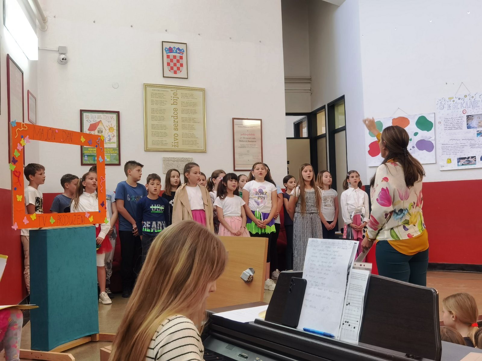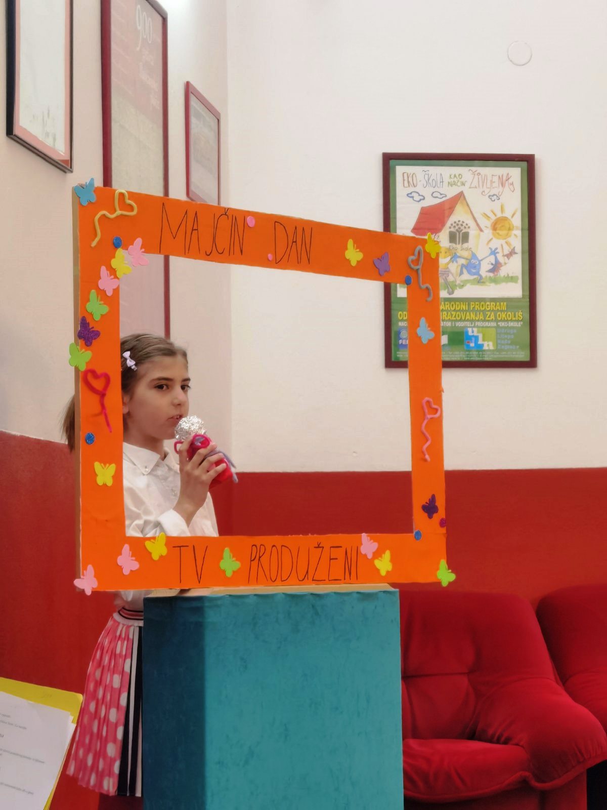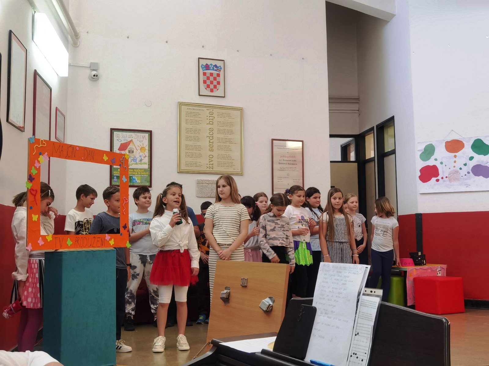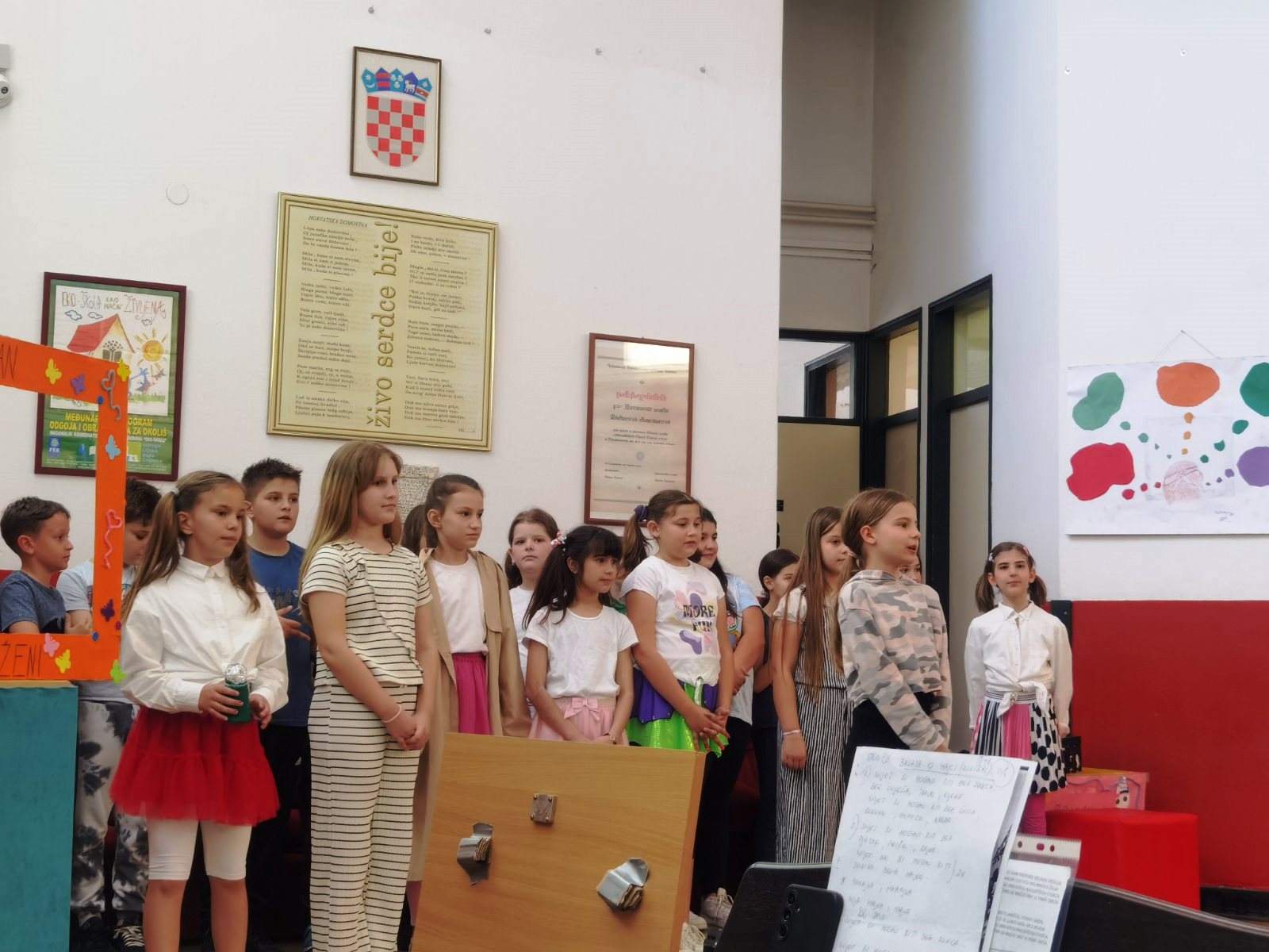 Najprije su prvašići pjesmom Čestitka majčici pozdravili sve prisutne goste. Bilo je tu i mama i tata i baka i djedova… ma cijela obitelj, a i dio rodbine. Uslijedio je zabavan igrokaz Abeceda o mukama mame koke i njenih pilića koji su izveli učenici 2.a, a potom su i zapjevali pjesmicu Čemu služe roditelji i raznježili sve mame u publici. Učenici produženog boravka pripremili su pravu pravcatu TV reportažu.