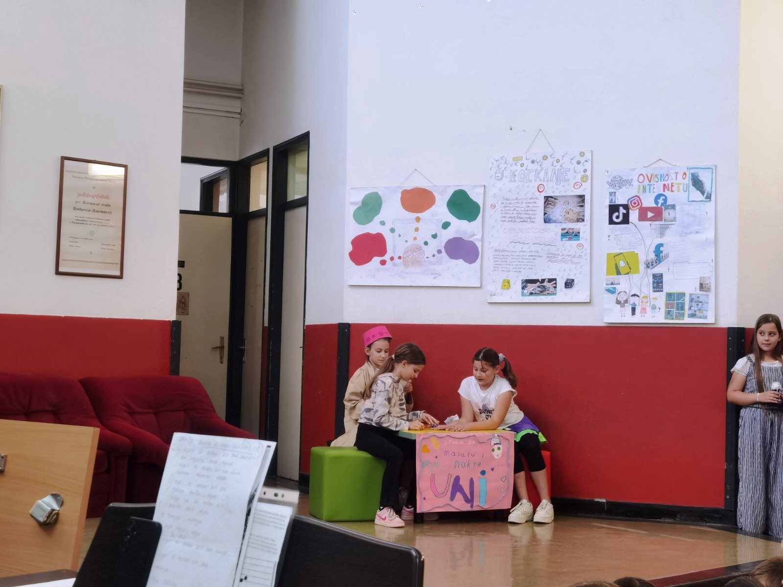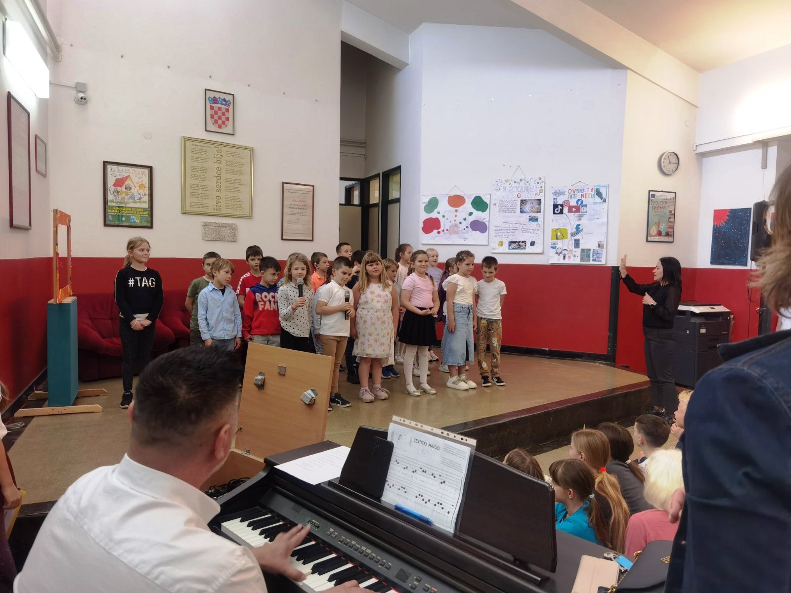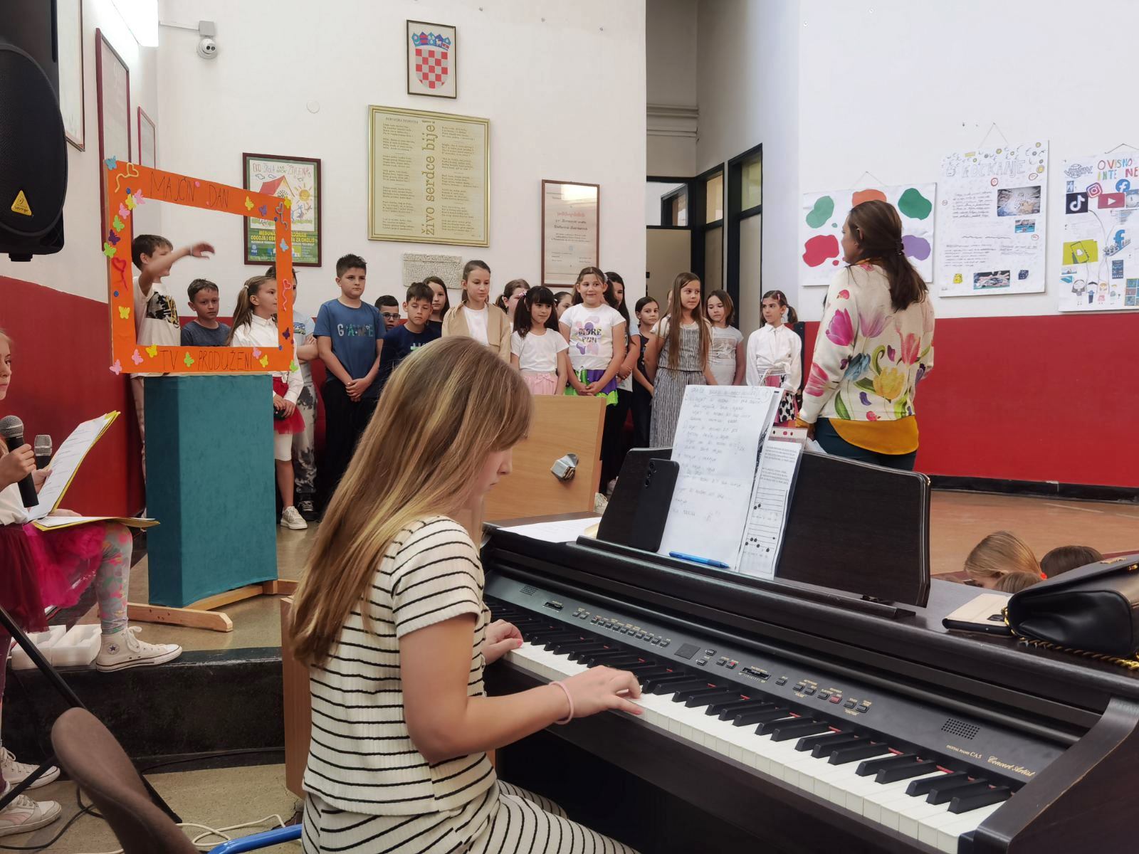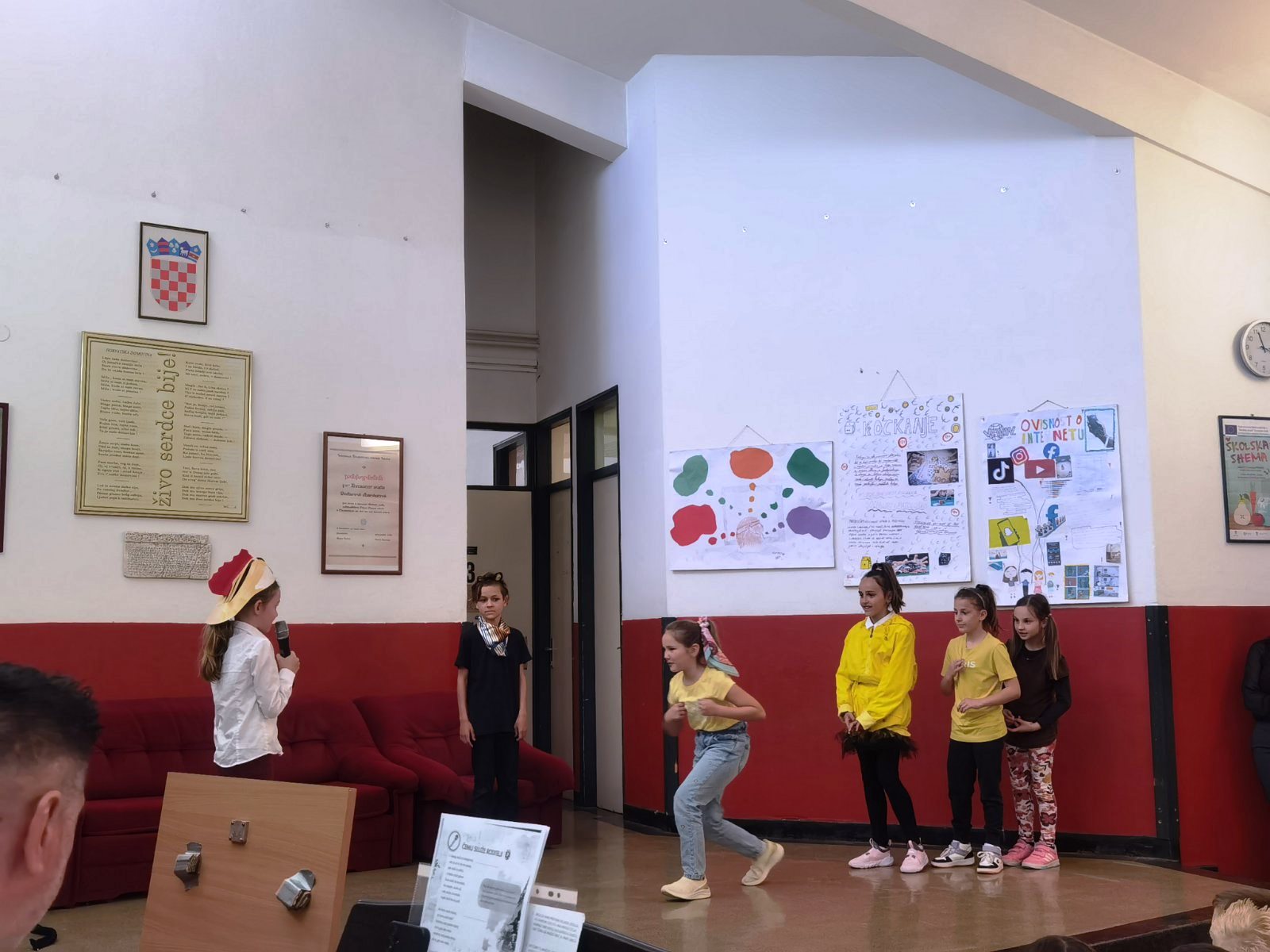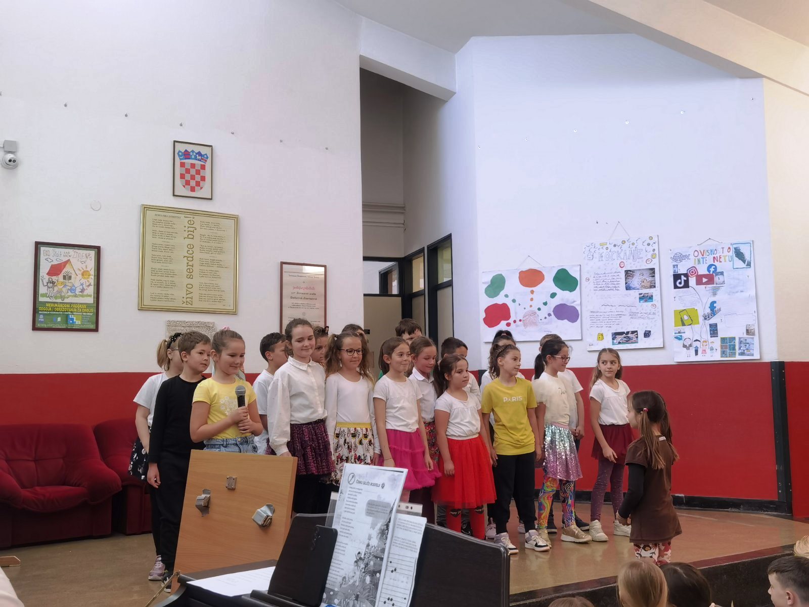 Najprije su prvašići pjesmom Čestitka majčici pozdravili sve prisutne goste. Bilo je tu i mama i tata i baka i djedova… ma cijela obitelj, a i dio rodbine. Uslijedio je zabavan igrokaz Abeceda o mukama mame koke i njenih pilića koji su izveli učenici 2.a, a potom su i zapjevali pjesmicu Čemu služe roditelji i raznježili sve mame u publici. Učenici produženog boravka pripremili su pravu pravcatu TV reportažu.