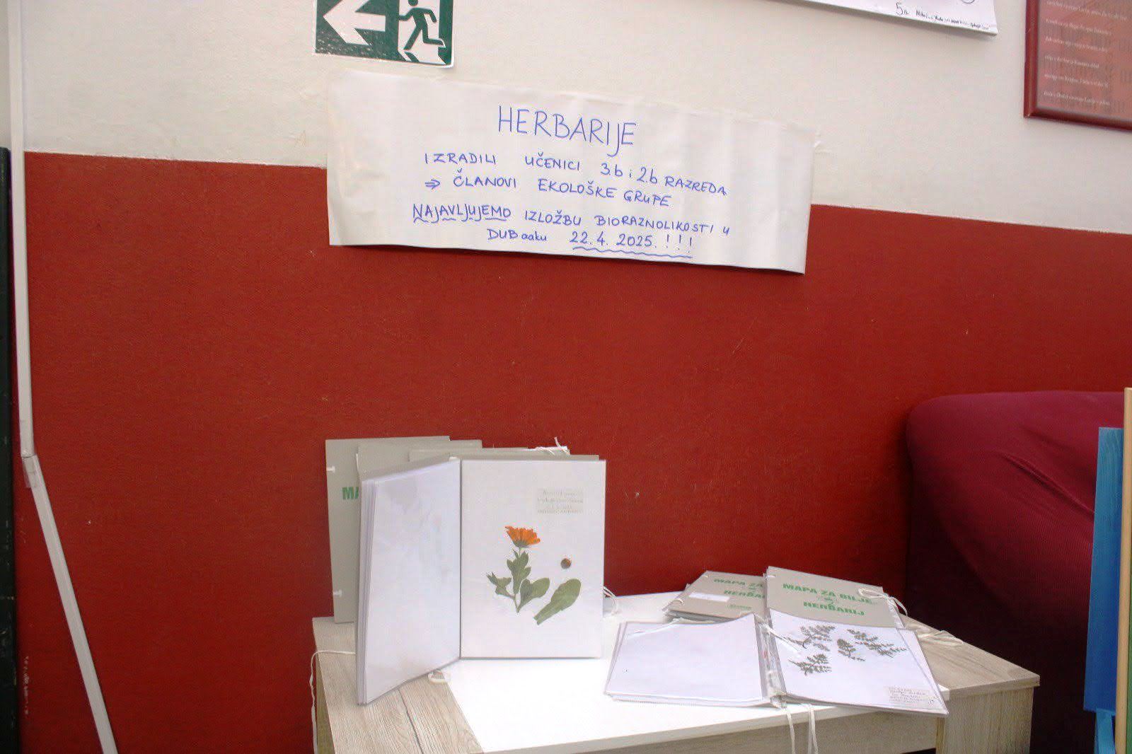 Kušali smo jesti jaglace i neke vrste divljih lukova, ubrali prve šparoge, izdanke bljušta i veprina (kataroške), malo očistili šumu od smeća i uživali u druženju na svježem zraku. Podsjetnik na ugodno provedeno vrijeme su nam svakako herbariji za koje smo biljke tom prilikom prikupljali. Herbaiji su nam već bili izloženi na prodajnoj izložbi Učeničke zadruge Dub u holu naše škole.