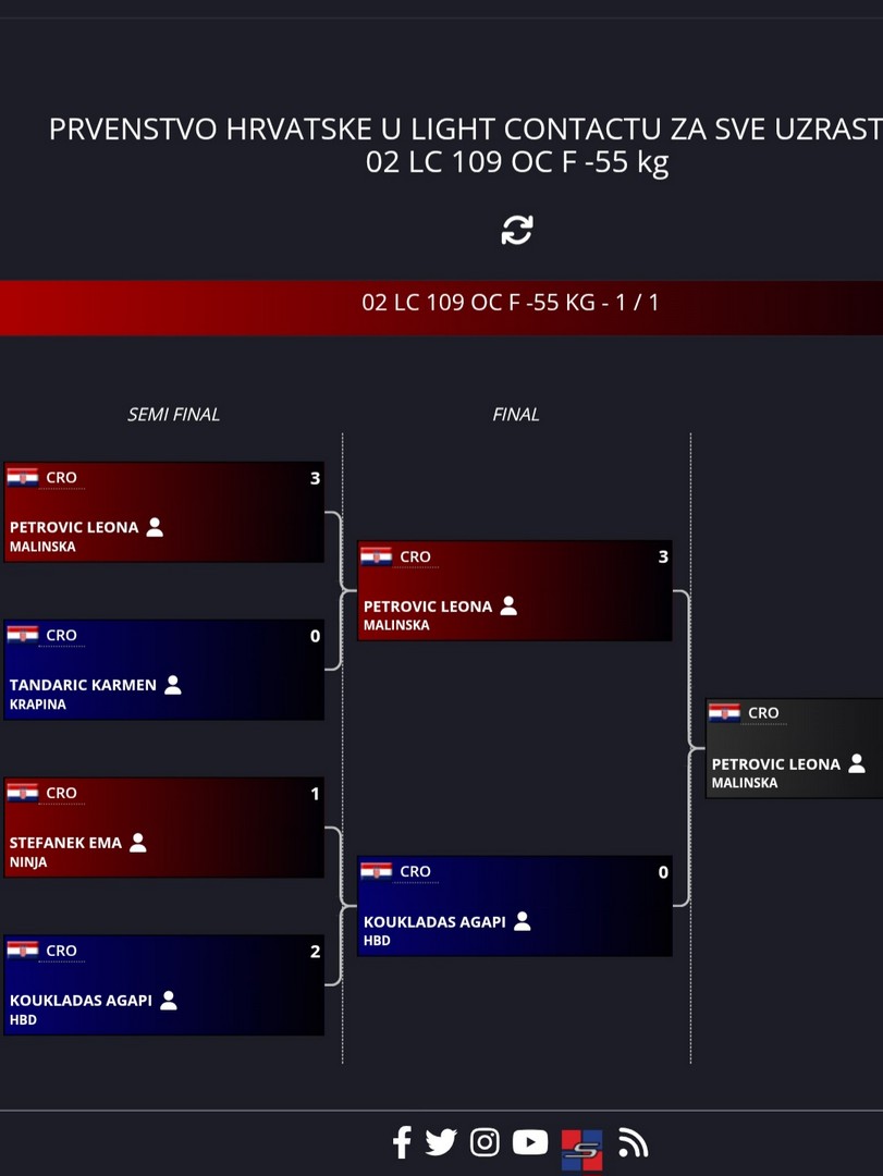 To je Leoni druga ovogodišnja titula državne kickboxing prvakinje jer je prije mjesec dana taj naslov osvojila u Osijeku u disciplini kick light. Inače, Leona je jedna od malobrojnih kickboksačica koja se natječe u sve tri discipline dozvoljene za njezin uzrast. Pored light contacta i kick lighta, Leona je u ožujku nastupila u Jastrebarskom na državnom prvenstvu u point fightingu, ali je tamo bila petoplasirana.