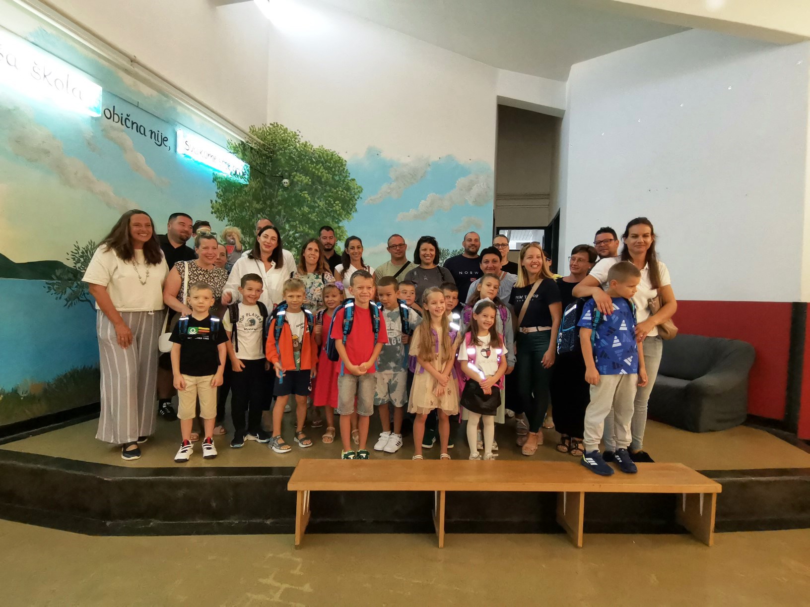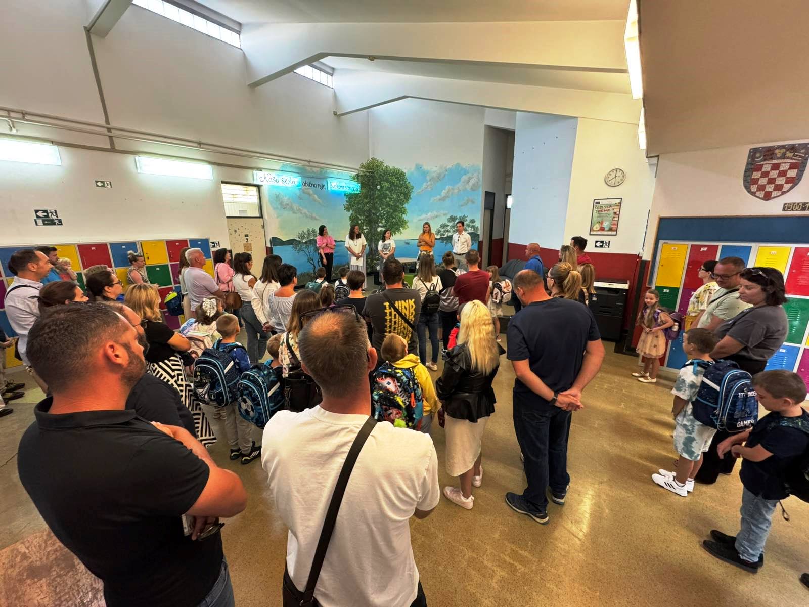 Učenici su se nakon prozivke uputili zajedno s učiteljicama i roditeljima u svoje učionice te prvi put sjeli u školske klupe.