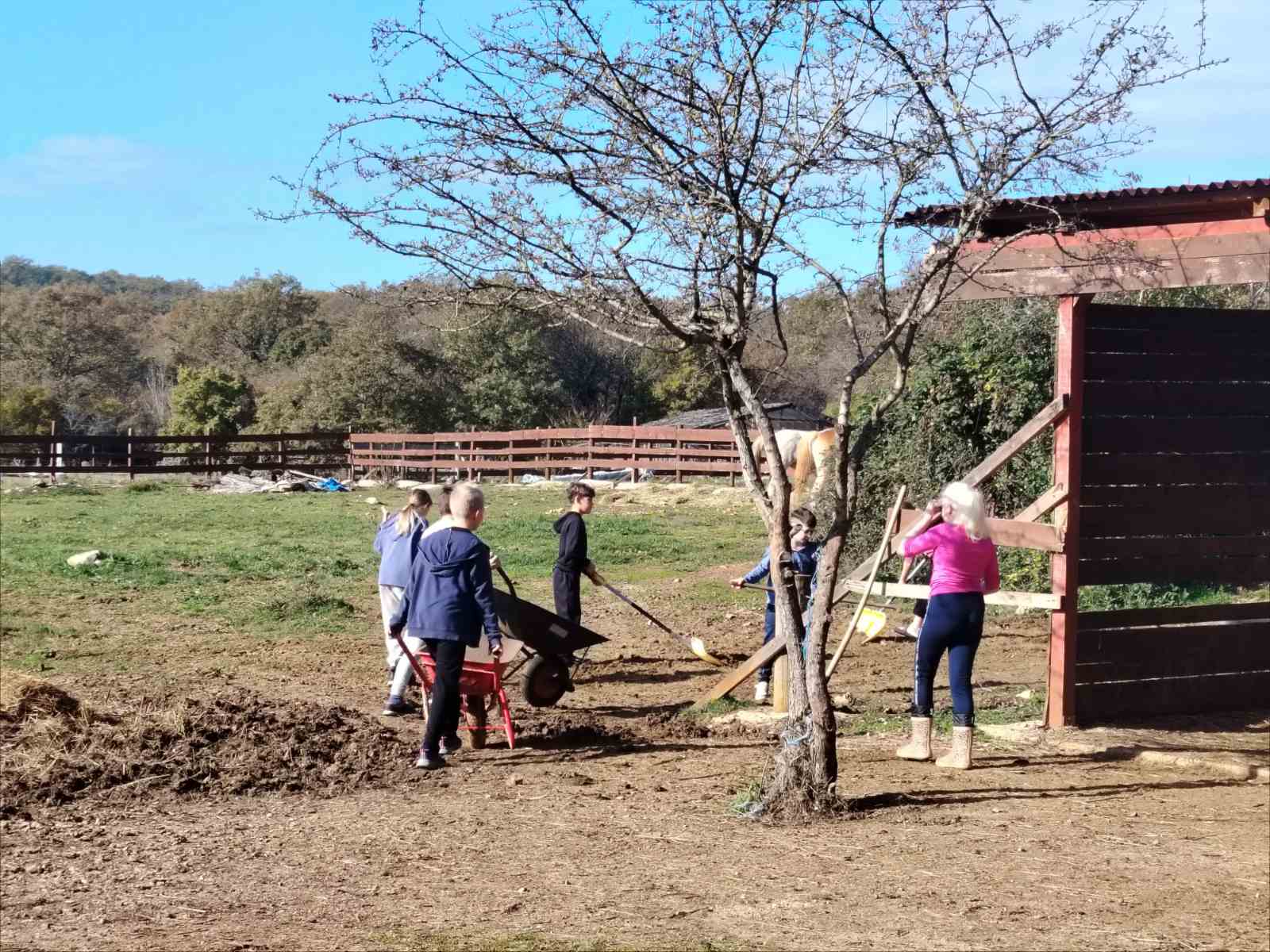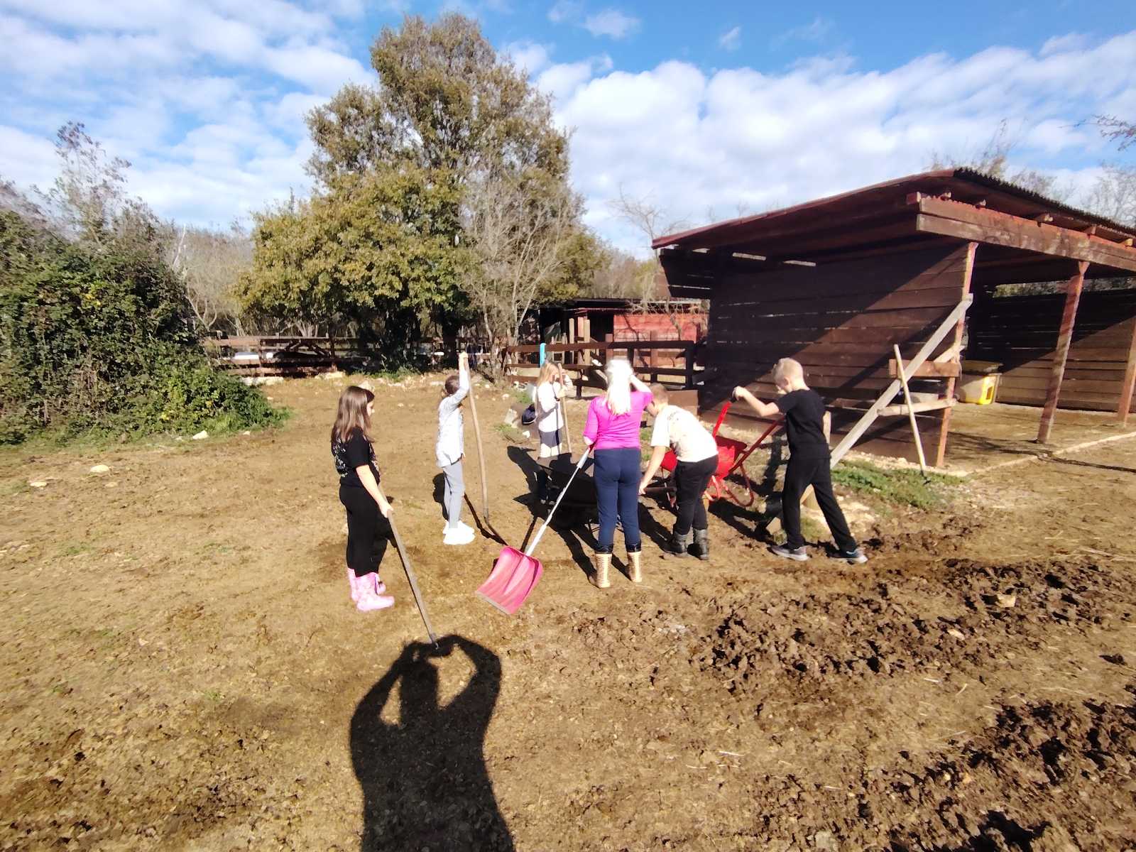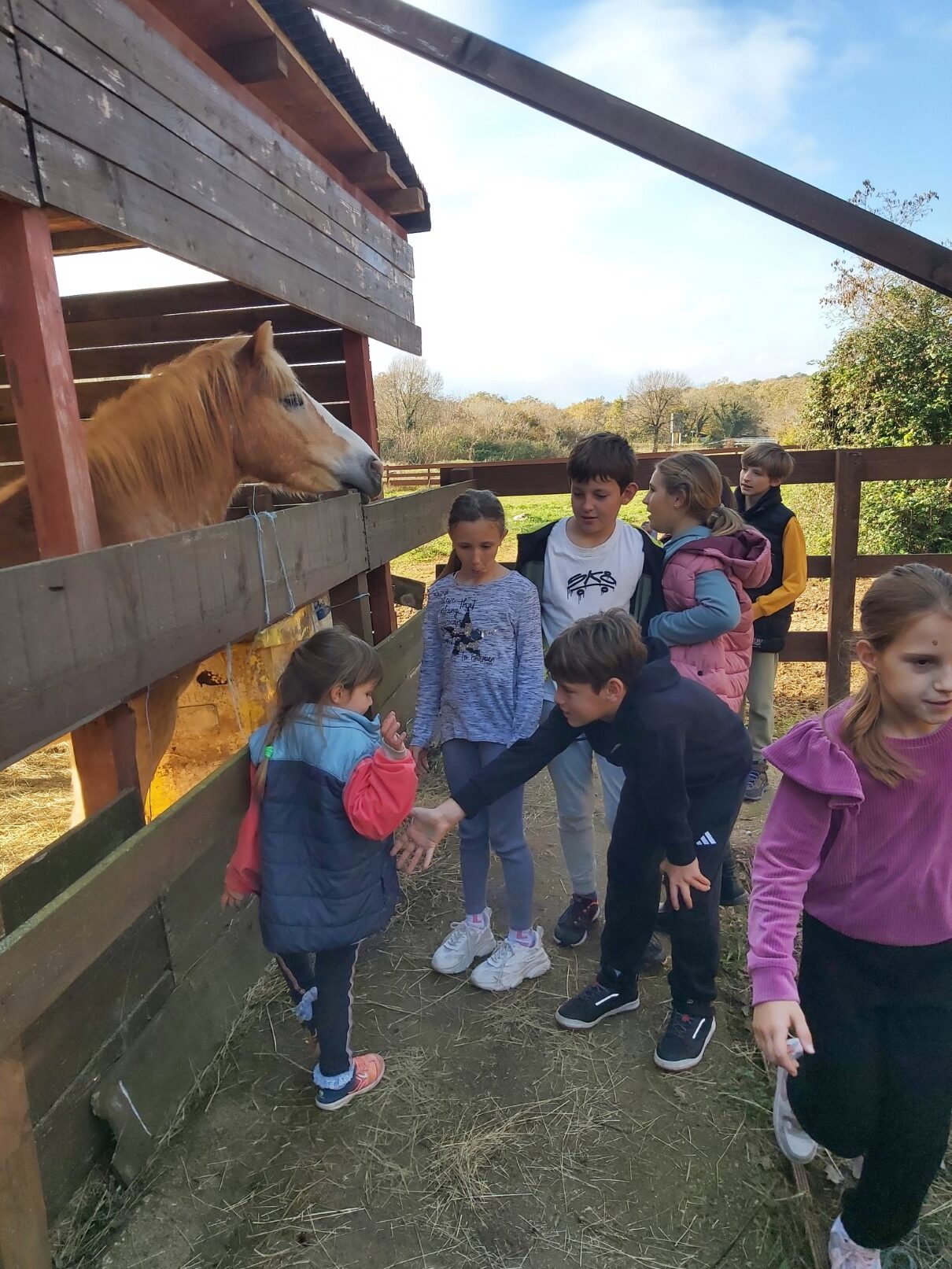 Posjetili su farmu obitelji Ljutić nedaleko Jezera kod Njivica. Družili su se s konjima, kozama, psom Nerom, zečićima i mačkom. Pomogli su obavljati sve poslove vezane uz hranjenje, timarenje i čišćenje nastambi. Kako je pratnja bila učiteljica Talijanskog jezika Lucija Bonifačić, naučili su i talijanske nazive za viđene životinje kao i brojeve do 10.