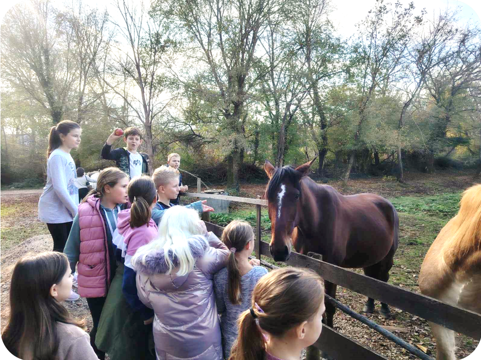 U četvrtak 13. studenoga učenici 4.b razreda imali su malo drugačiju nastavu – sudjelovali su u projektu “Mijenjamo živote uz konje i pse“ Centra Moj prijatelj.