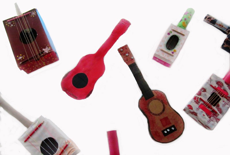 Osim što su jako lijepo ispale, ove vesele gitare su i lijepi primjer kako se od papirnate ambalaže koju najčešće bacamo u smeće, može napraviti nešto lijepo i ukrasiti svoj prostor. Gitare su napravljene od kartonskih kutija za cipele i tuba papirnatih ručnika, malo boje i puno, puno mašte.