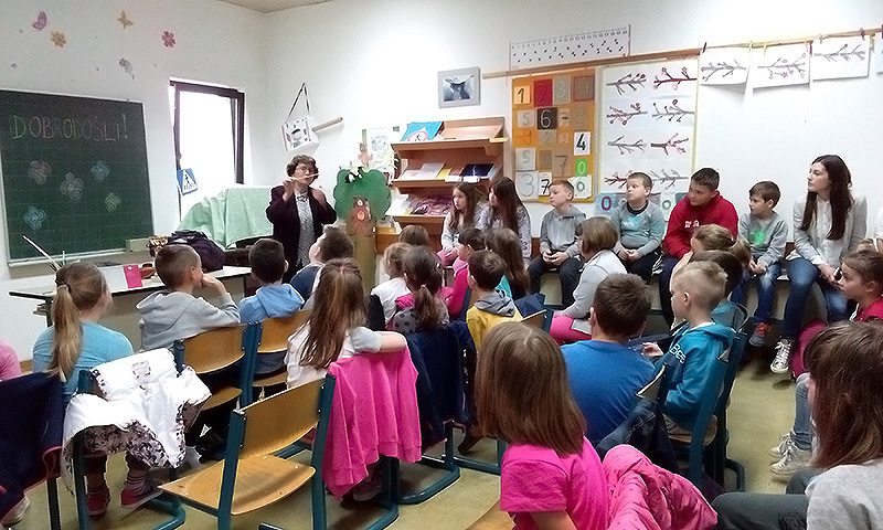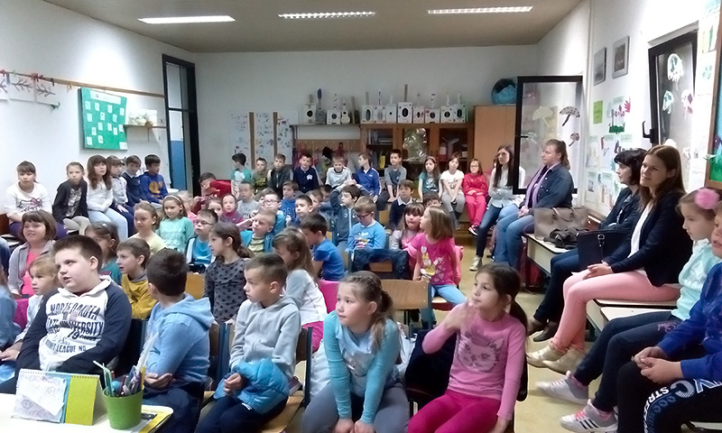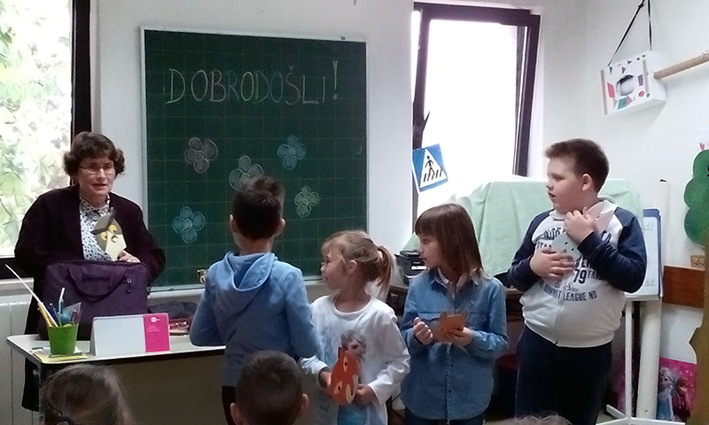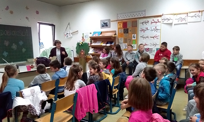 Uz pomoć brojnih rekvizita koje brižno čuva u svojoj čarobnoj ljubičastoj torbi, gospođa Željka je svojim pričama razveselila i nasmijala okupljene učenike koji su se rado uključivali u razgovor i sudjelovali u uprizorenju pojedinih uloga.