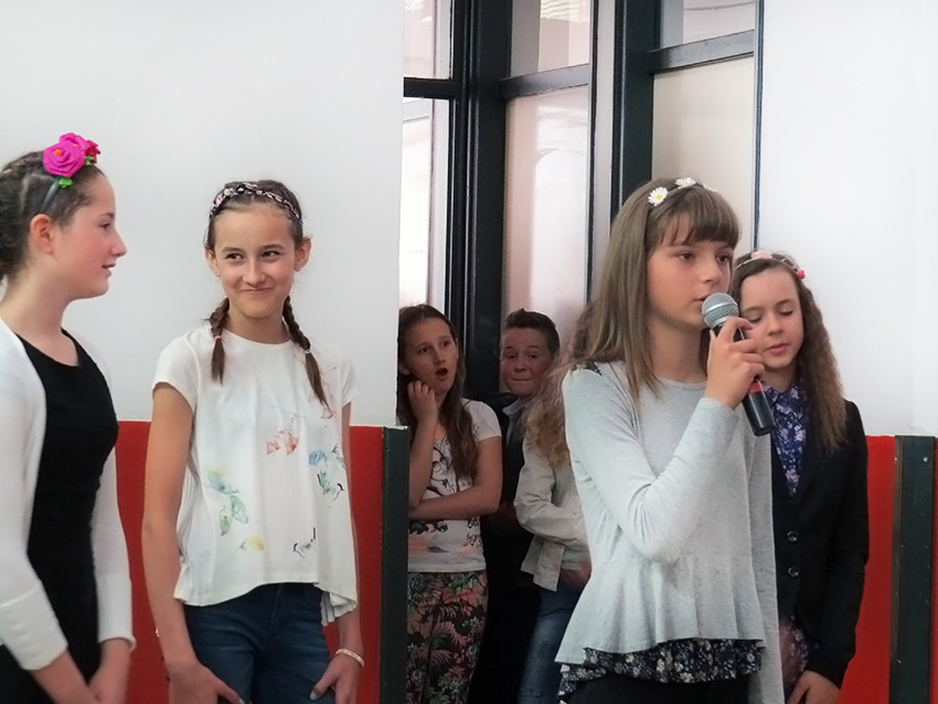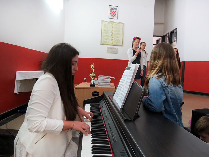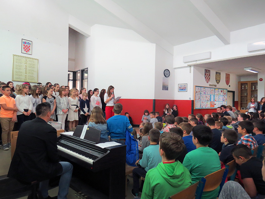 U glazbeno – scenskoj priredbi sudjelovali su učenici viših razreda, a kroz program nas je vodila učenica Laura Žužić iz 7.a. Naš je zbor, pod vodstvom učitelja Davora, otpjevao odu zavičaju, pod naslovom Zavičaju tebi. Istaknimo solistice; Moniku i Niku iz 7.a razreda i Katarinu i Mariju iz 8.a razreda.