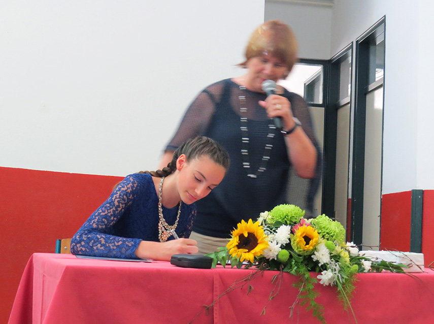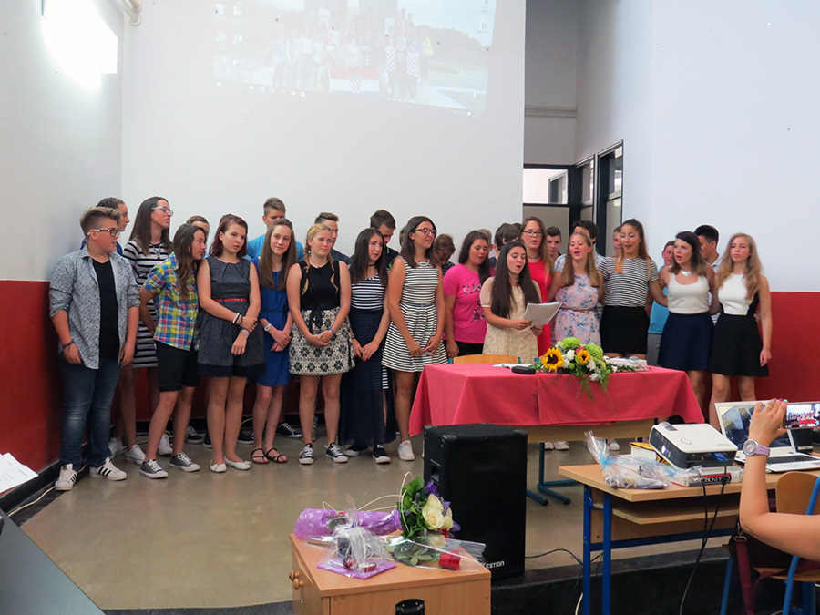 Učenica Ivana Milčetić iz 8.b pročitala nam je svoju zadaćnicu Pogled preko ramena i ispričala nam priču o jednoj generaciji učenika koji su skupa putovali, rasli, učili i više od svega, njegovali zajedništvo i znali uvijek biti jedno drugome blizu.