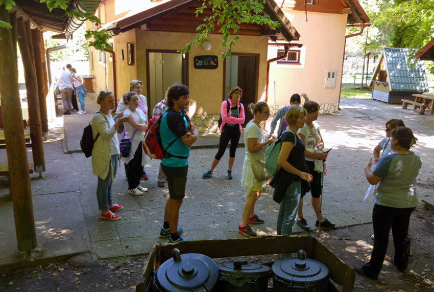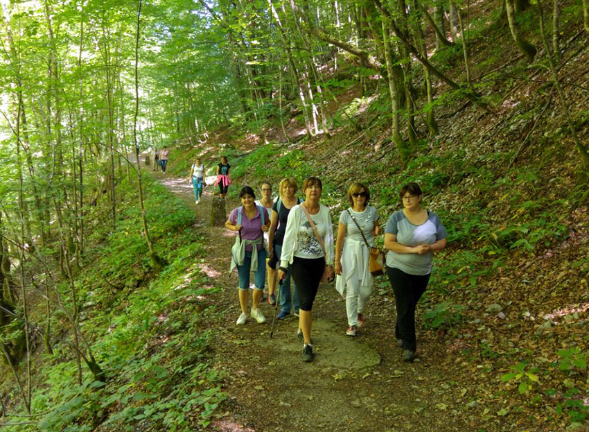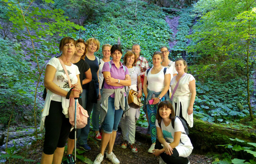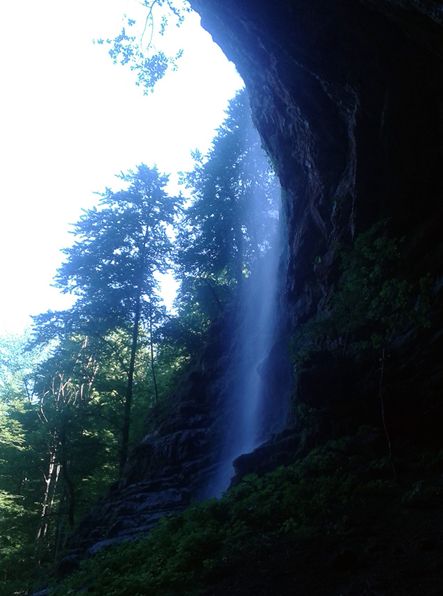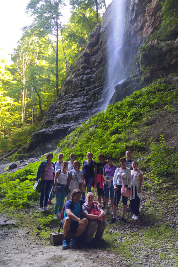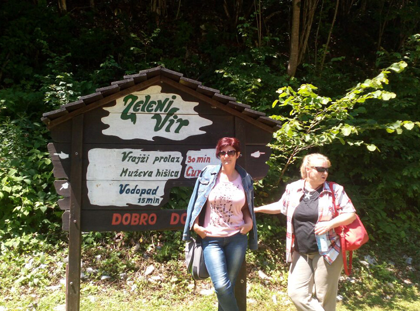 Prvi dio ekskurzije činio je uspon do Zelenog vira, snažnog izvora u dnu plitke spilje iznad 70-ak metara visoke stijene niz koju se voda obrušava i čini predivan slap.