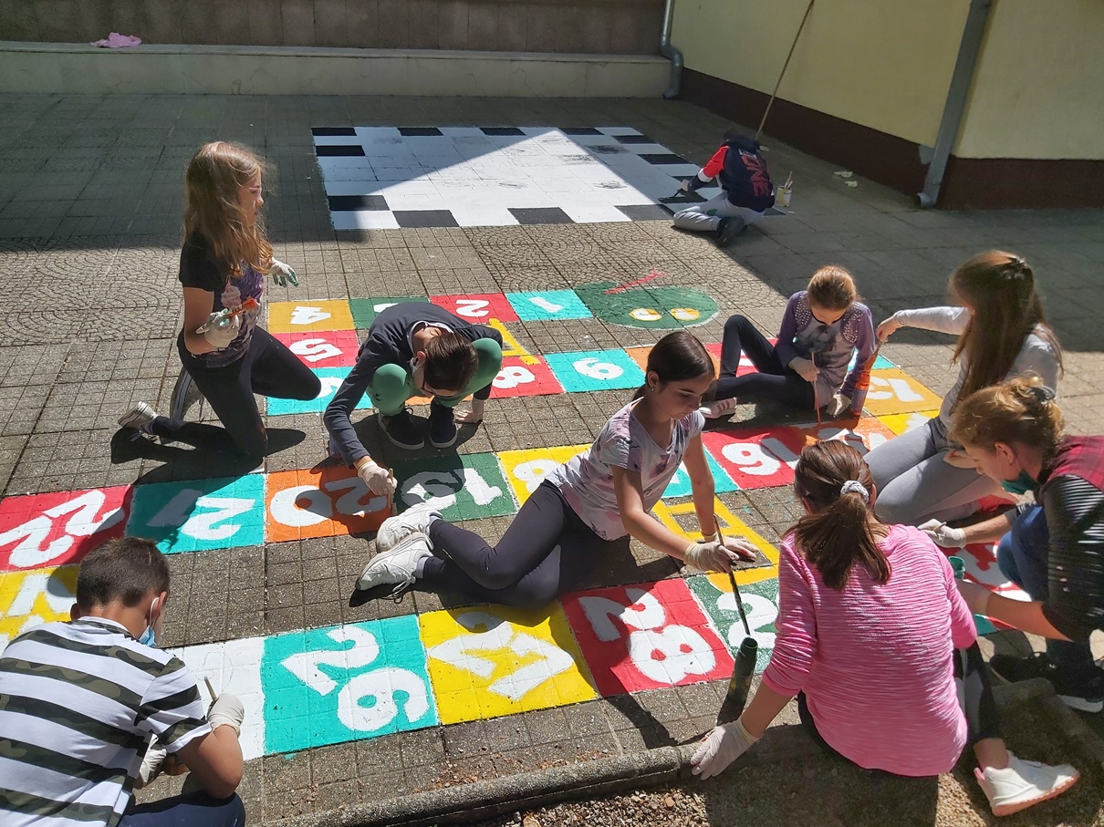 Posljednji niz aktivnosti usmjeren je na uređivanje školskoga okoliša. Ideja o oslikavanju zida i iscrtavanju igara na platou pod kestenima rodila se još prije dvije godine, no okolnosti su usporile realizaciju. Obilježavanje pet godina samostalnosti ukazalo se kao odlična prilika za provođenje ideja u djela. Zid nasuprot glavnome ulazu za oslikavanje pripremio je naš kućni majstor Marijan Lisjak, a ukrašavali su ga učenici 5. b razreda, učenici produženoga boravka s učiteljicom Vedranom Kresić i članovi čitateljskoga kluba. Pod kestenima su učenici 4. b uz svoju učiteljicu Anamariju Čubranić oslikali šahovsku ploču te igru „Zmije i ljestve“, a učenici 3. b razreda uz učiteljicu Anu Mariju Šviderski-Jurinjak igru poznatu pod nazivima „Školica“ ili „Cip-cop“. Logističku, tehničku i svaku drugu vrstu potrebne pomoći u izvođenju aktivnosti pružila je Simona Šamanić Ježabek.