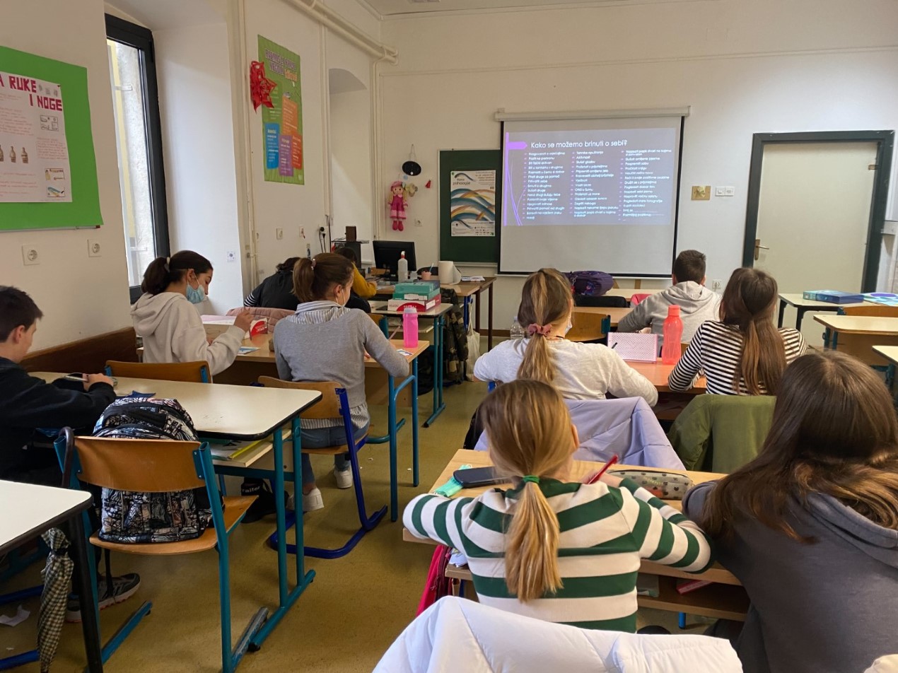 Mentalno zdravlje definira se kao stanje dobrobiti u kojem pojedinac ostvaruje svoje potencijale, može se nositi s normalnim životnim stresovima, može raditi produktivno te je sposoban pridonositi svojoj zajednici (SZO, 2004.). Mentalna higijena predstavlja skup tehnika i mjera koje imaju za cilj prevenirati pojavu mentalnih poremećaja i unaprjeđenje mentalnog zdravlja. Iako je mentalno zdravlje pojam koji je u posljednje vrijeme sveprisutan u našoj okolini, mentalna higijena rjeđe se spominje i teže je definirati što točno je. Zašto se mentalna higijena ne podrazumijeva kao svakodnevno umivanje, pranje zubi, tuširanje, što bi svi svaki dan mogli i trebali činiti za očuvanje sebe i svog mentalnog zdravlja, pitanja su o kojima su razmišljali i razgovarali naši učenici sa svojom psihologinjom. Učenici su u sklopu radionice pripremili osobni vodič „Brinem o sebi“ koji im može pomoći podsjetiti se važnosti vođenja brige o mentalnoj higijeni.
