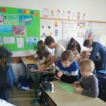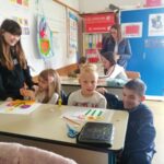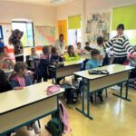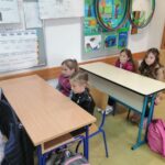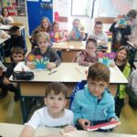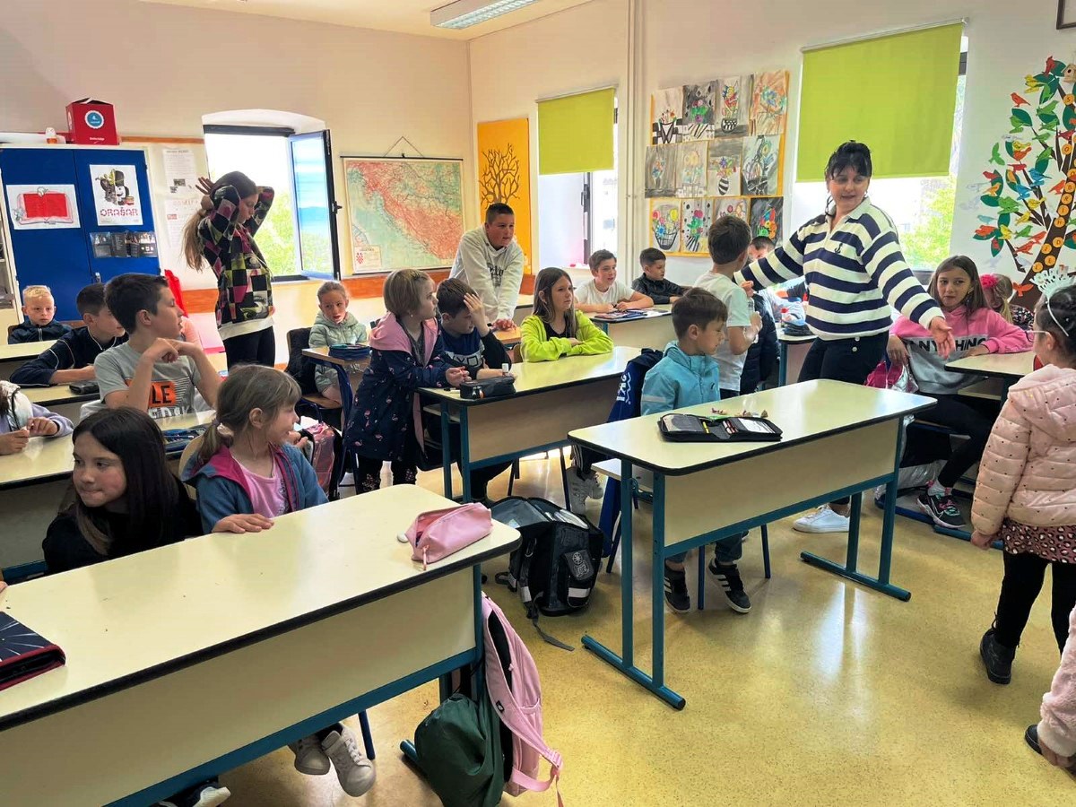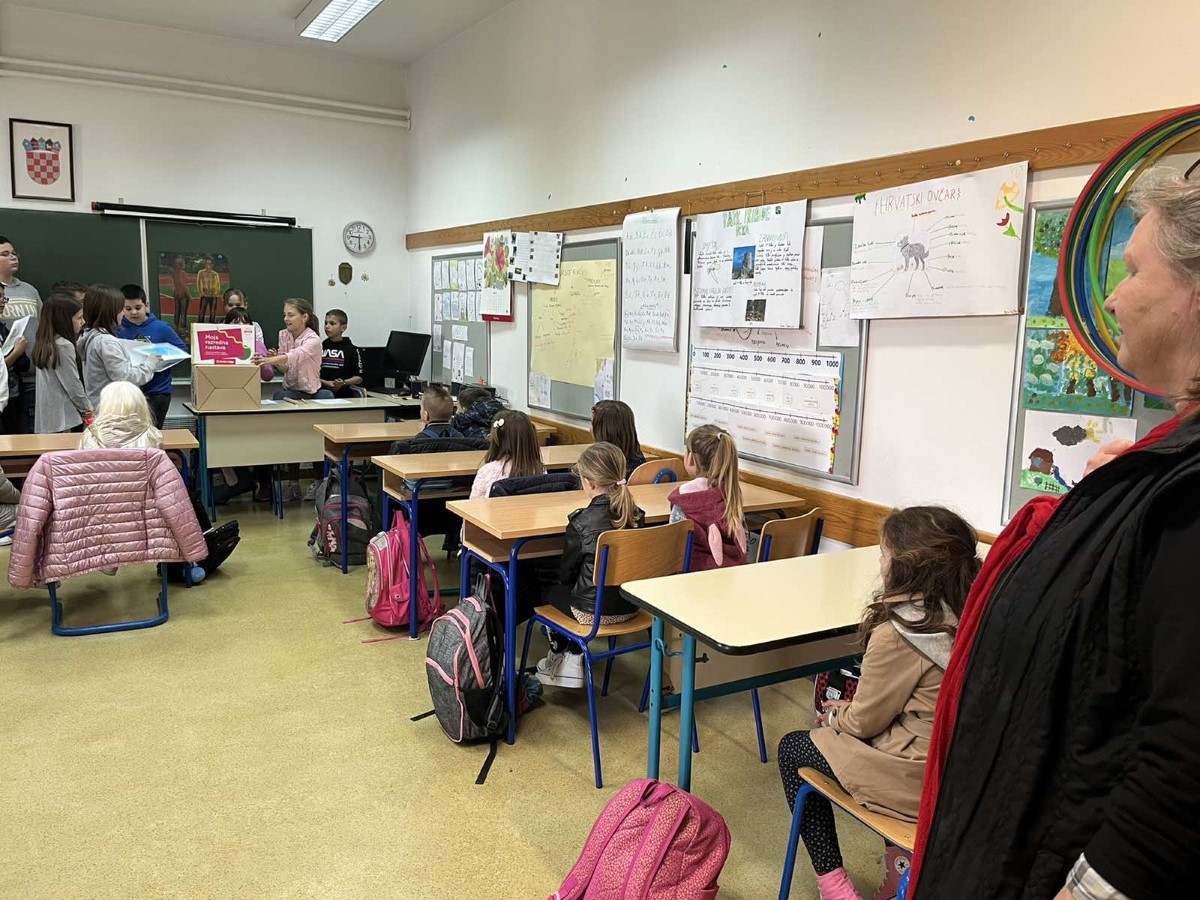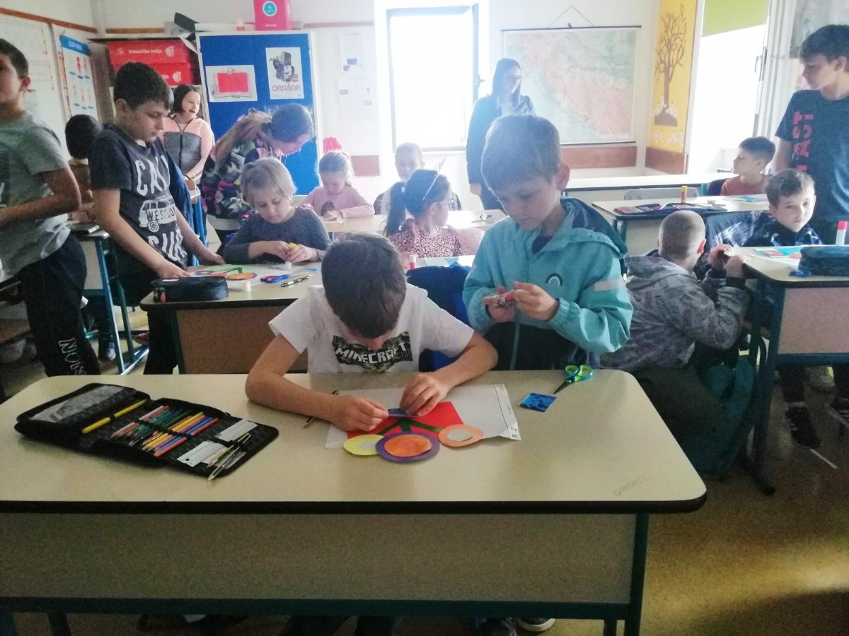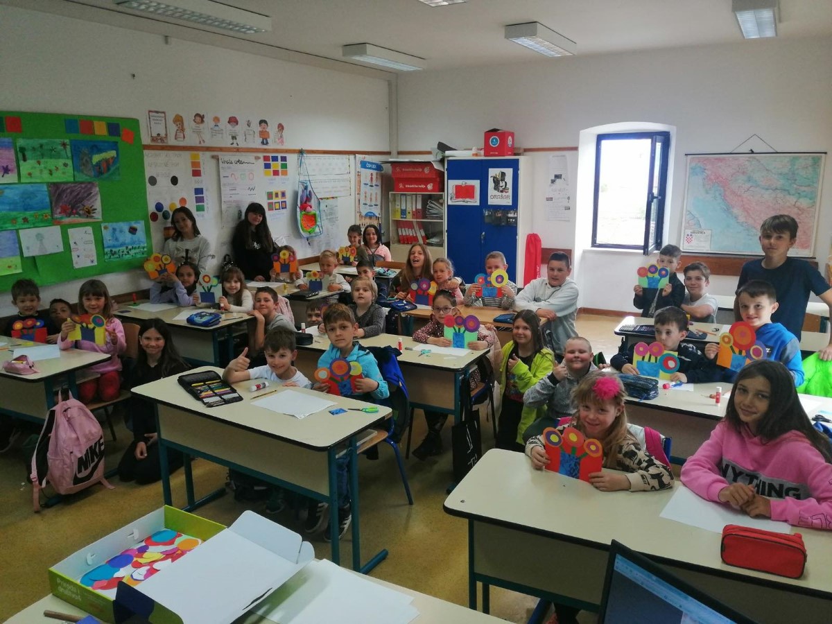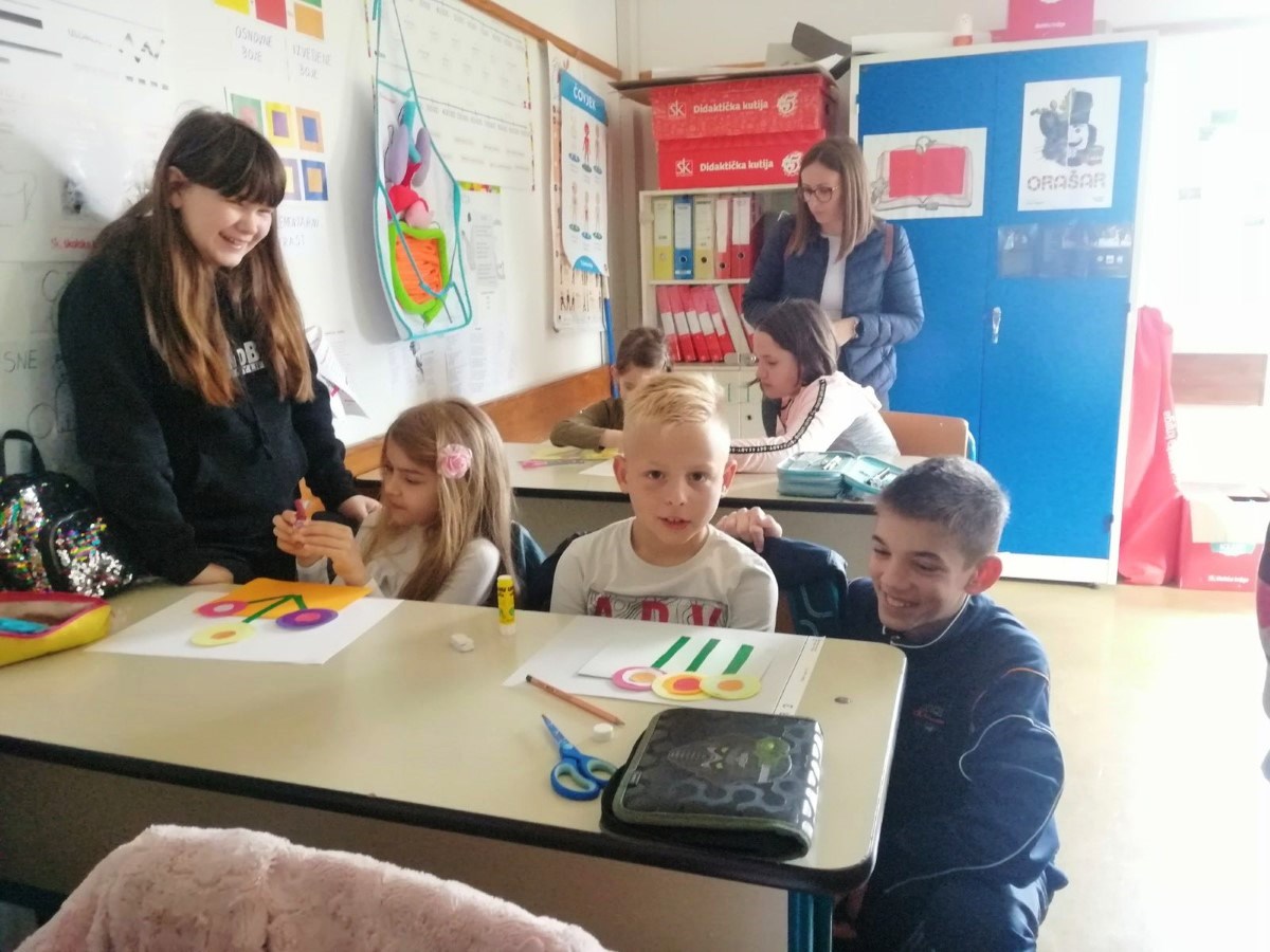 Svaki je predškolarac pronašao svoje mjesto u klupi, a zatim su izrađivali čestitke i pogledali predstavu koju su za njih pripremili učenici. Cilj je ovog posjeta upoznavanje prostora škole i učionice prije procjene psihofizičkog stanja učenika prije polaska u prvi razred koje nam započinje u ponedjeljak 2. svibnja i traje do 10. svibnja 2022. godine od 8:30-10:00 sati.