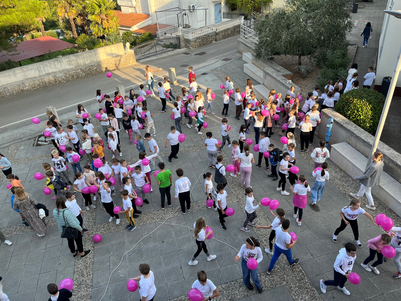 U srijedu, 12. listopada tijekom prvog školskog sata svi su učenici OŠ Malinska – Dubašnica informirani o osnovnoj namjeni projekta te su im podijeljeni letci za majke. Iste su letke dobili svi učitelji i ostali djelatnici škole. Učenici razredne nastave u školskom su dvorištu s učiteljicama svojim tijelima formirali simboličnu ružičastu vrpcu te snimili zajedničku fotografiju i video sa značajnom porukom.