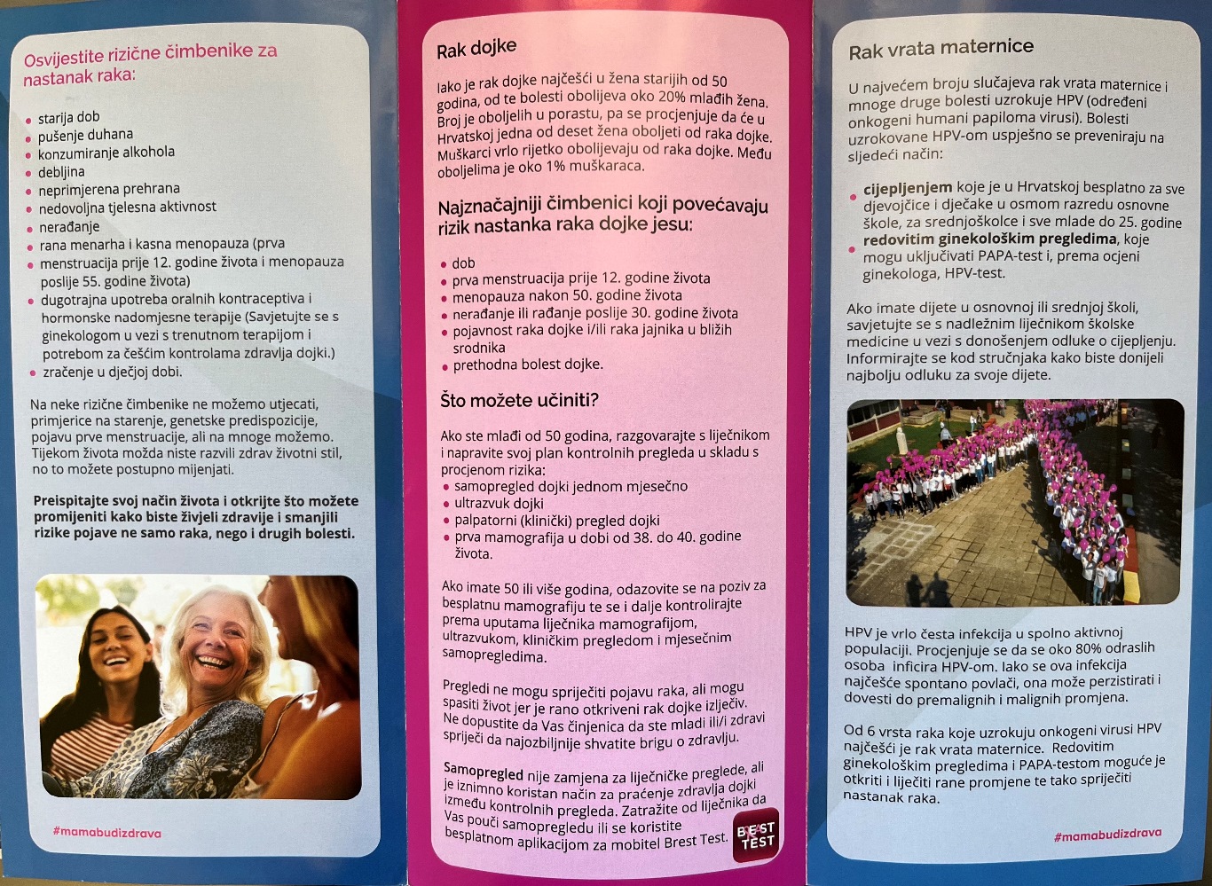 Cilj je projekta promicanje Nacionalnih programa za rano otkrivanje raka i poticanje žena na brigu o zdravlju. 💕