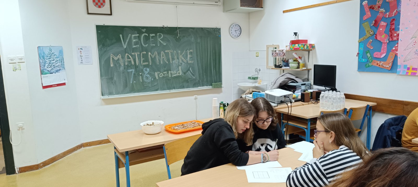 U četvrtak, 7. prosinca, u našoj se školi po prvi put održala Večer matematike. To je projekt Hrvatskoga matematičkog društva, koji se održava od 2013. godine, a ciljevi su mu popularizirati matematičku znanost i razvijati pozitivan stav djece prema matematici.