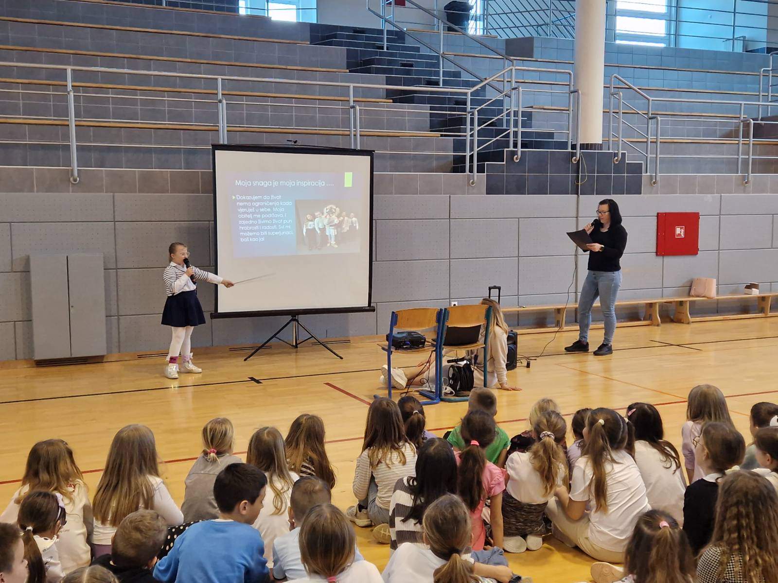 Luna, učenica 2.b razreda, zajedno sa svojom majkom Sendi ispičala je svoju životnu priču, a istu je prezentaciju održala i za učenike naše škole uz podršku Marije, svoje pomoćnice u nastavi. Kroz njezinu priču, saznali smo koliko je uporna, talentirana i vedra djevojčica. Njezini prijatelji iz razreda iznenadili su je posebnom knjigom ispunjenom crtežima i lijepim porukama, izrađenom upravo za nju.