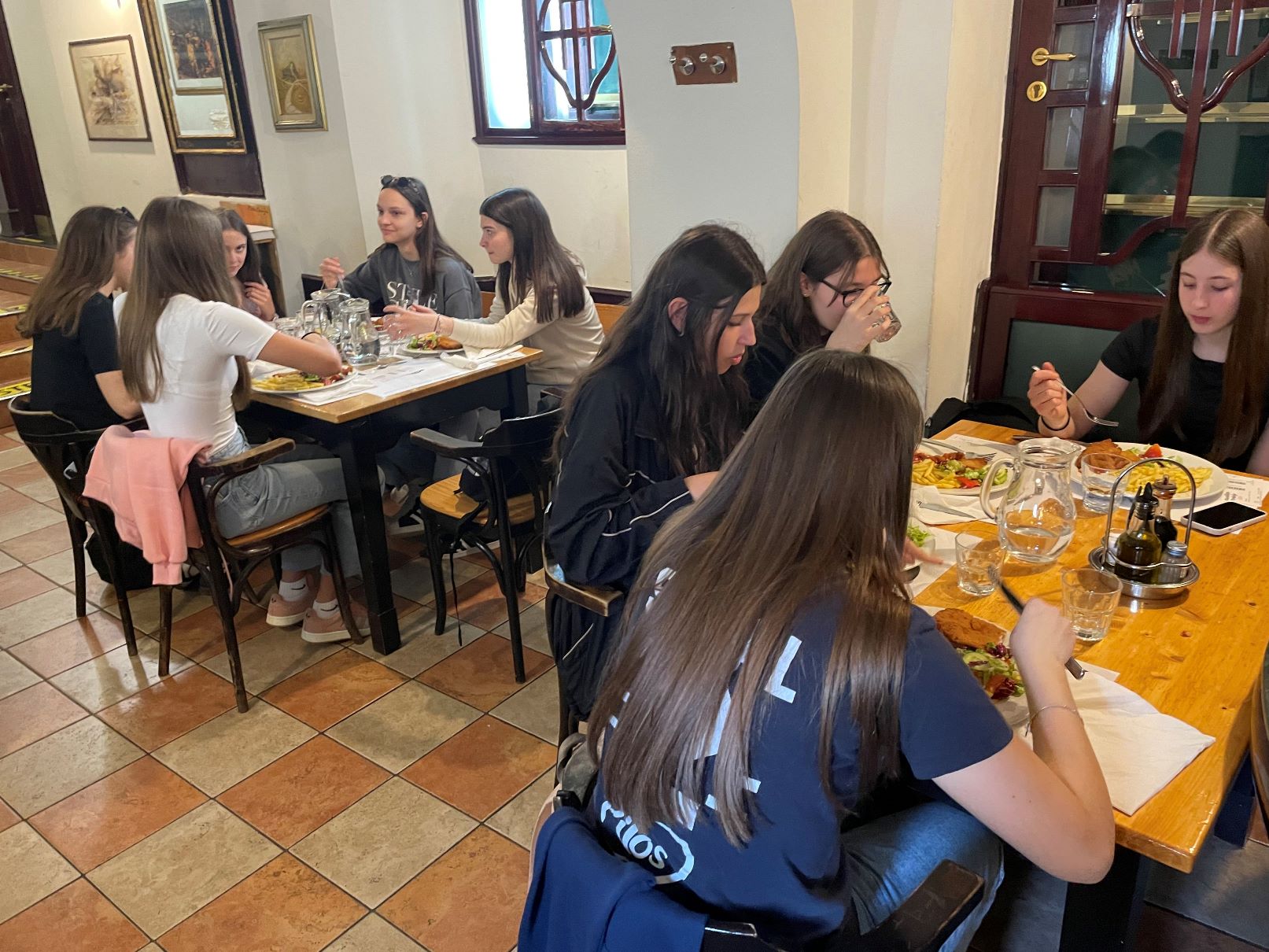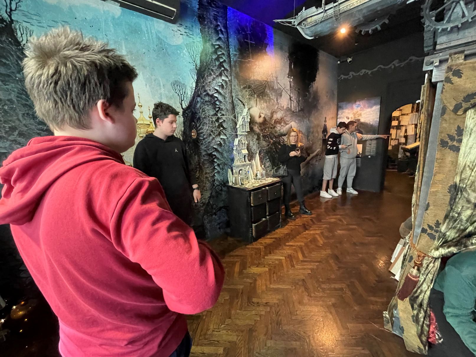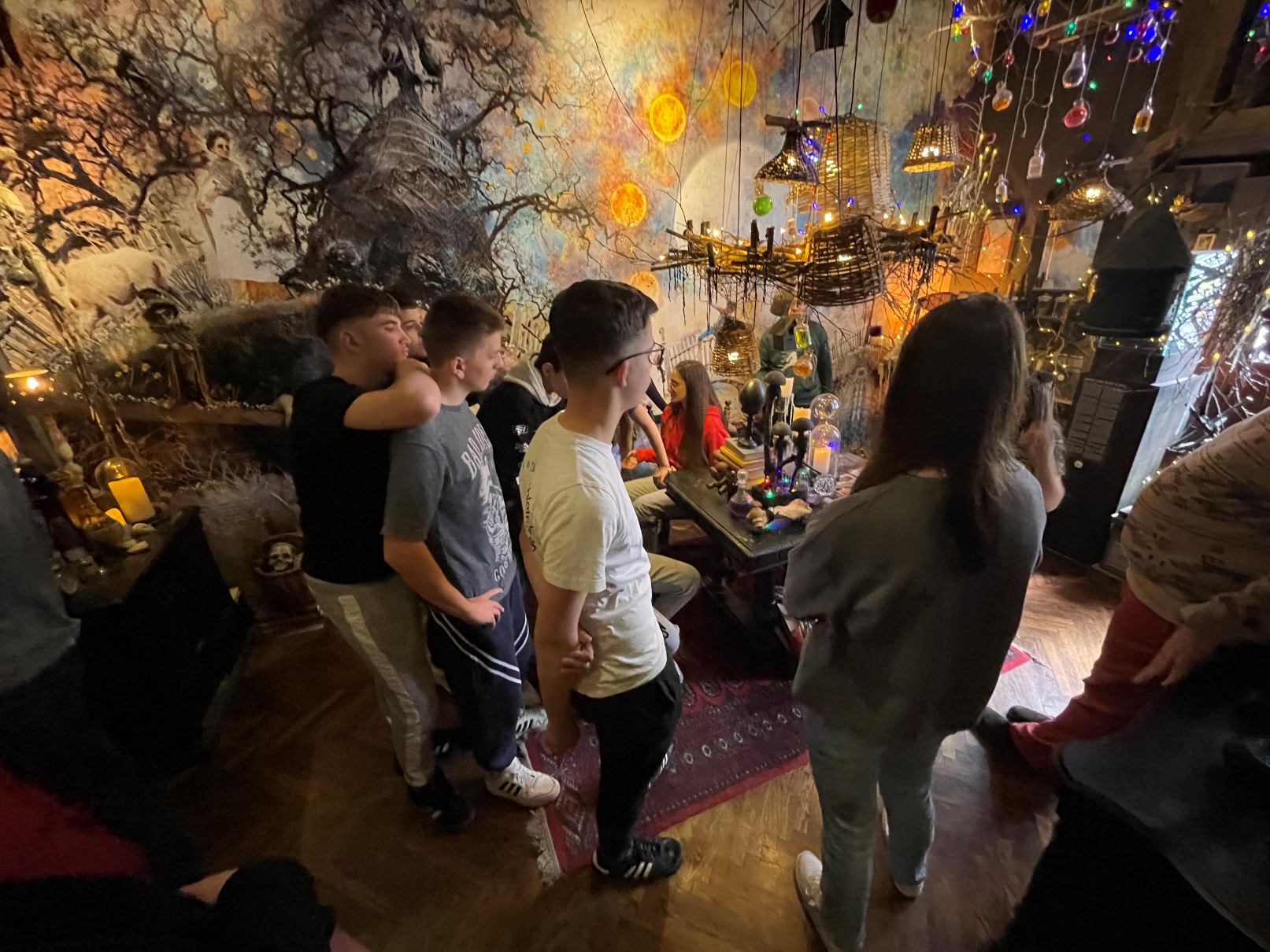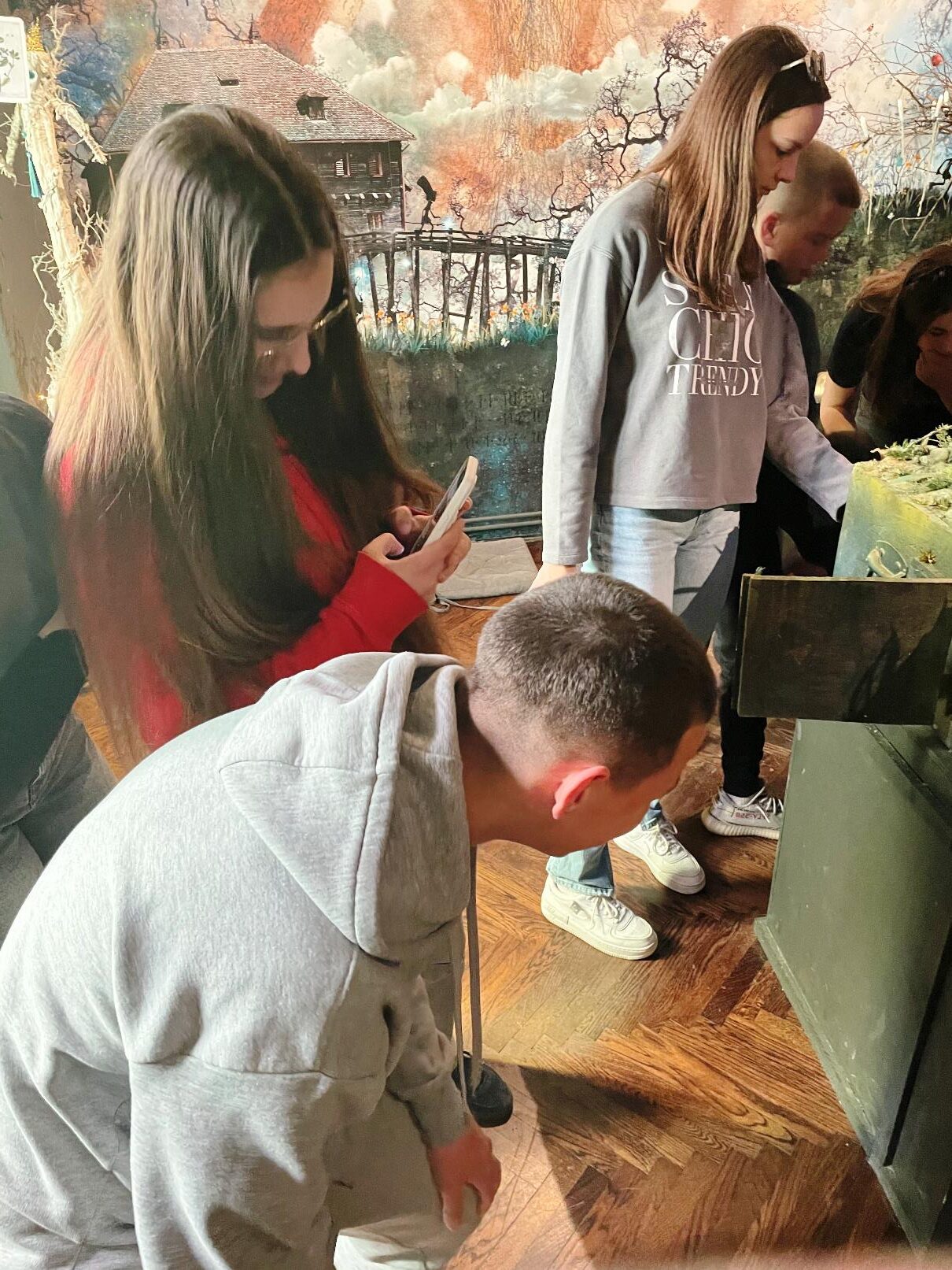 Nakon predstave uslijedio je ručak u restoranu Mali Medo, gdje su se svi učenici napokon smirili i uživali u ukusnom obroku: piletini i krumpirićima, a za kraj nas je razveselio osvježavajući tiramisu. Nakon kratkog odmora nastavili smo našu terensku nastavu posjetom Muzeju zaboravljenih priča – neobičnom i vrlo dojmljivom mjestu koje nas je odvelo u svijet starih hrvatskih narodnih predaja. Muzej se sastoji od sedam tematskih soba, a svaka soba predstavlja jednu legendu u koju su vjerovali naši preci. Svaka prostorija bila je posebno uređena uz svjetlosne efekte i zanimljive detalje, oko kojih se jasno vidjelo da se netko dobro zabavio ukrašavajući ih. Imali smo osjećaj kao da ulazimo izravno u prošlost. Naučili smo kako su ljudi nekada tumačili prirodne pojave, neobične događaje i nadnaravna bića kroz priče koje su se prenosile s koljena na koljeno. Svaki je razred muzej obišao zasebno, dok je drugi razred imao slobodno vrijeme koje je iskoristio kao priliku da malo detaljnije i opuštenije obiđe grad Zagreb.