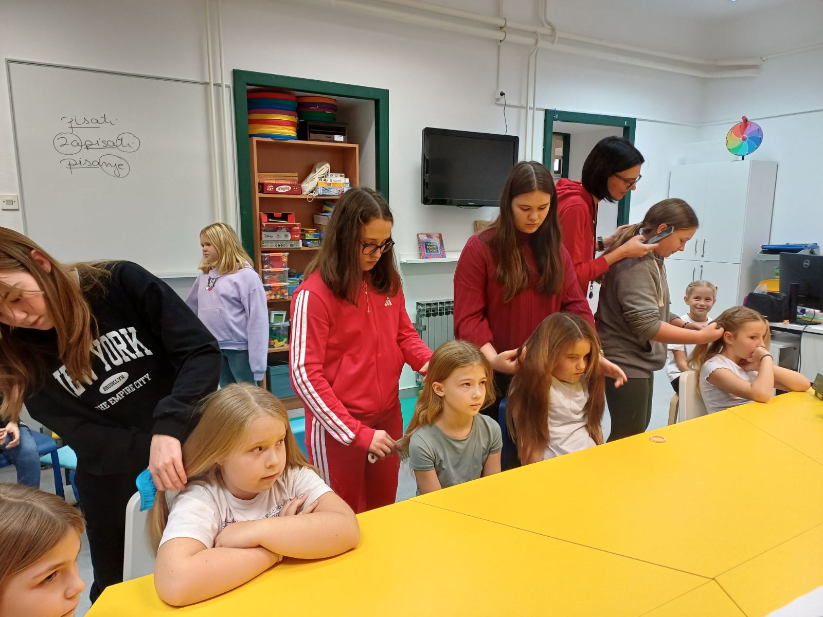 Za učenice 8.a, 7.a, 3.a, 3.b i 2.a održana je radionica pletenja kose u pletenice kakve su nekada žene nosile, a za učenike 8.a i 7.b održana je radionica štikanja. Gospođa Milica Ilijić pokazala nam je male tajne uspješnog pletenja pletenica te nam je usput ispričala kako su se nekada žene brinule o svojoj kosi, dok je radionicu štikanja održala gđa Adriana Žužić koja nam je pokazala kako jednostavno savladati prve korake s iglom i koncem u ruci. Zahvaljujemo gošćama koje su odvojile svoje vrijeme da bi nas naučile nečemu novome, a zapravo starome.