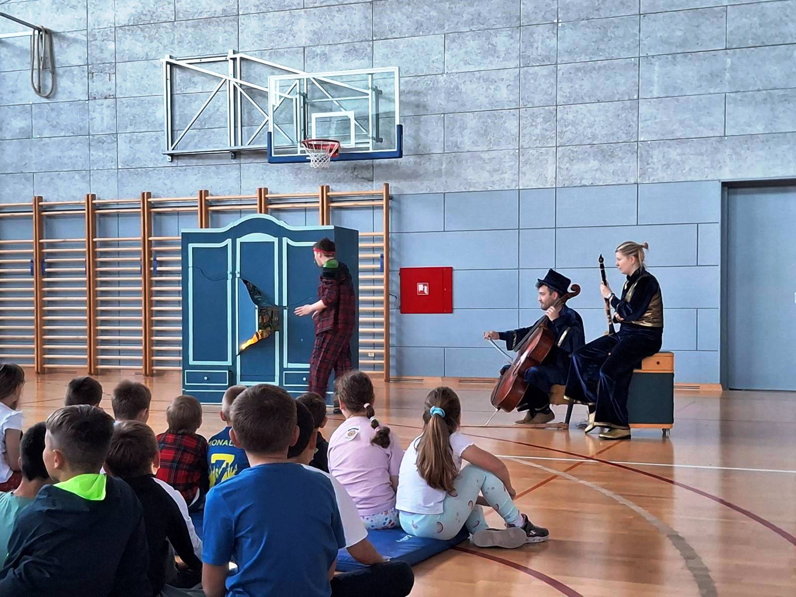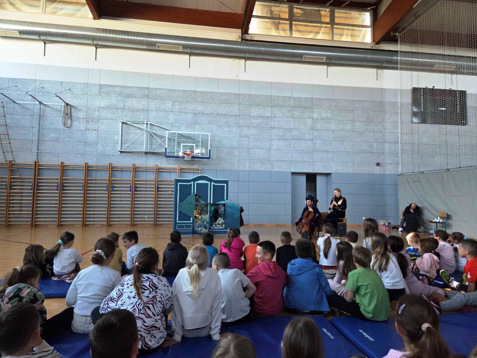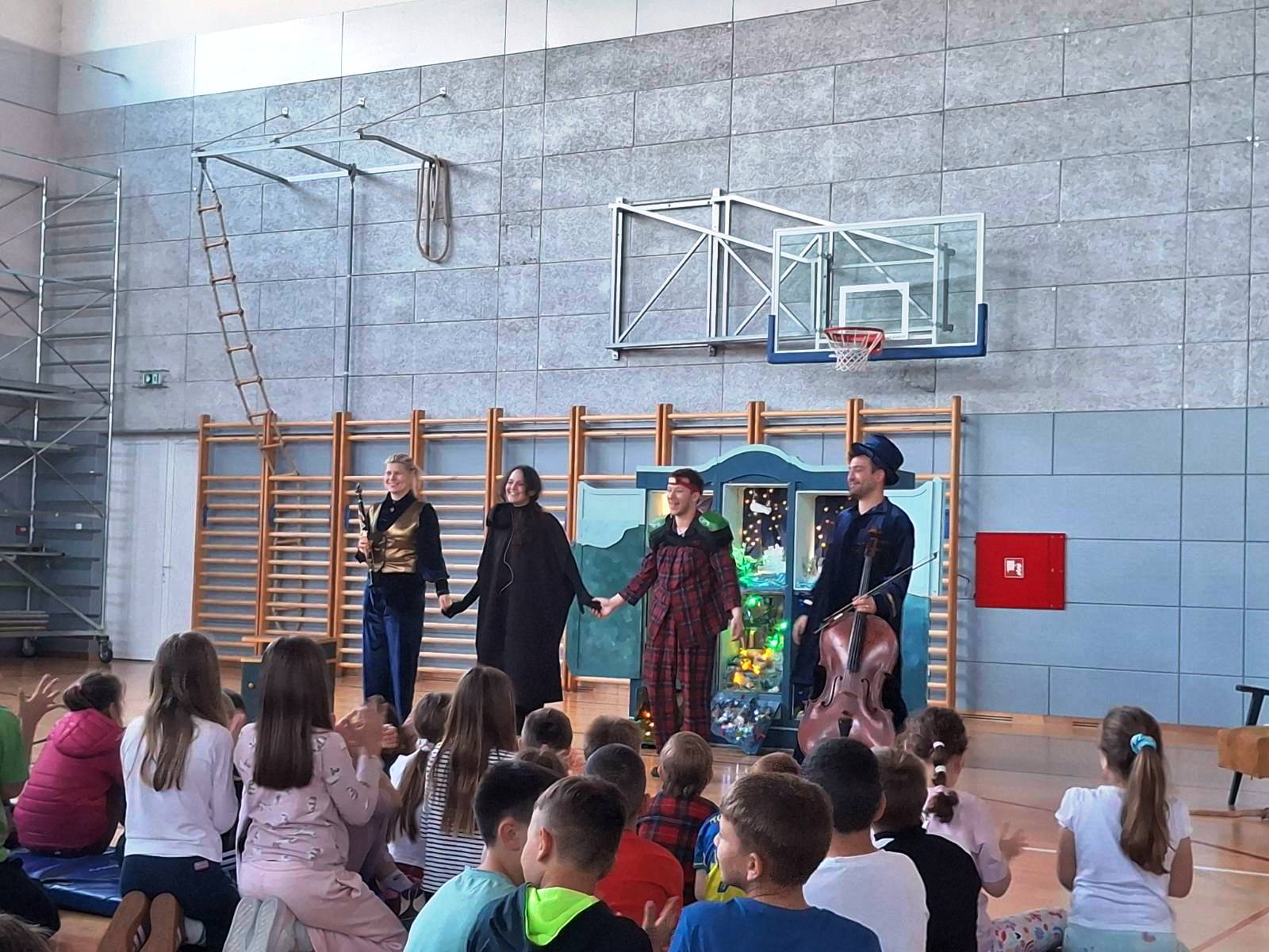 Učenici razredne nastave pogledali su predstavu „Zvijezda i mrak“ koja na blagi način obrađuje temu straha od mraka. Svojim sadržajem dotiče se i različitih neugodnih osjećaja, snova, tišine i dosade. Doživljaju doprinosi glazbena pratnja na klarinetu i violončelu.