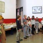 ljepoti naših zavičajnih običaja. Veliki školski pano ukrasili su maštoviti učenički likovni radovi, a na školskom ulazu je postavljena izložba jesenskih plodova i starih poljoprivrednih alata. Tako je svoje mjesto u izložbenom kutku našla i starinska drvena preša za grožđe s metalnim kotačem za ručno okretanje. Stara je preša izazvala veliko zanimanje svih koji su prolazili pokraj nje. 🙂