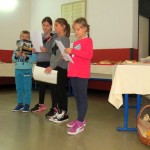 zašto je žir nakrivio kapu. Svoju točku imali su i prvašići koji su nam veselo pjevali o voću. Čuli smo razmišljanja četvrtaša o temi zahvalnosti za plodove zemlje, te uživali u igrokazu Dvije vreće.