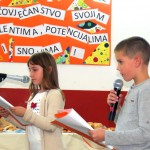 I na kraju, najsvečaniji dio dana – prigodna priredba učenika mlađih razreda. Svečani program vodili su Mia Žužić iz 2.a i Lucijan Ljutić iz 2.b. Na početku, imali smo priliku čuti nekoliko recitacija. Recitiralo se o mirisima kruha, listopadskom zlatu, bubamari, jesenjim kišama, pečenim kestenima, a saznali smo i