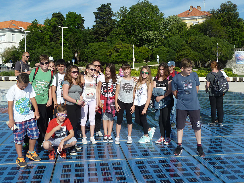 Nakon šetnje Ninom, sjeli smo ponovno u bus i krenuli prema Zadru. Tamo nam se posebno svidio Muzej antičkog stakla. Vidjeli smo stare bočice od stakla, a imali smo prilike i vidjeti kako se izrađuju stakleni predmeti. Nakon ovog zanimljivog posjeta prošetali smo do centra Zadra. Vidjeli smo crkvu sv. Stošije, crkvu sv. Donata, stup srama, … Nakon razgleda kulturno – povijesnih znamenitosti Zadra, otišli smo na zajednički ručak, a poslije ručka imali smo kratko slobodno vrijeme koje smo iskoristili za šetnju zadarskim ulicama i kupnju suvenira. I na kraju, okupili smo se i svi zajedno prošetali do zadarske rive kako bismo poslušali Morske orgulje i vidjeli Pozdrav Suncu. A onda je, nažalost, došao trenutak kada smo trebali krenuti kući. Nastavili smo se družiti i zabavljati u busu i vratili se u Malinsku zadovoljni i sretni. Izlet nam se jako svidio, puno smo toga naučili i vidjeli, lijepo se zabavili, uživali u druženju i već se sada radujemo nekom budućem izletu! 🙂