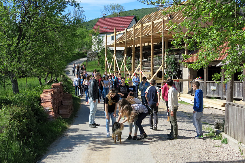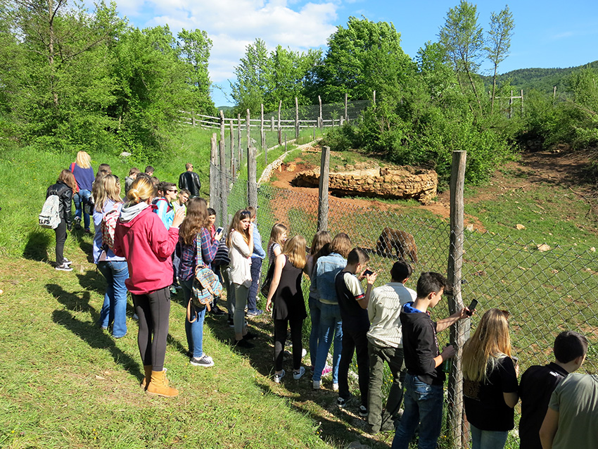 Nakon Smiljana, uputili smo se prema restoranu na zajednički ručak, pa smo odmorni i siti krenuli prema Majerovom vrilu. Vidjeli smo kako se melje žito i proizvodi brašno. Probali smo odličan kruh (mljac!) 🙂 i krenuli dalje. Nakon još malo zabavne vožnje, stigli smo do skloništa za medvjede u malom selu Kuterevo. d volontera smo puno toga zanimljivoga čuli i naučili.